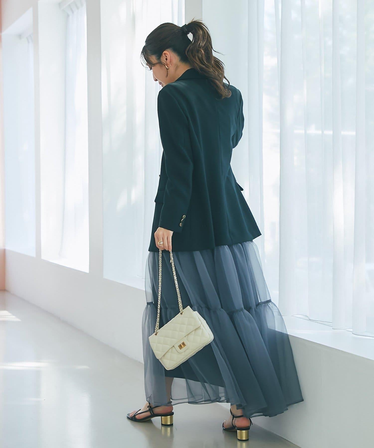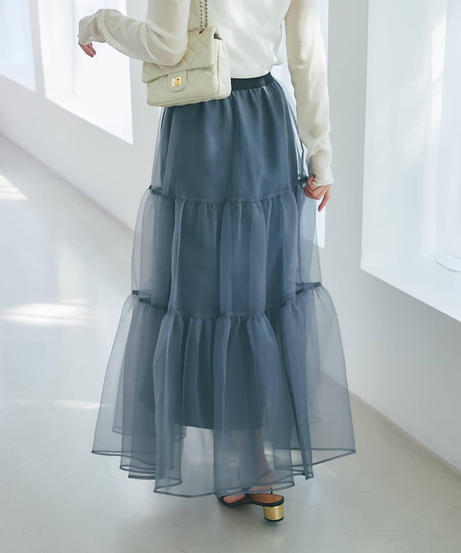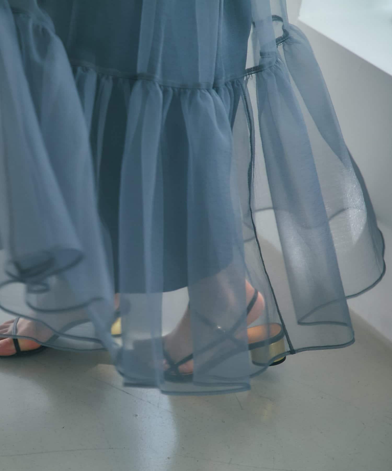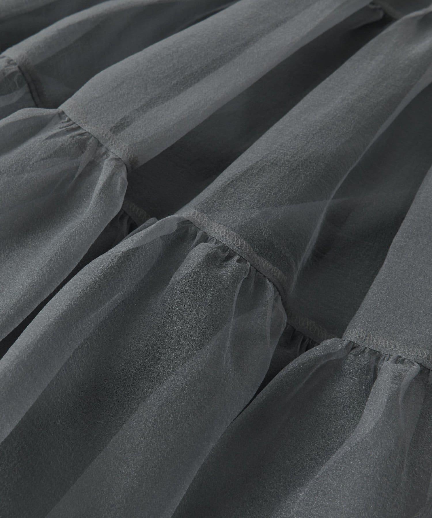 層疊式裙襬,具有歐根紗特有的輕盈蓬鬆輪廓。