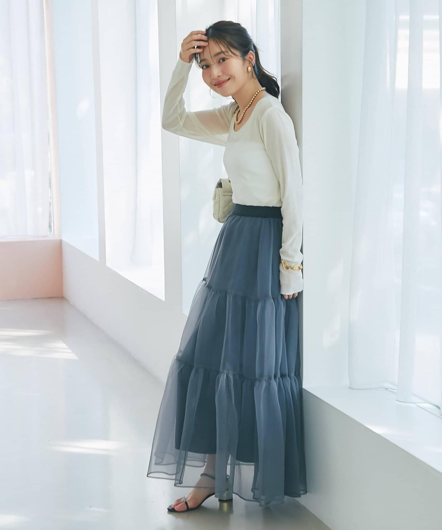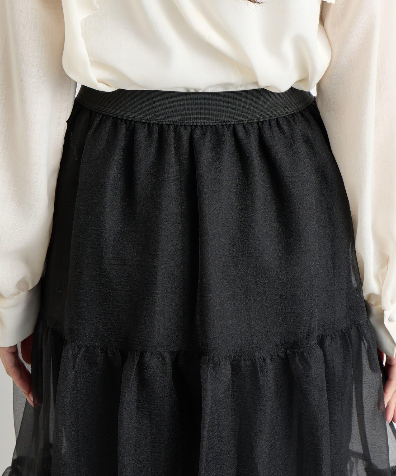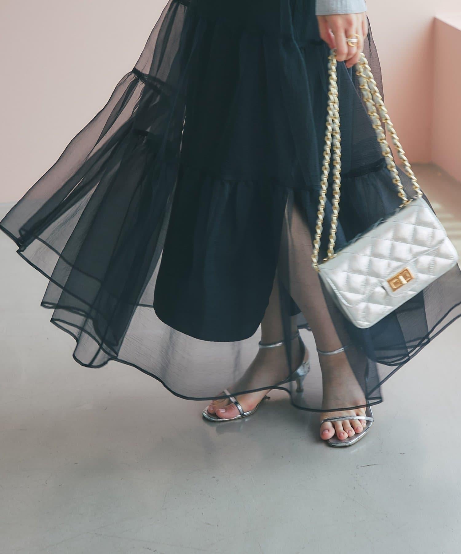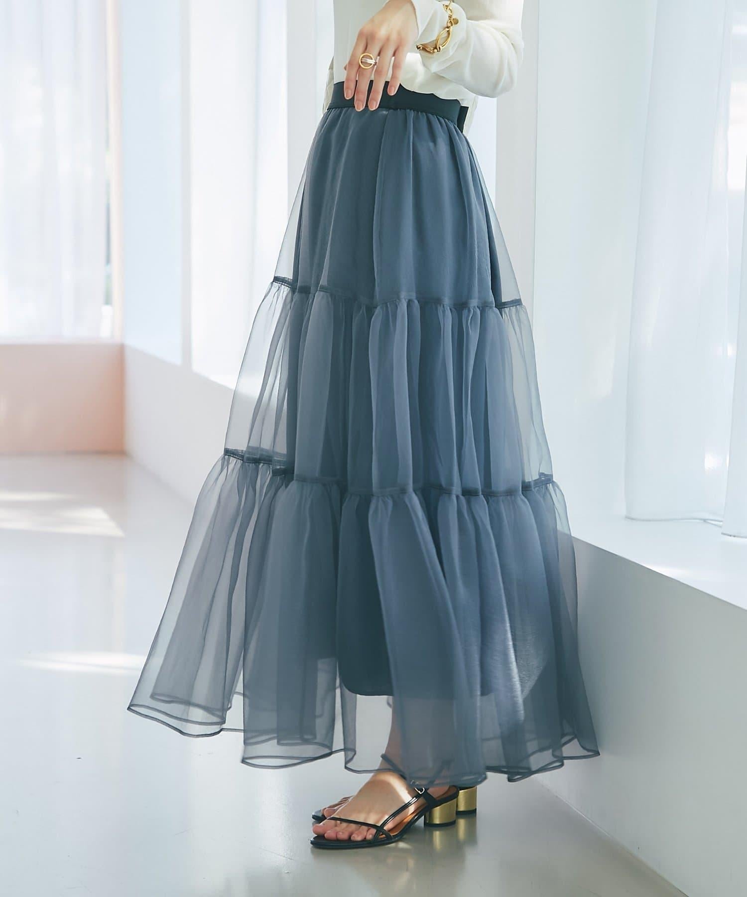 層疊式裙襬,具有歐根紗特有的輕盈蓬鬆輪廓。