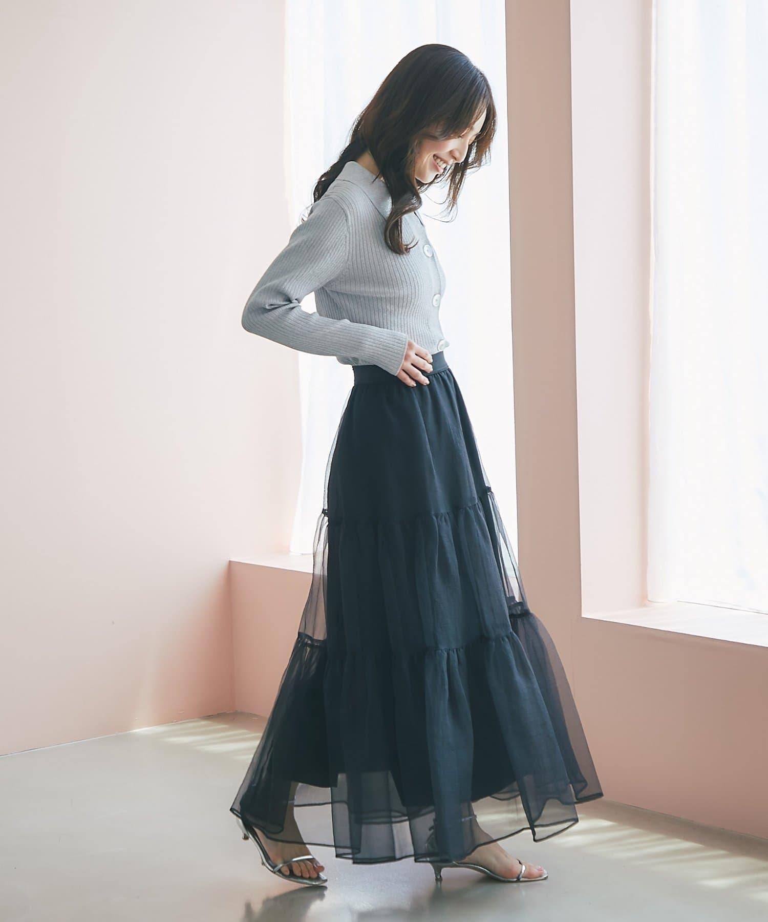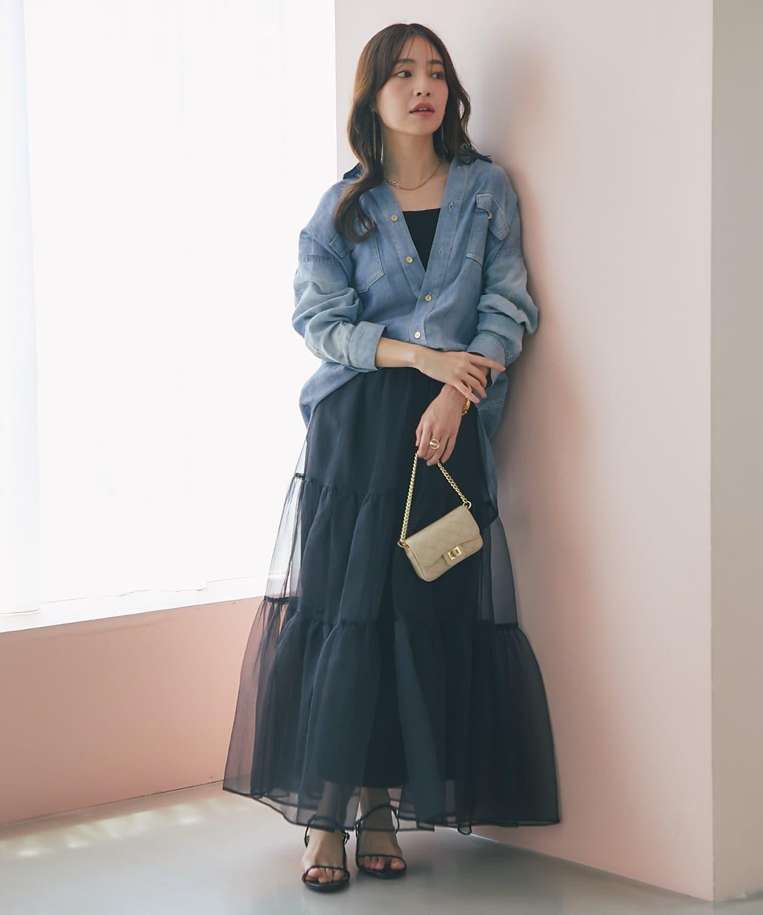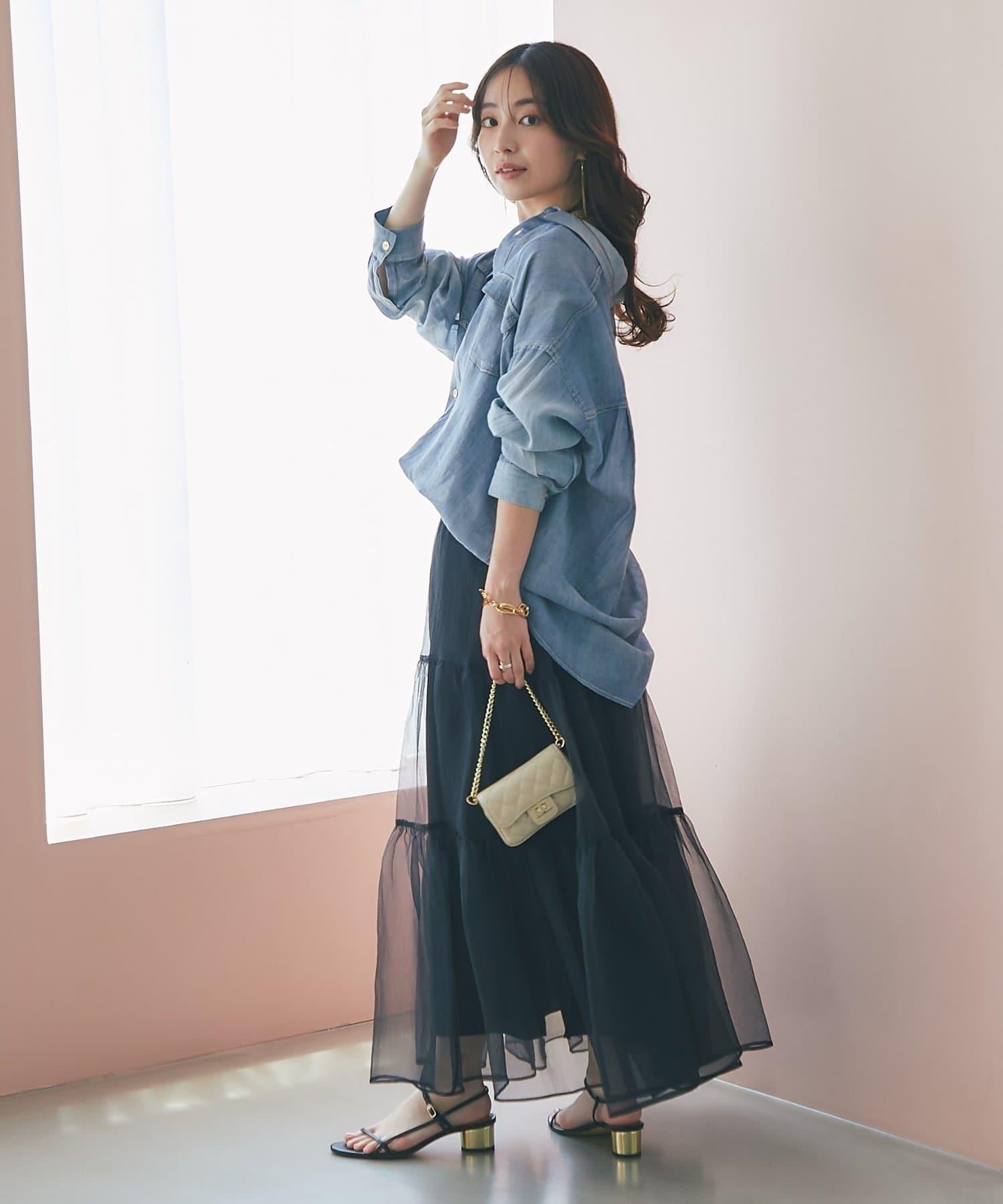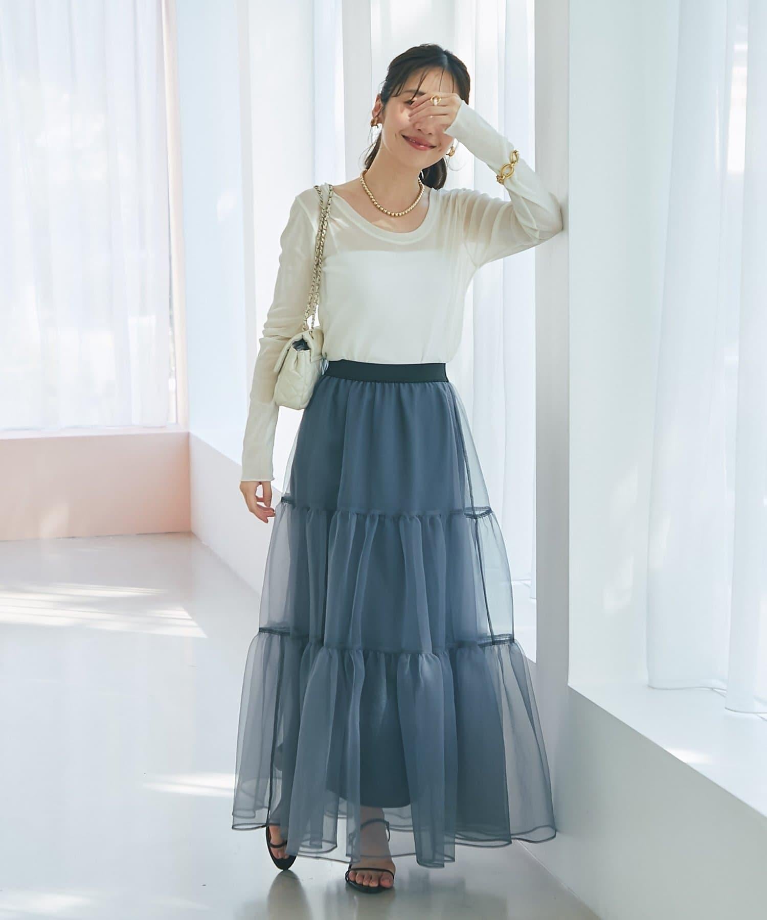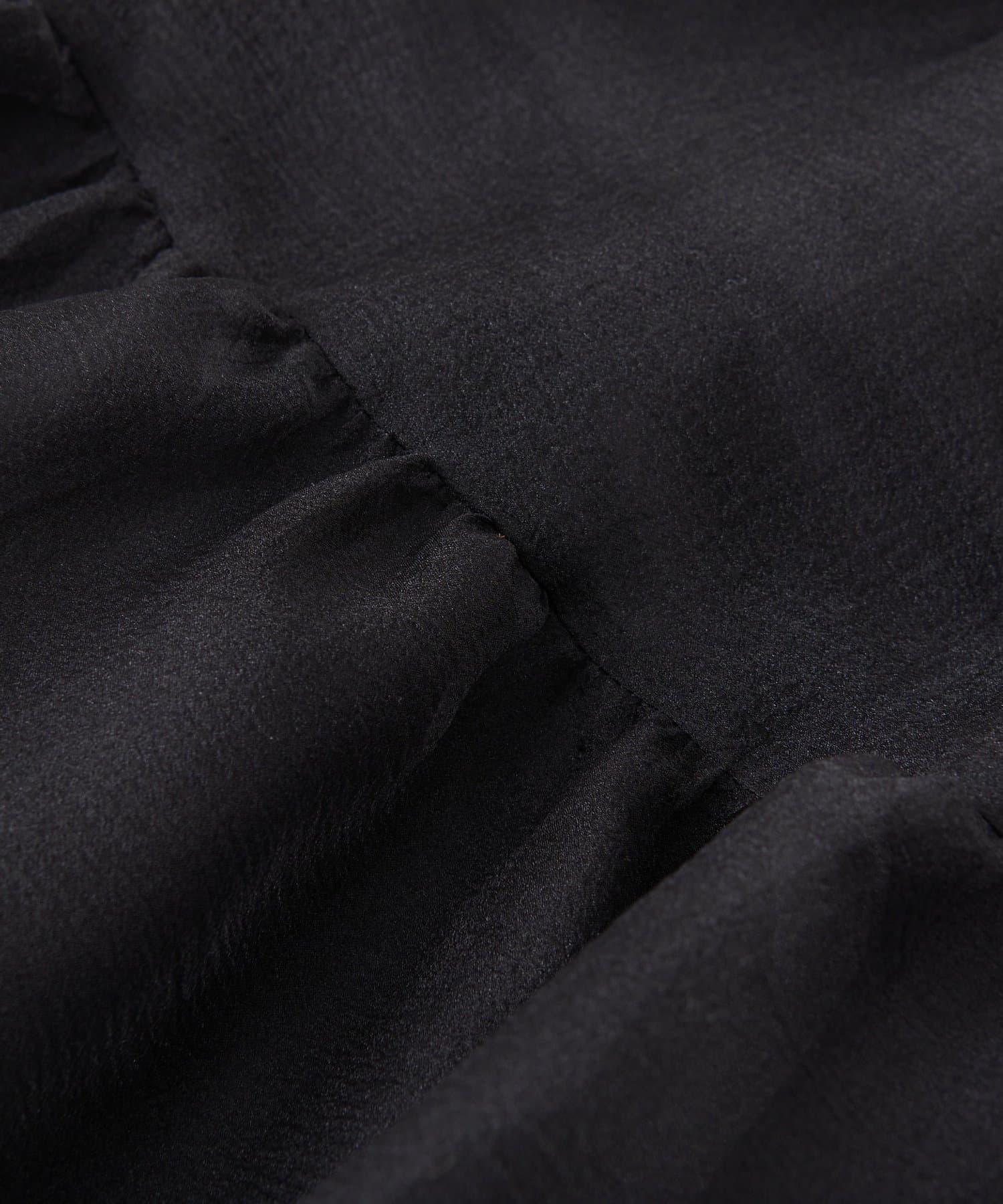 層疊式裙襬,具有歐根紗特有的輕盈蓬鬆輪廓。