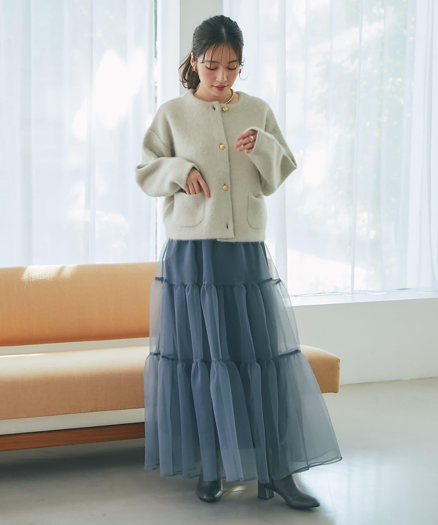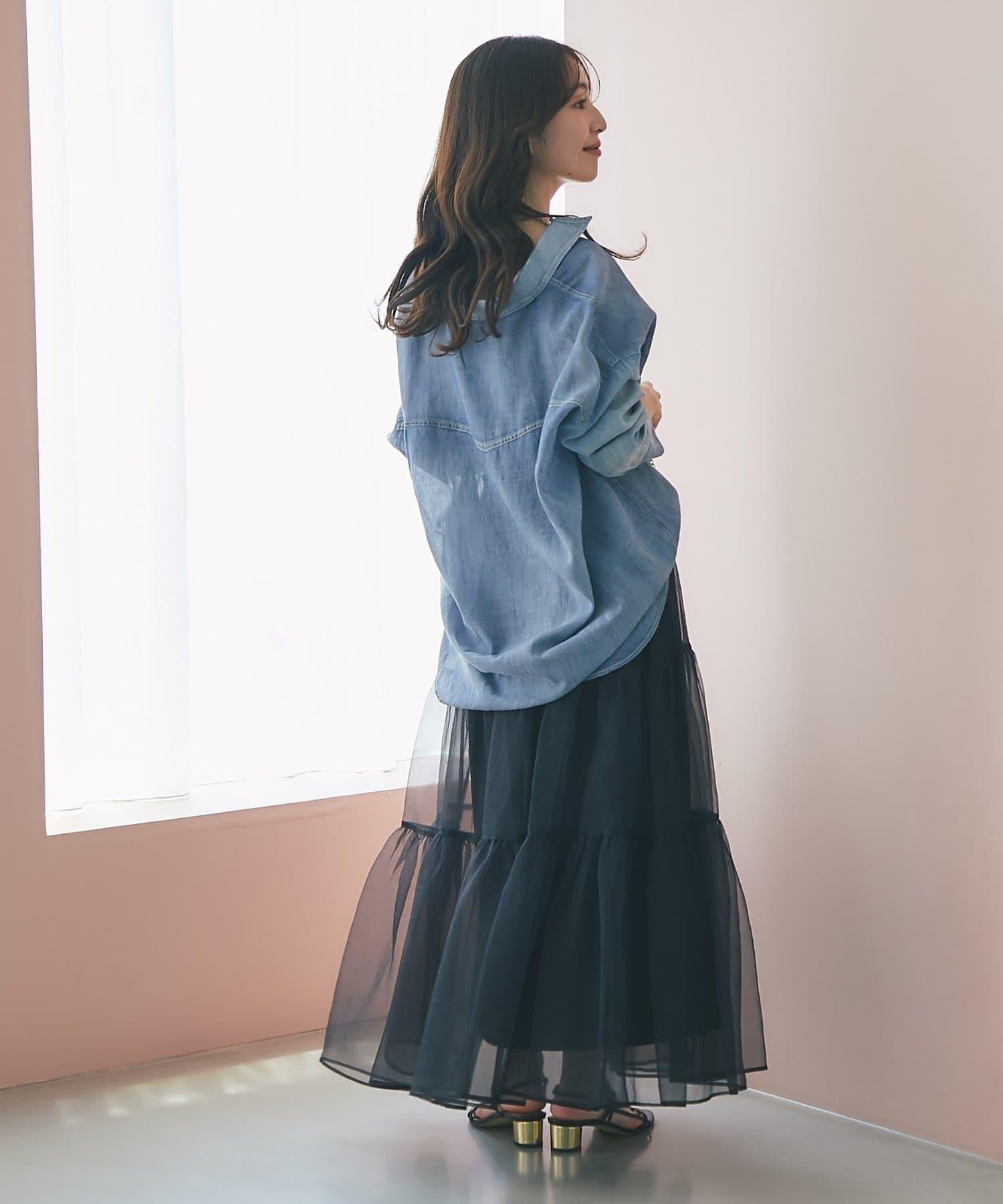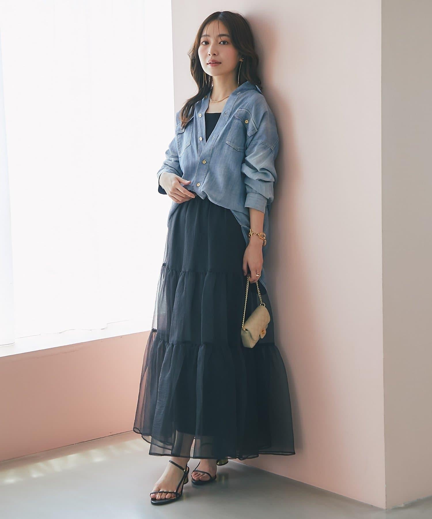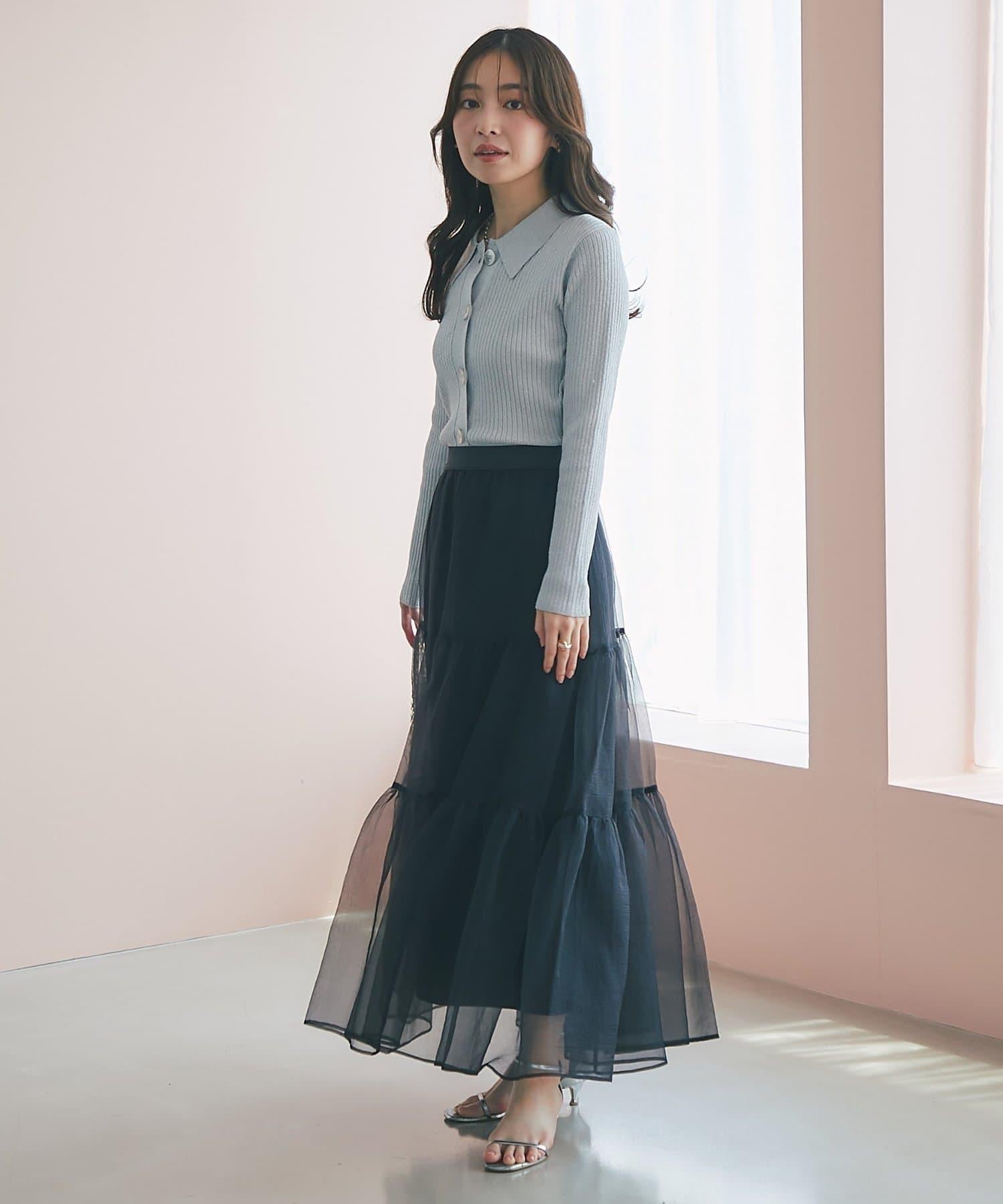層疊式裙襬,具有歐根紗特有的輕盈蓬鬆輪廓。
