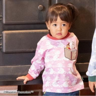 粉紅色的圖案是 Little Miii 的剪影,帶有一個 BOOK 形口袋,以及 Little Mii 和 Moomin 刺繡。