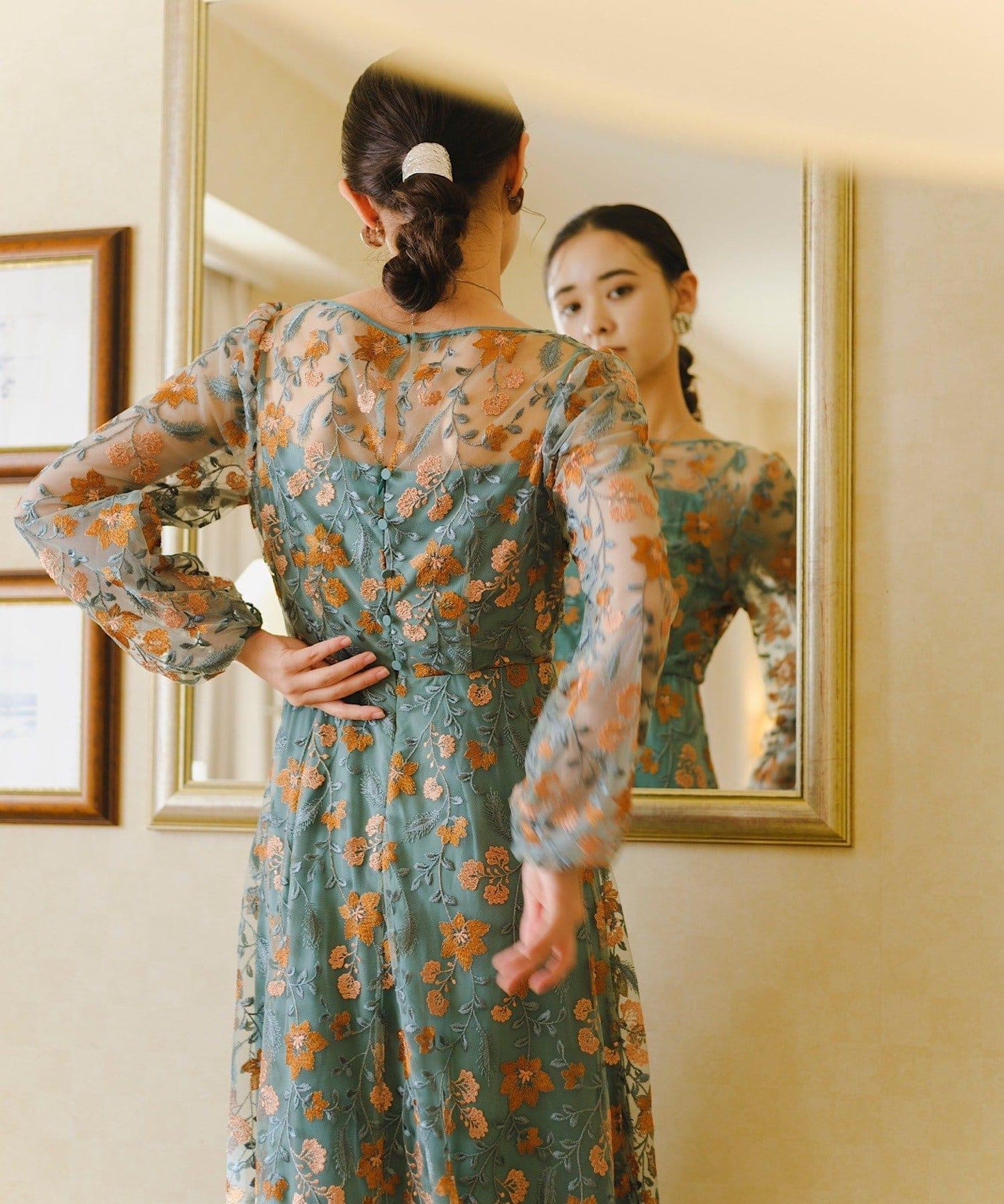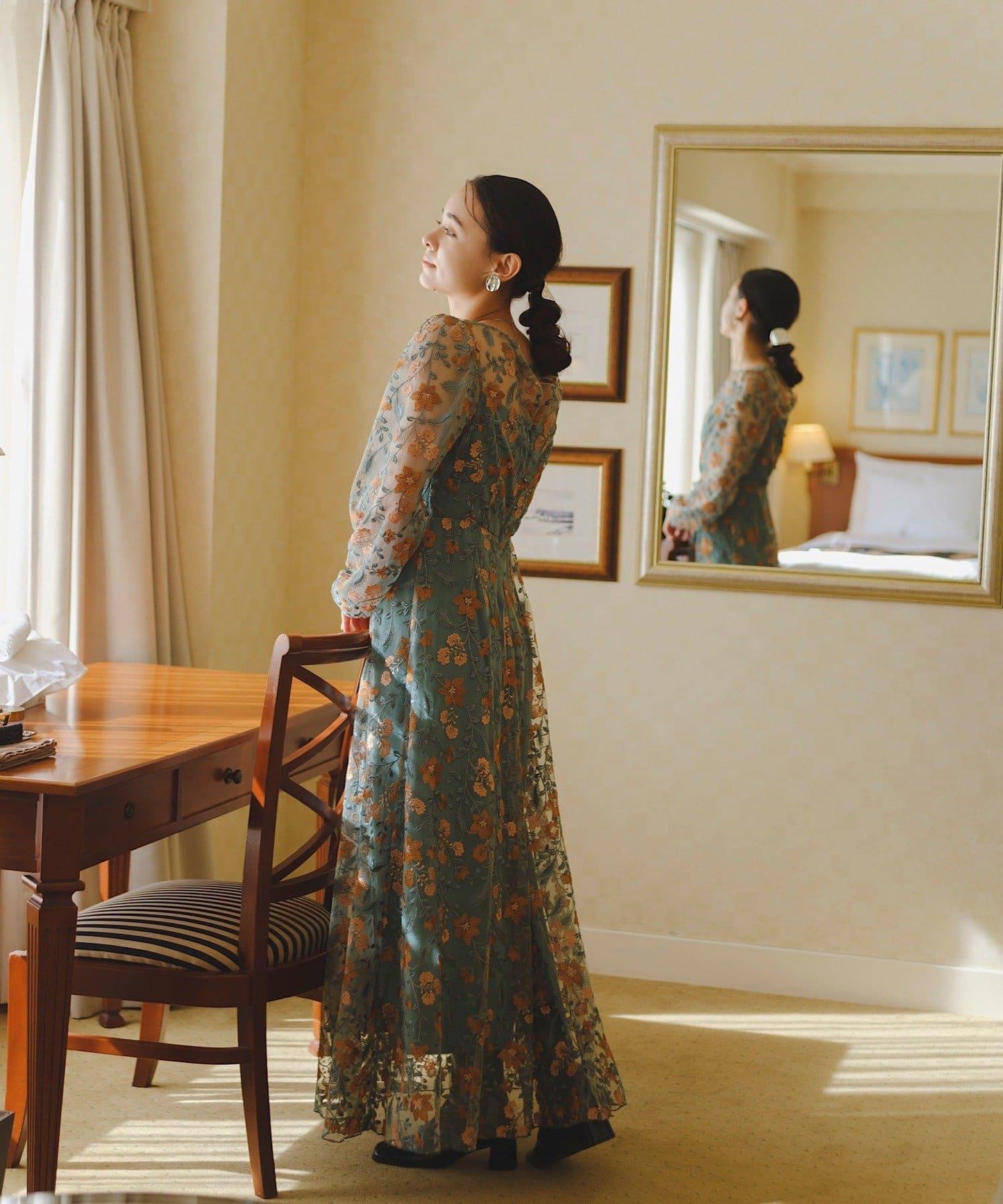 【婚禮/場合禮服】刺繡薄紗連衣裙