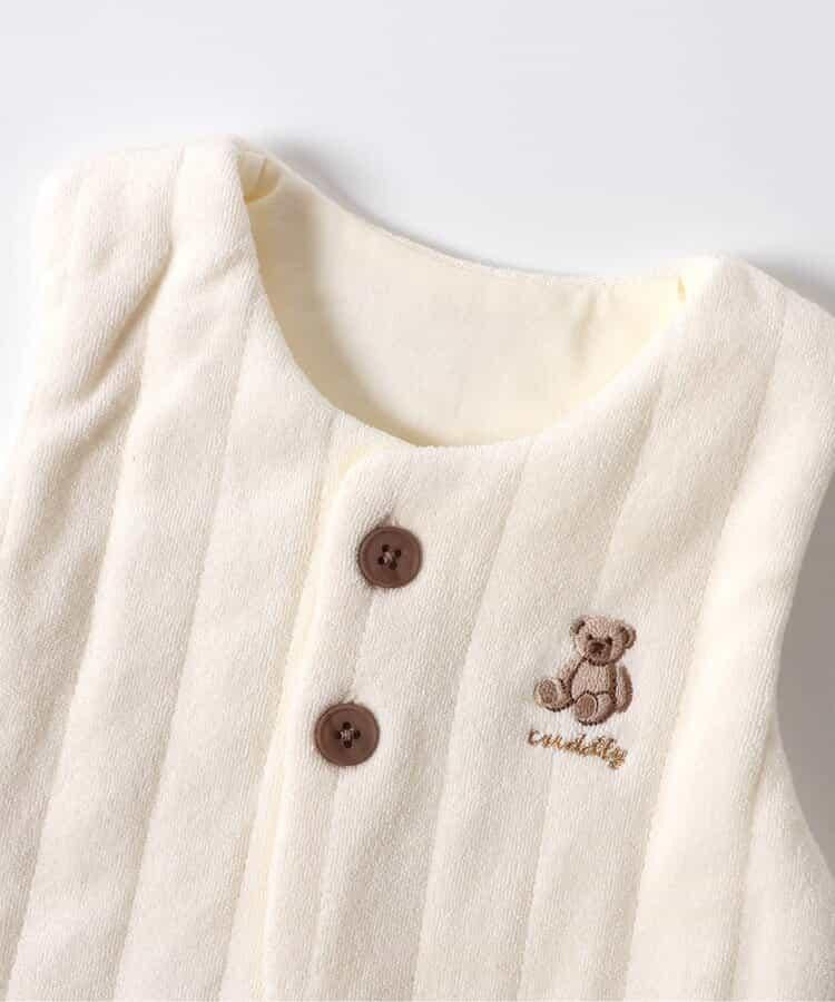 apres les cours "Pile quilt baby waistcoat "馬甲設計自然,線條柔和。為寶寶的協調性增添時尚氣息。