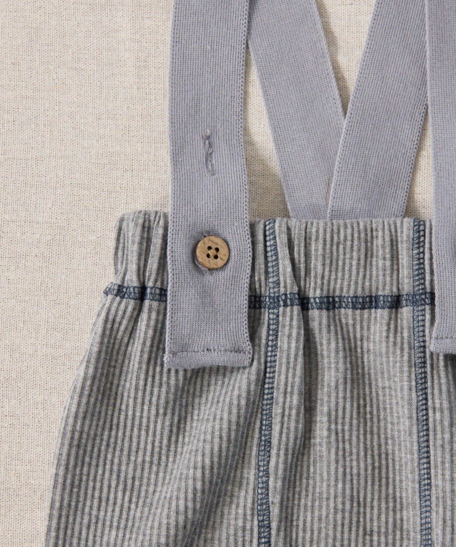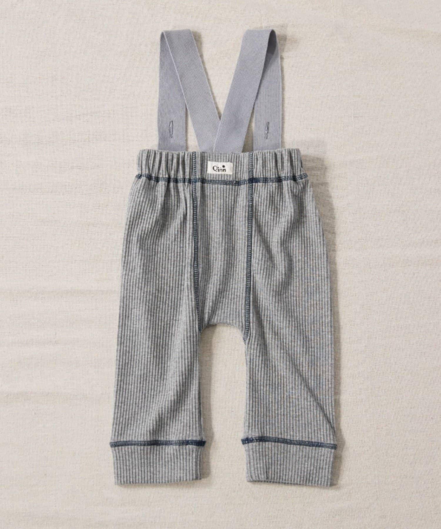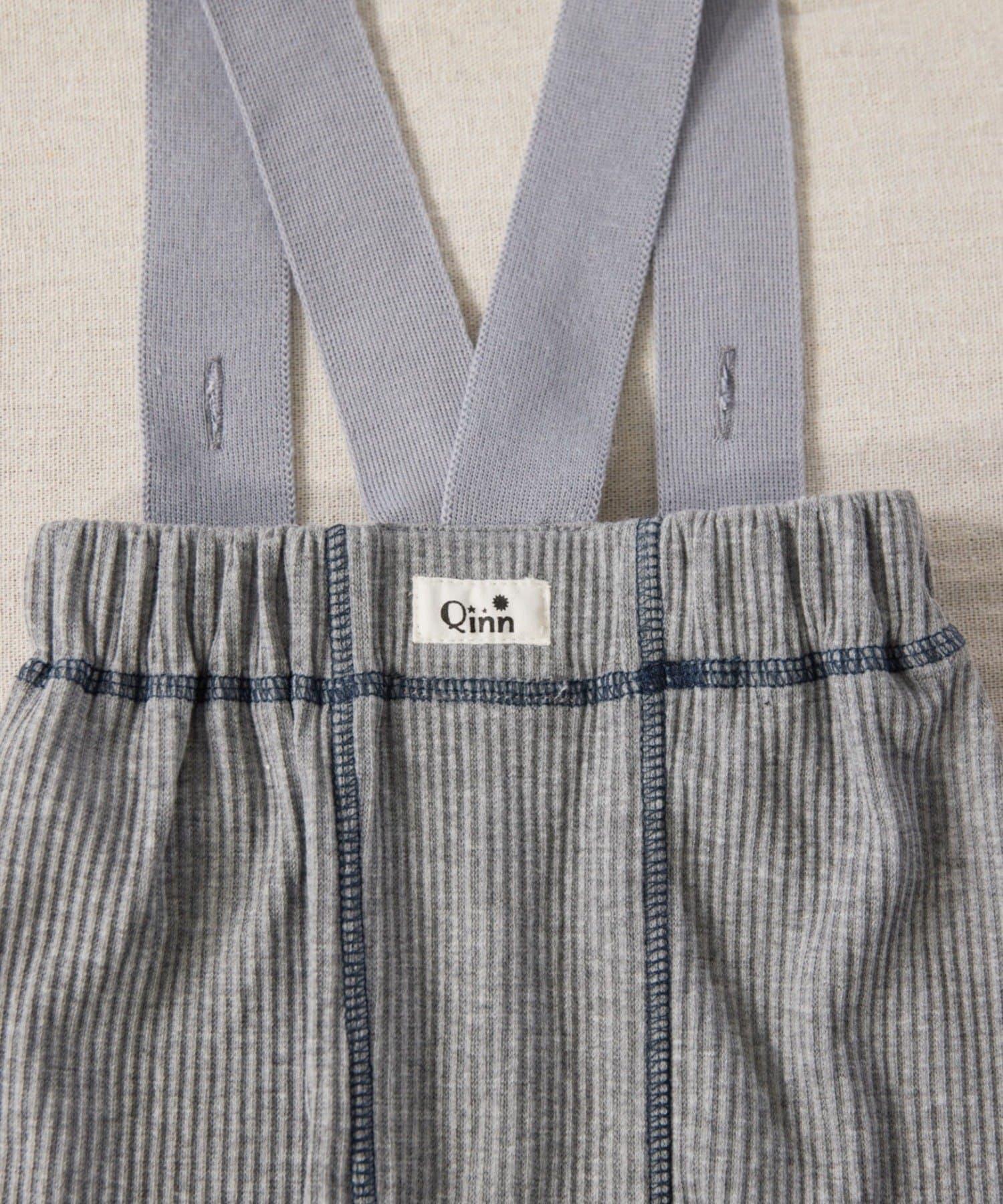 時尚單品,羅紋長褲上附有吊帶,便於活動。