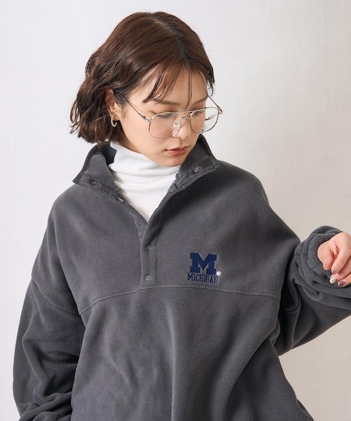 復古感十足的抓絨套頭衫,繡有密歇根大學、賓夕法尼亞大學和耶魯大學的校徽。