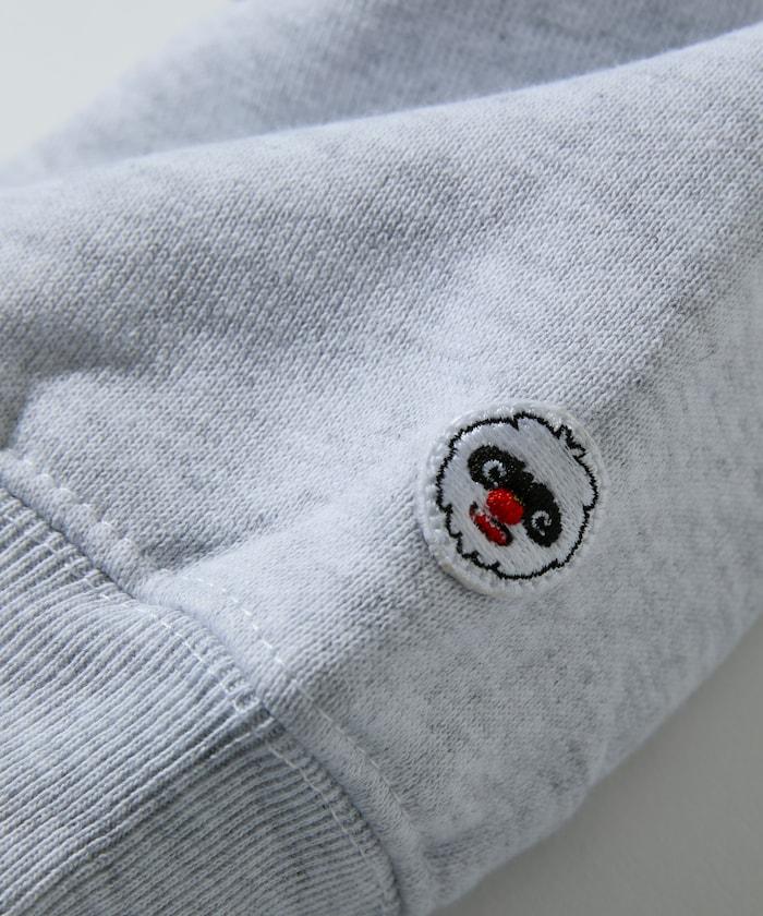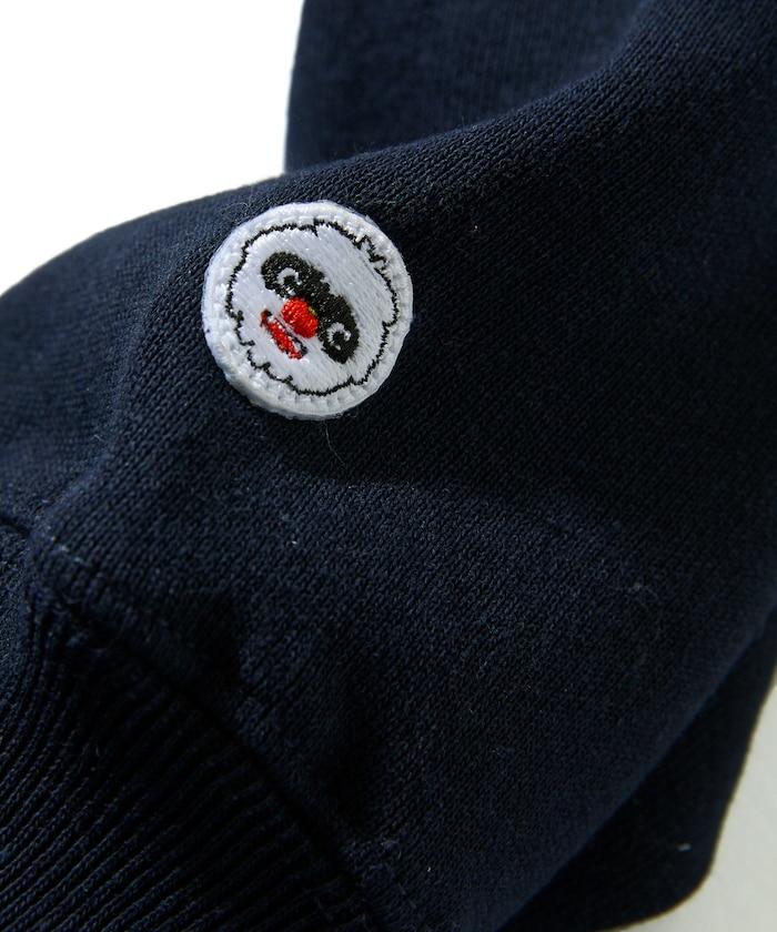 吉祥物布萊爾的臉部以貼布刺繡作為點綴,從下襬處看很隨意,很有吸引力。