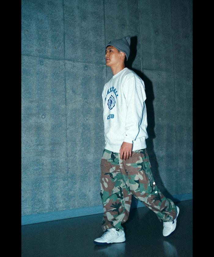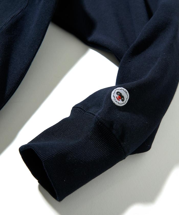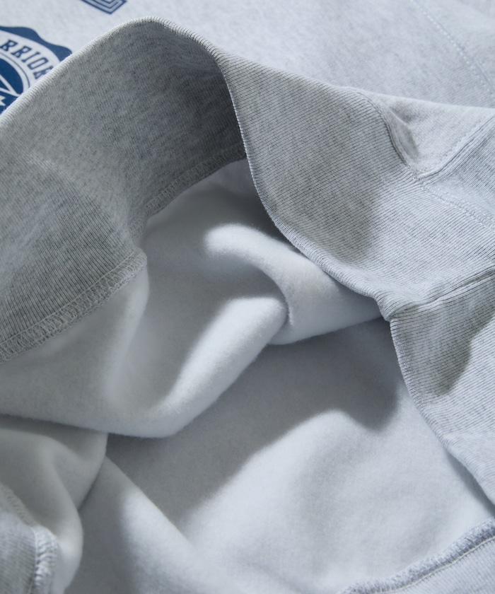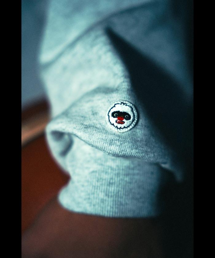 正面的印花采用了復古服裝上常見的學院運動風格設計,並印有球隊名稱。隨意變形的圓形俱樂部名稱給人一種復古服裝的感覺。面料表面紋理粗糙,手感粗糲,側邊採用羅紋設計,不易變形,越洗越有獨特的質感。袖子也非常寬鬆,穿起來輕鬆自如,宛如復古的輪廓。稍大的尺碼可以讓你享受粗獷的穿衣風格。
