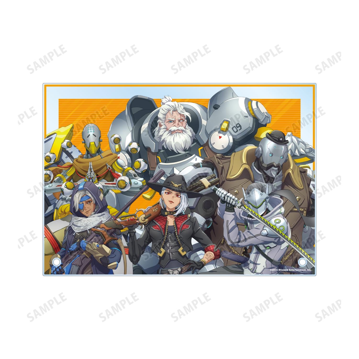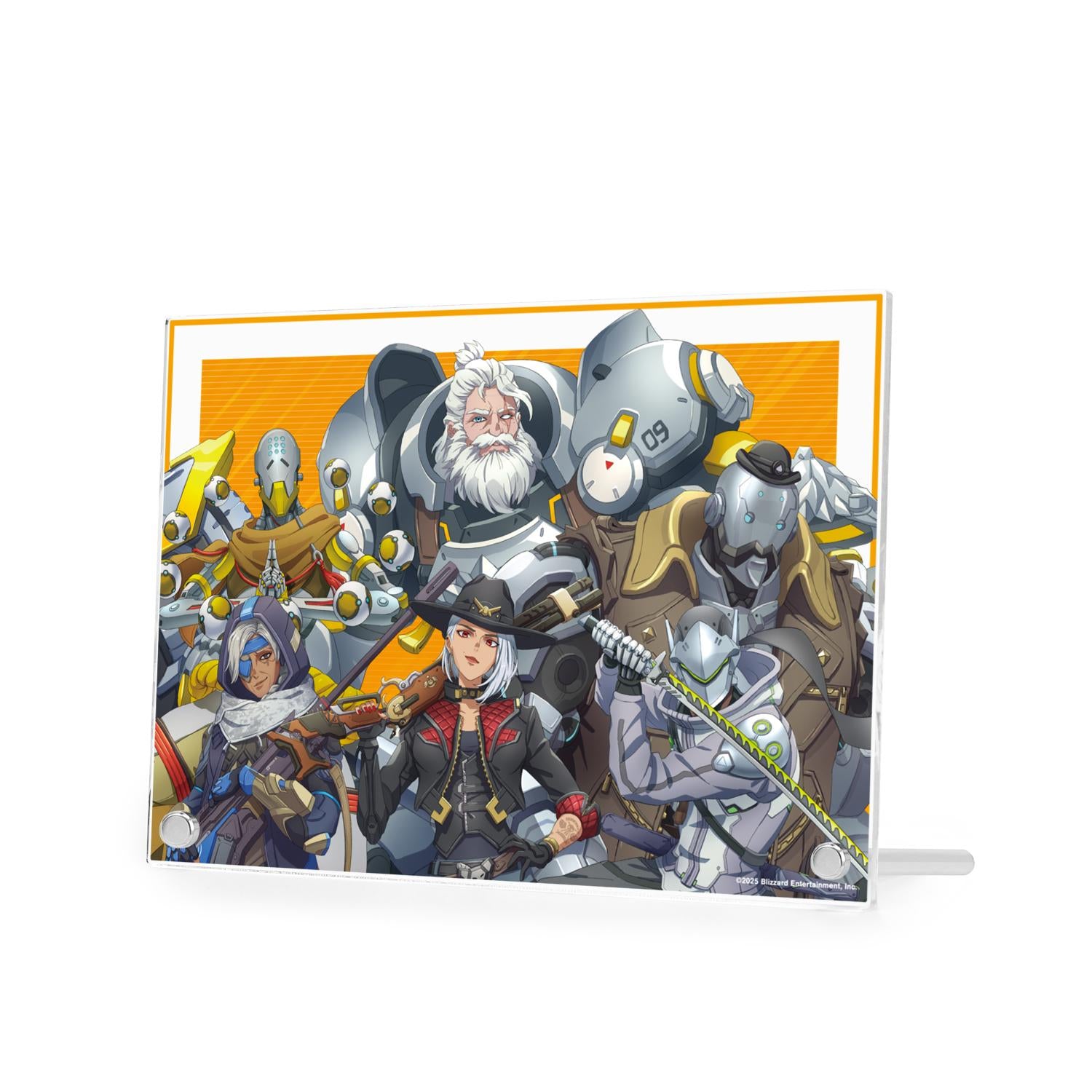 由 Melee 繪製的灰燼、B.O.B.、安娜、源氏、禪雅塔和萊因哈特的插圖已製作成 A5 大小的亞克力面板。