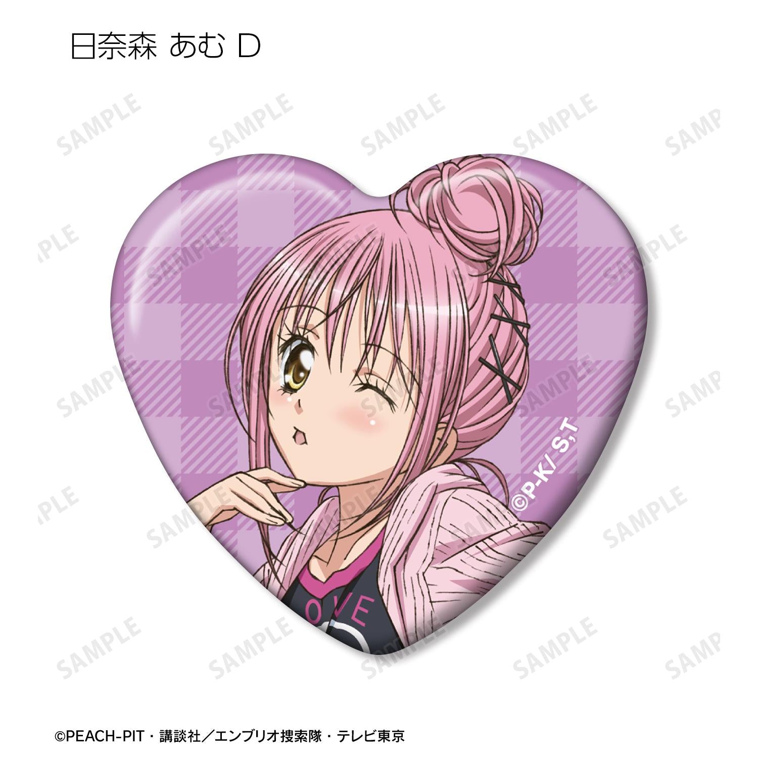 Amu Hinamori 的插圖已被製作成心形罐頭徽章。