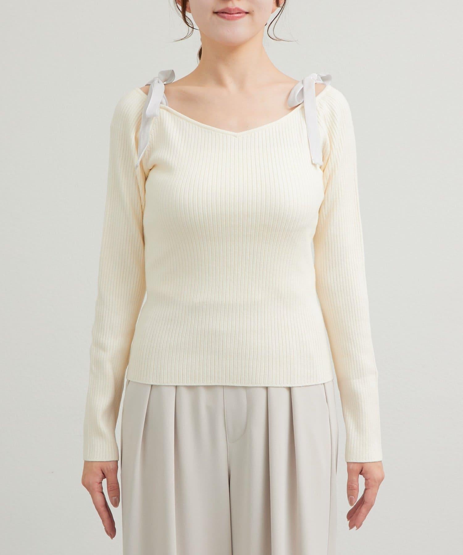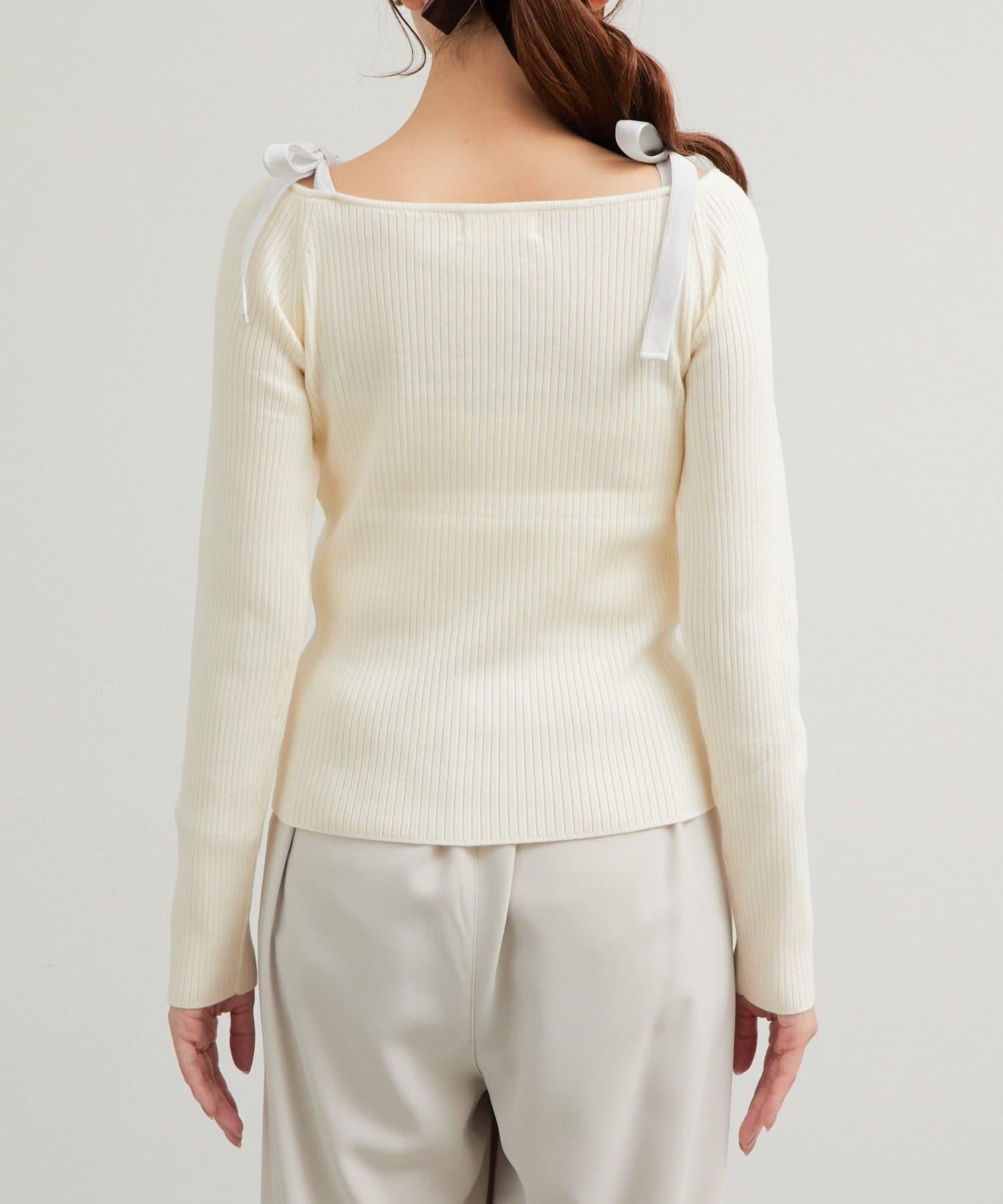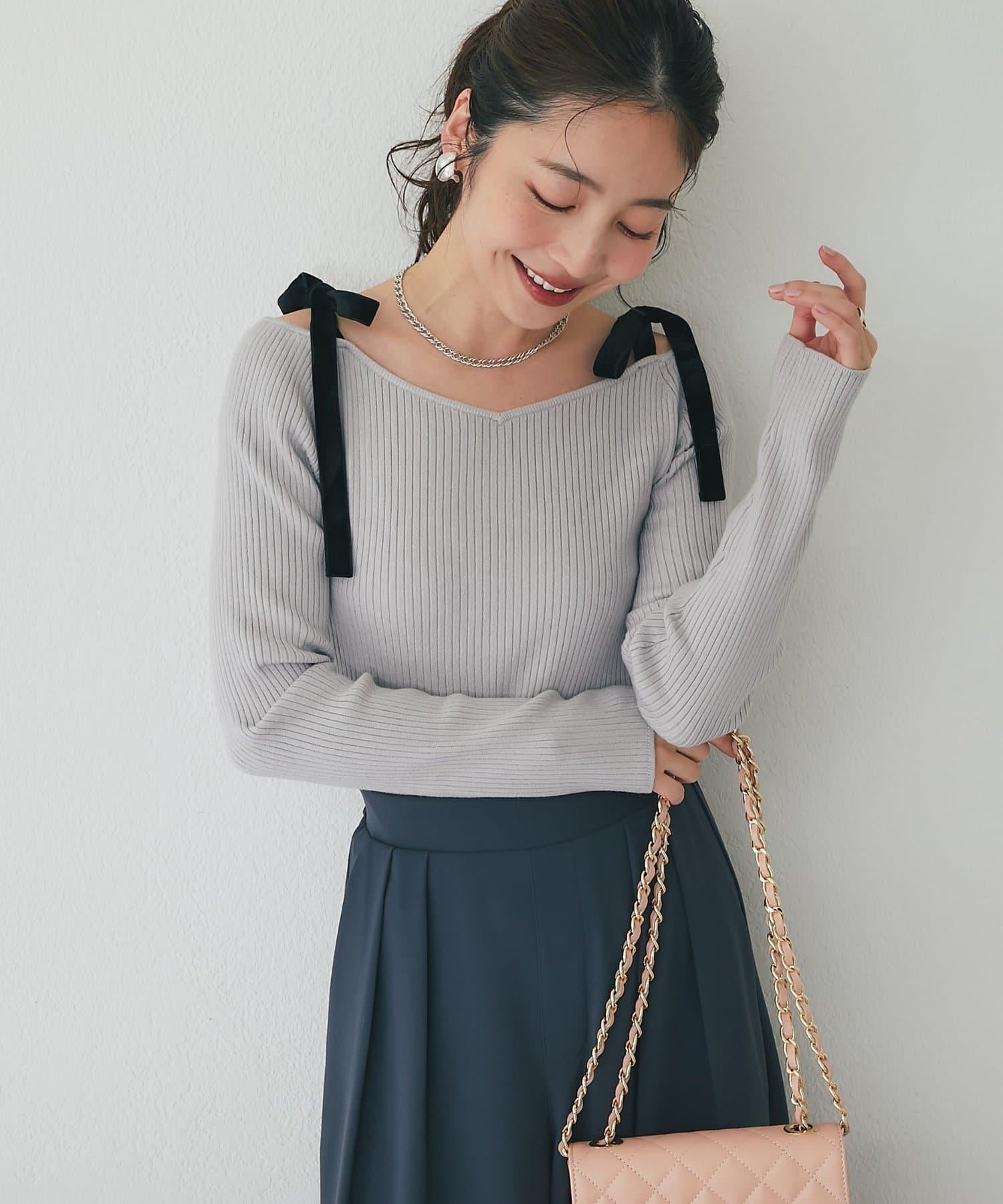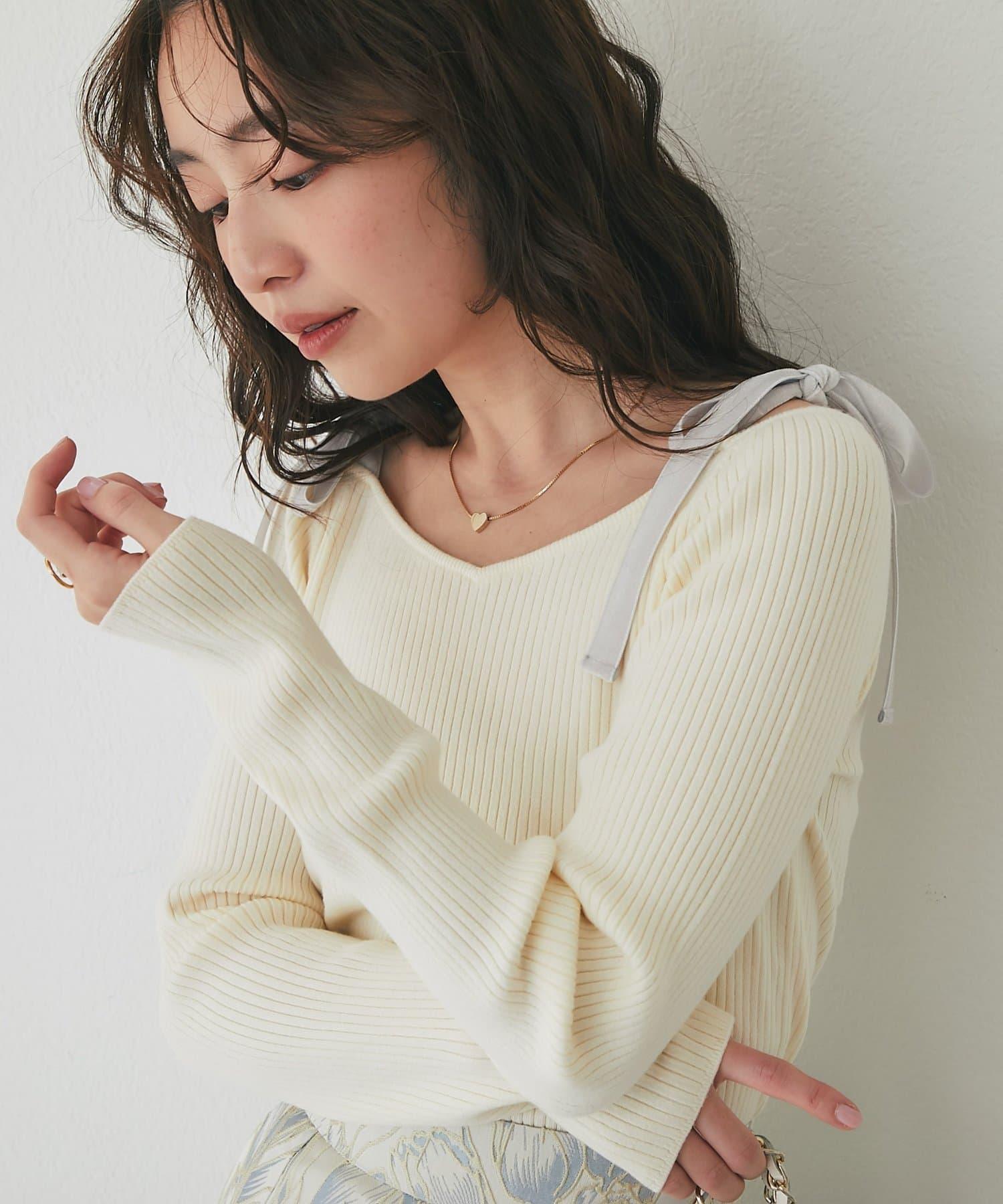 令人印象深刻的針織衫,領口的設計能很好地展現肩部的美感,肩部的緞帶也很精緻。