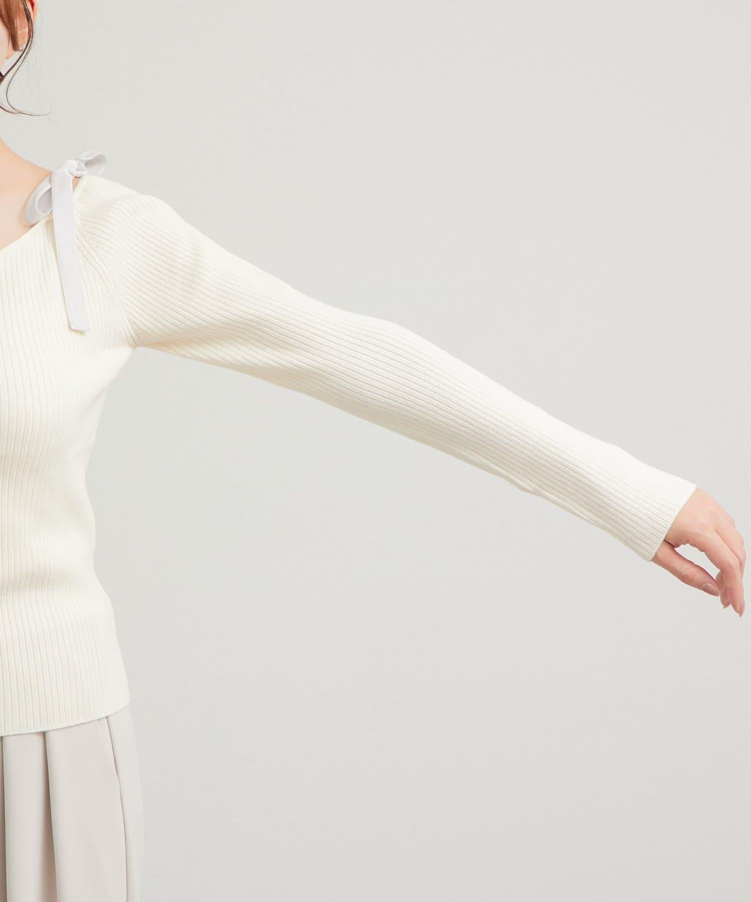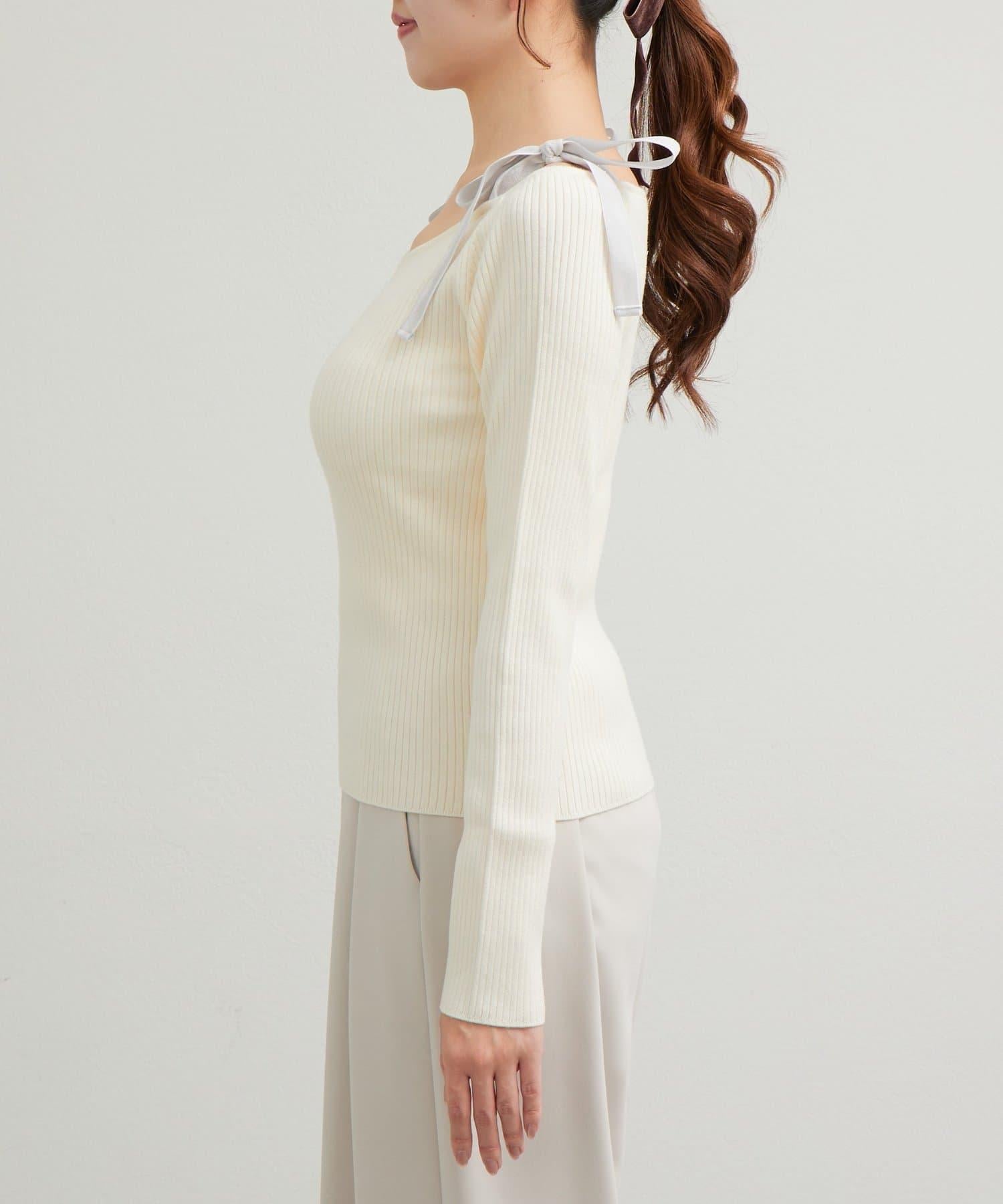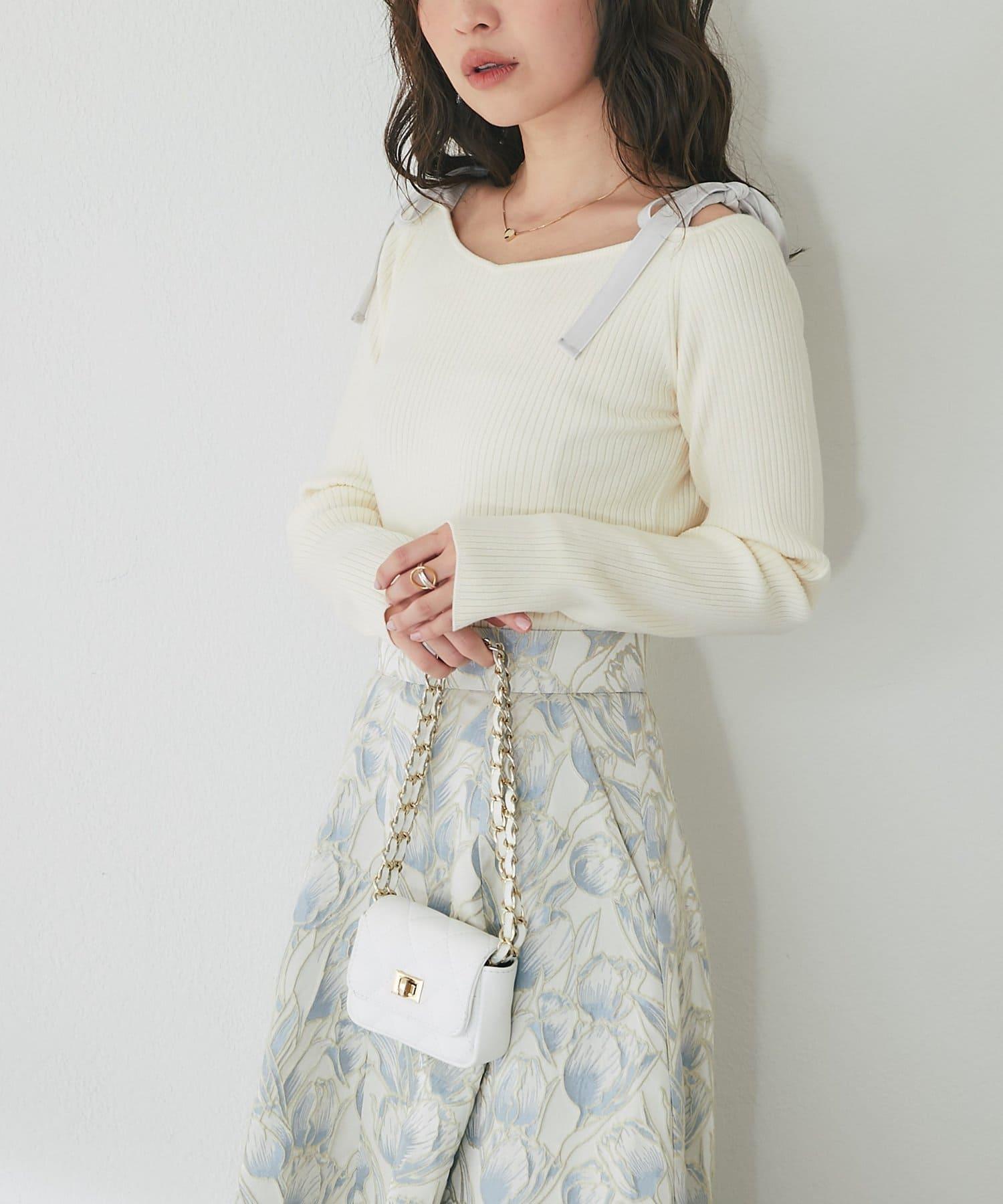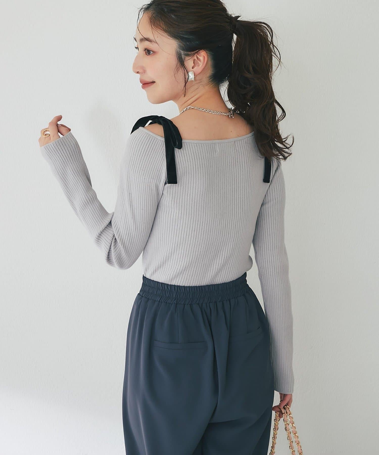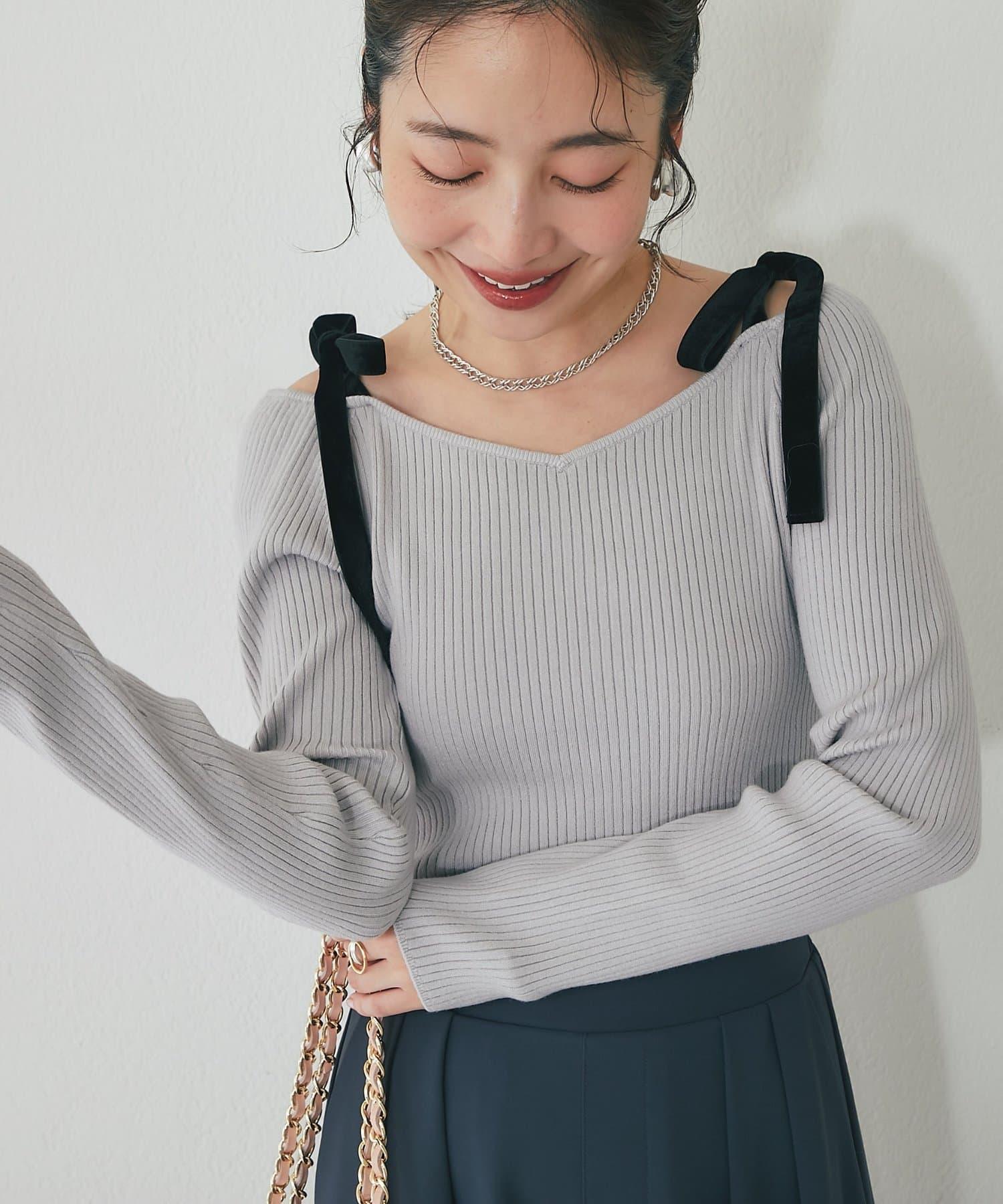 令人印象深刻的針織衫,領口的設計能很好地展現肩部的美感,肩部的緞帶也很精緻。