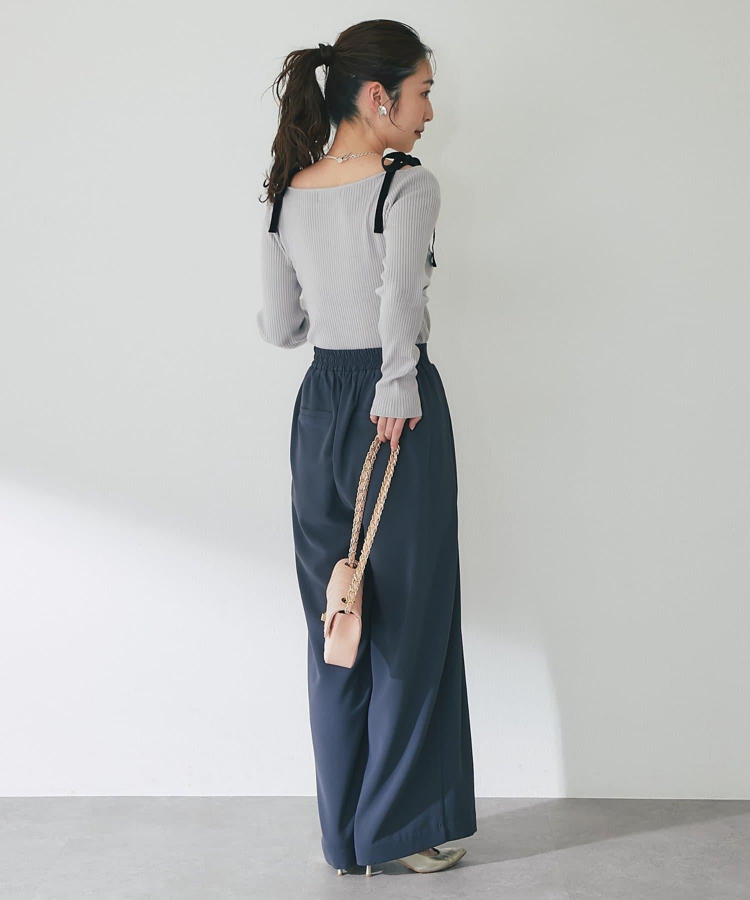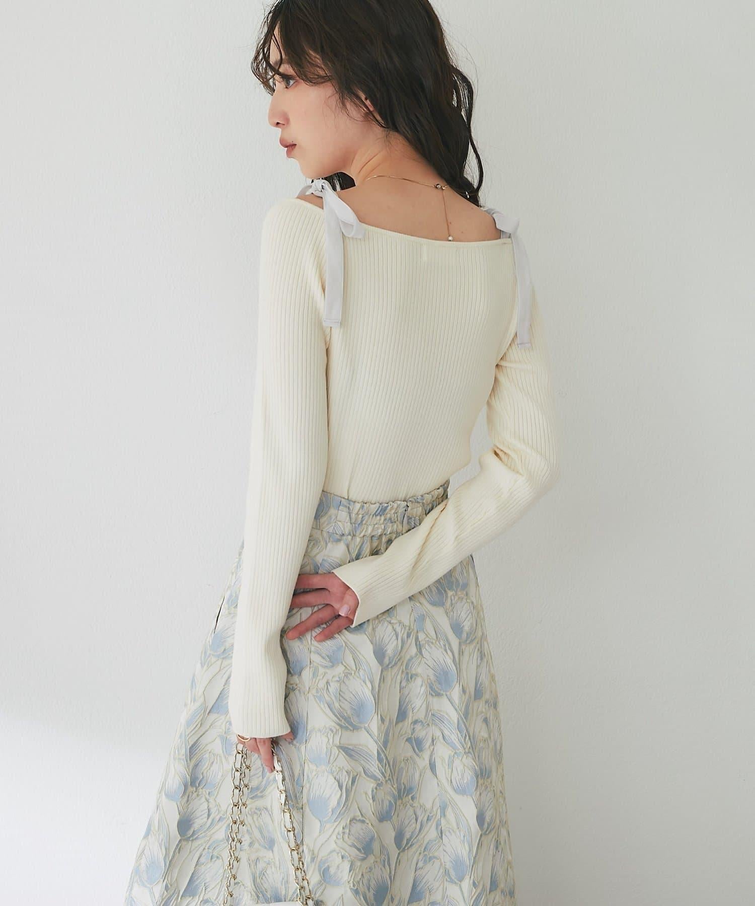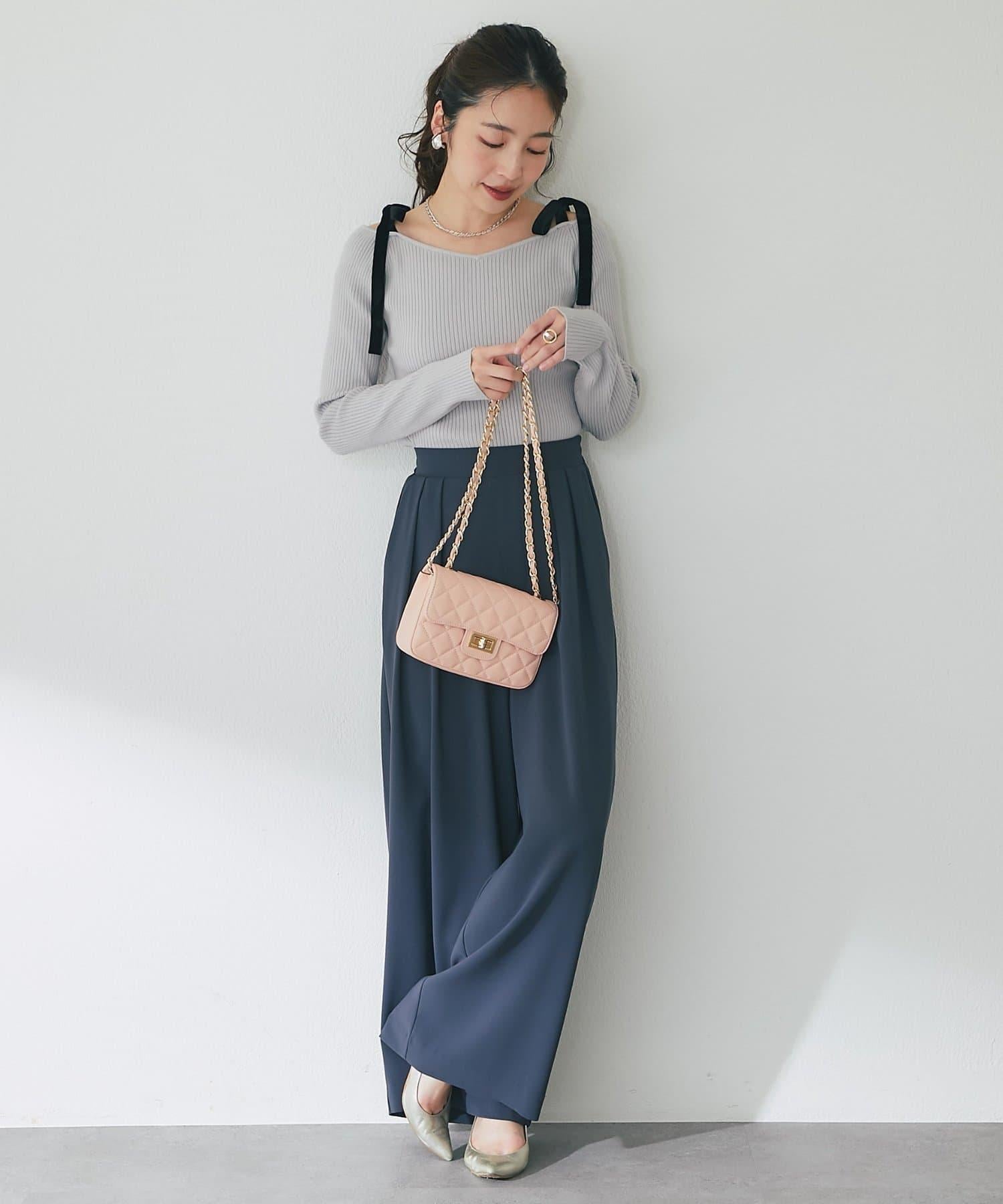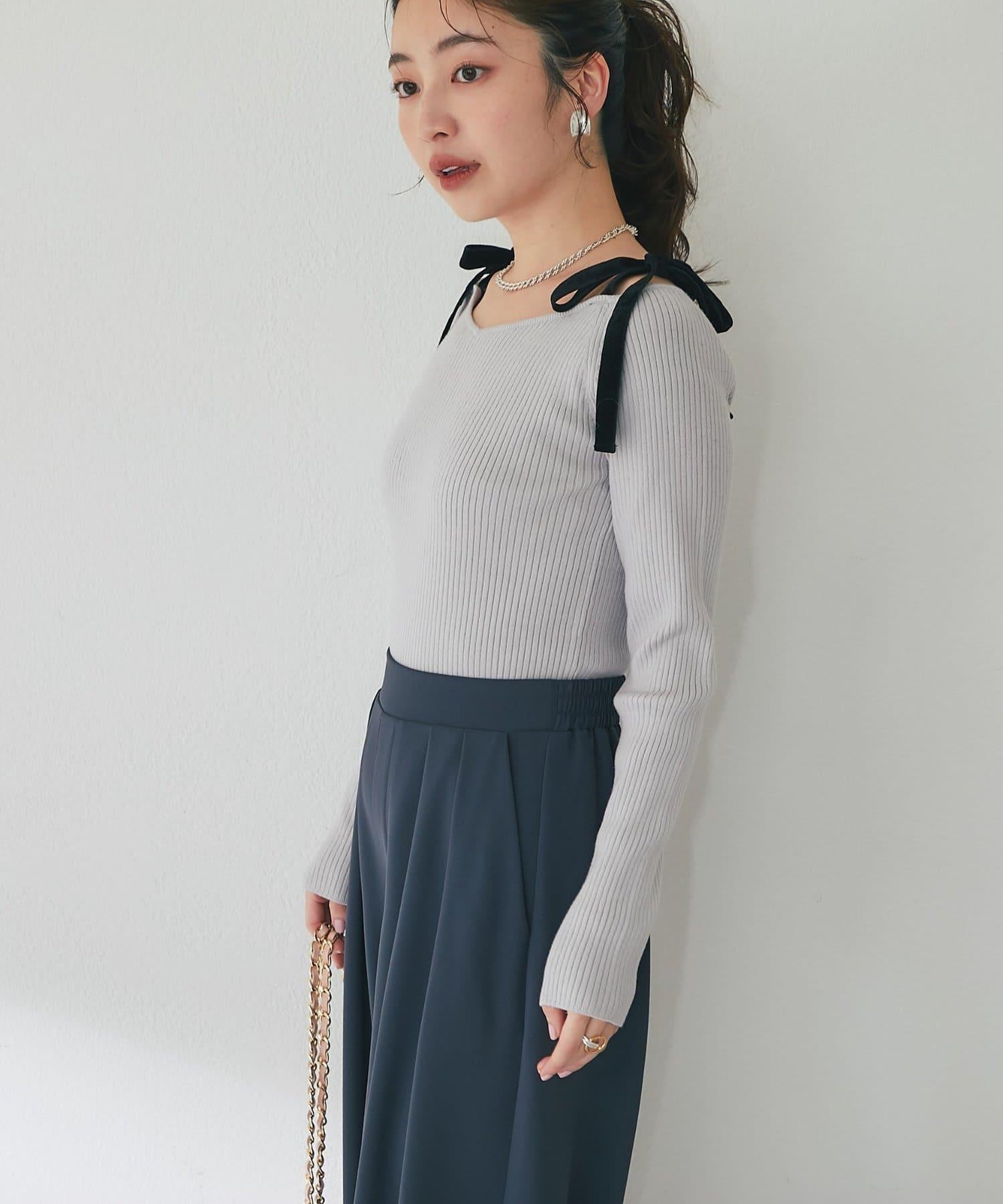 令人印象深刻的針織衫,領口的設計能很好地展現肩部的美感,肩部的緞帶也很精緻。