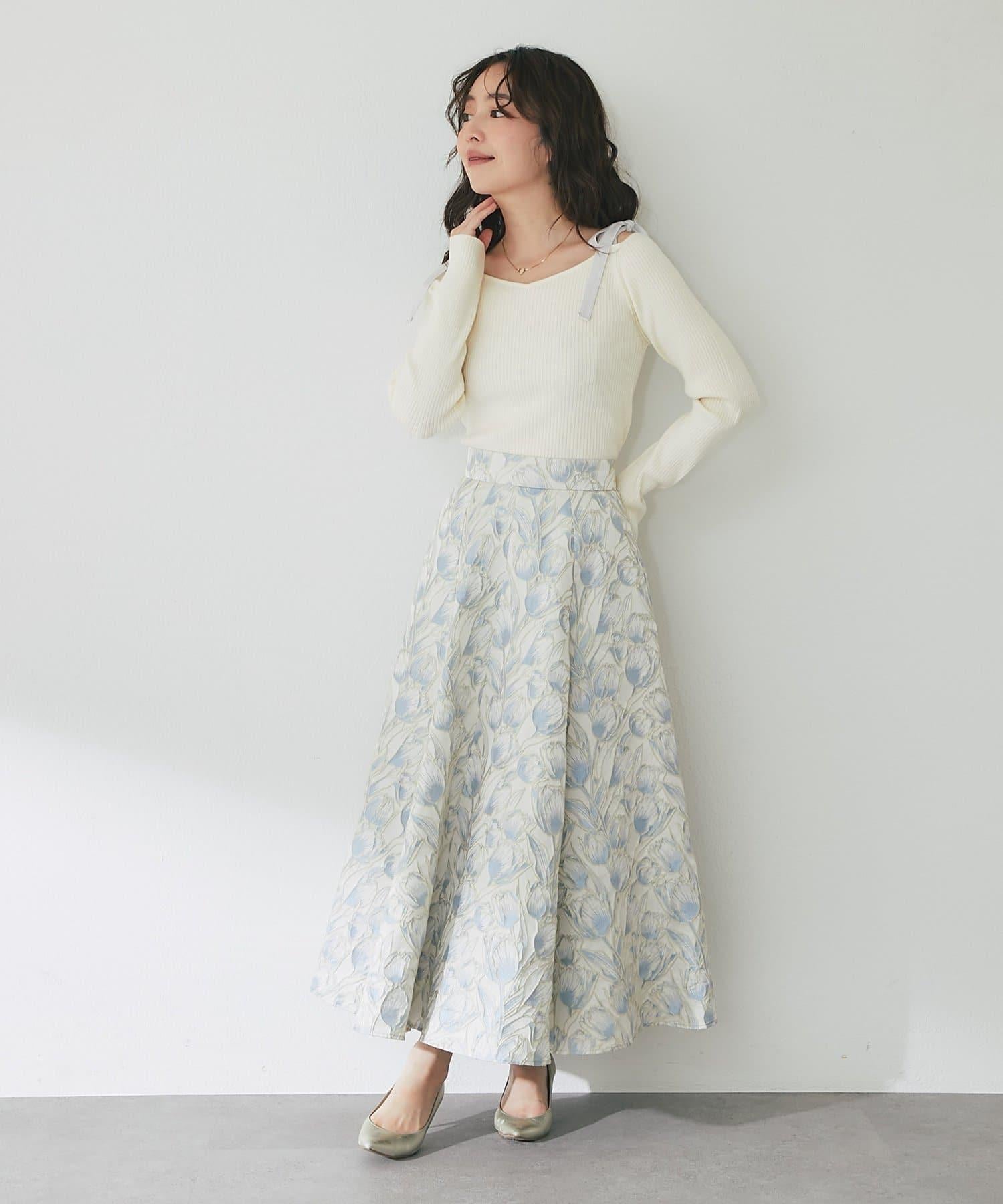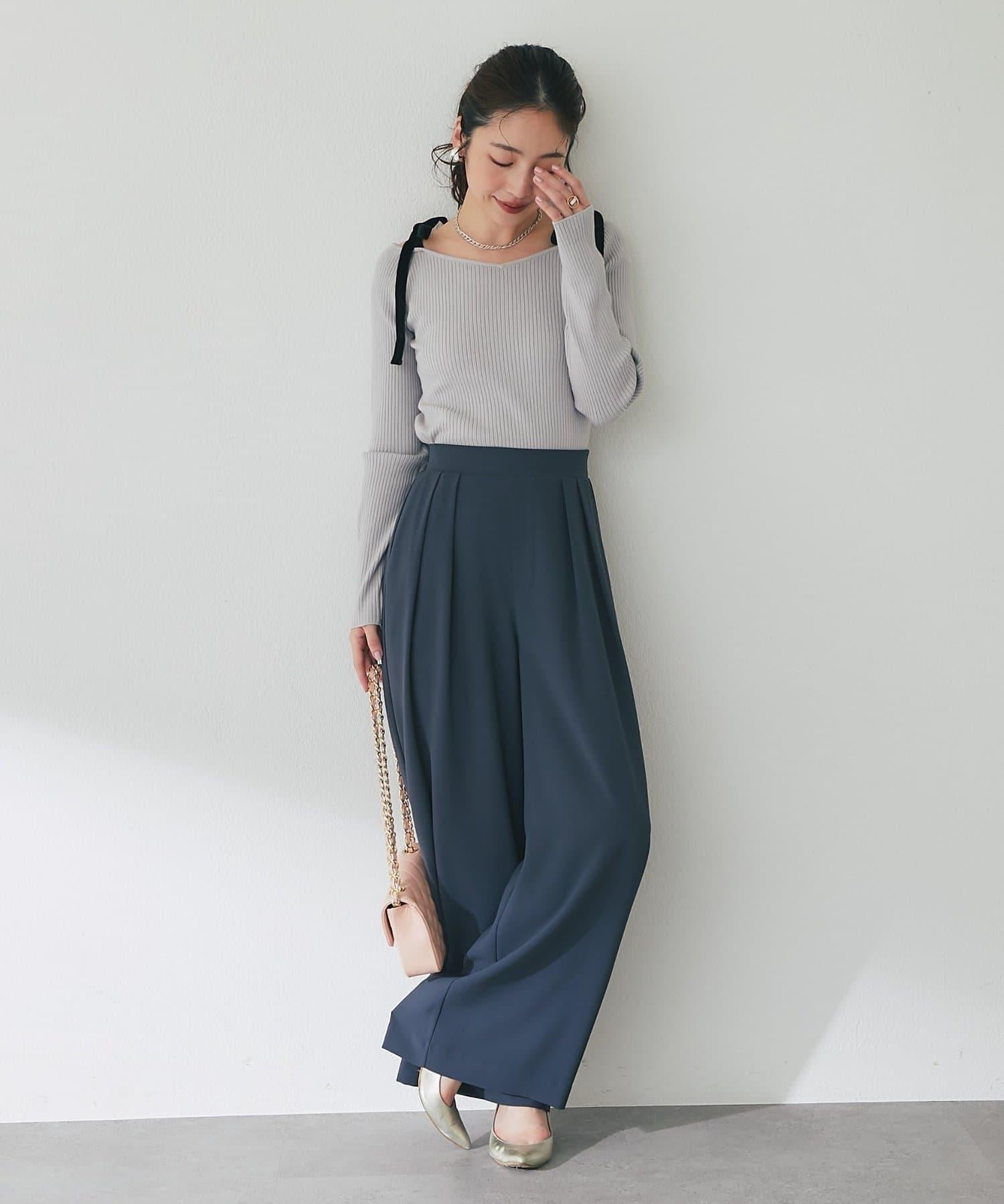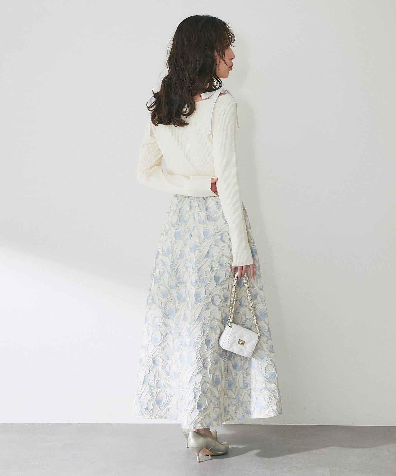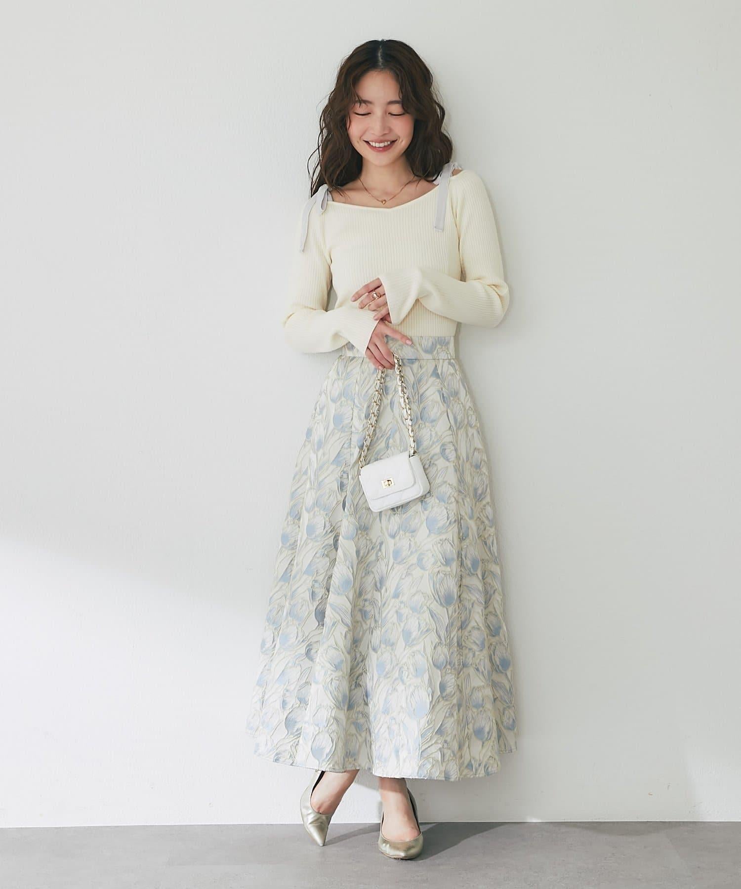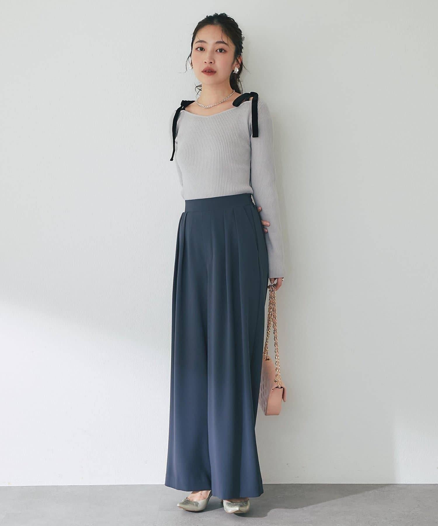 令人印象深刻的針織衫,領口的設計能很好地展現肩部的美感,肩部的緞帶也很精緻。