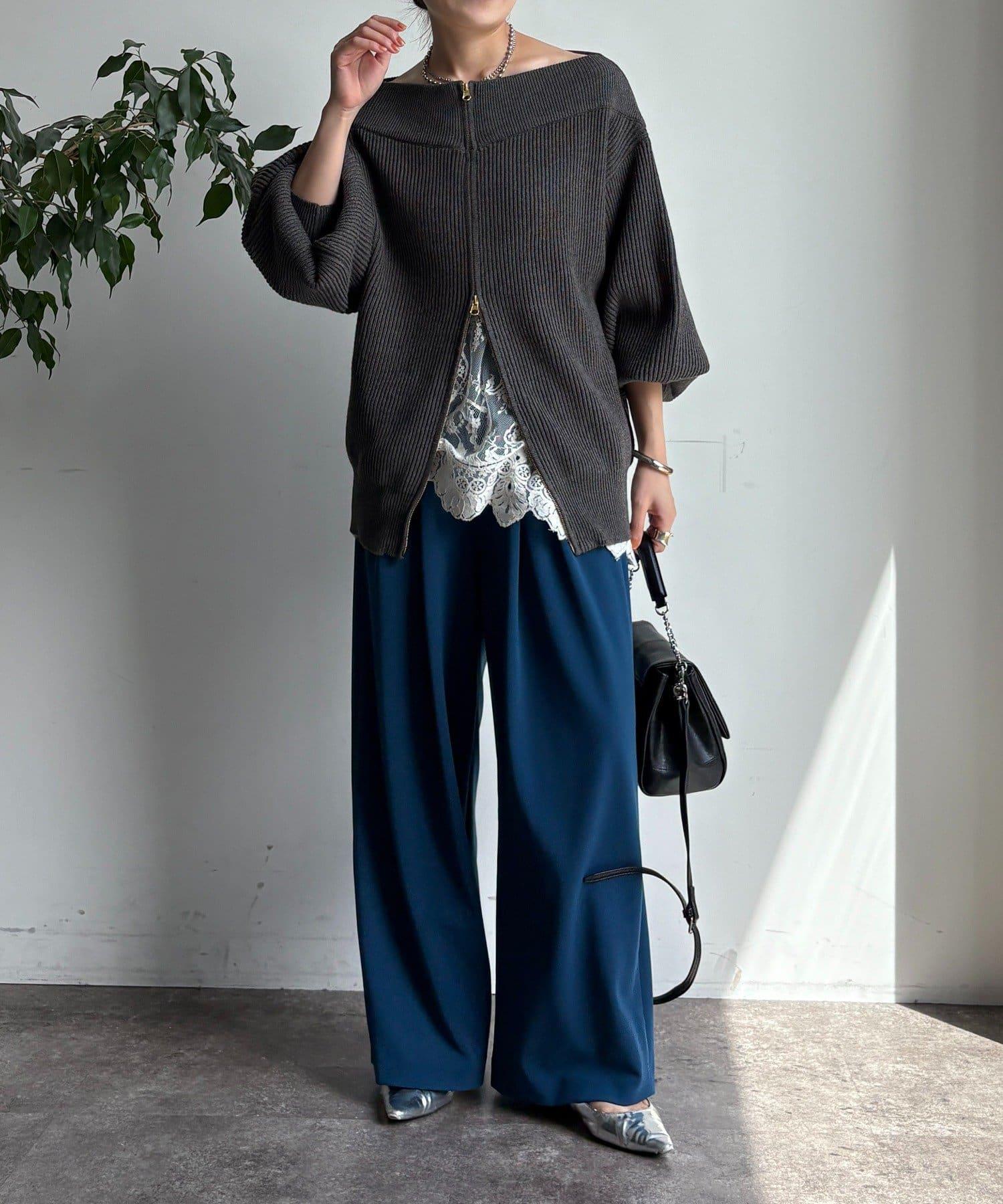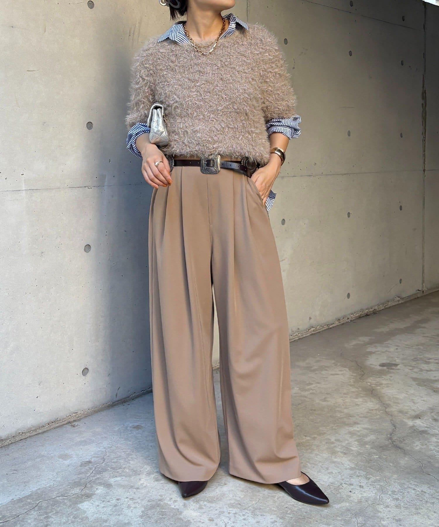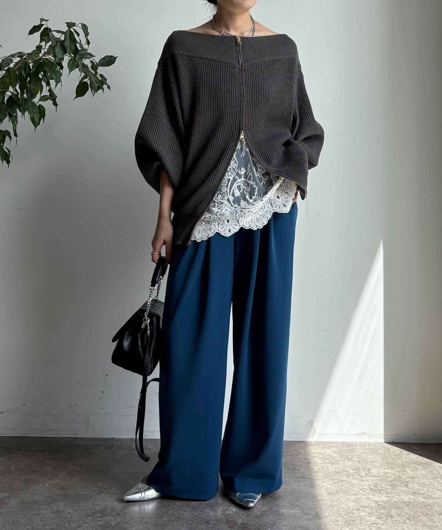 由於有一種下墜感,因此也是一種可以很好平衡穿著的點。