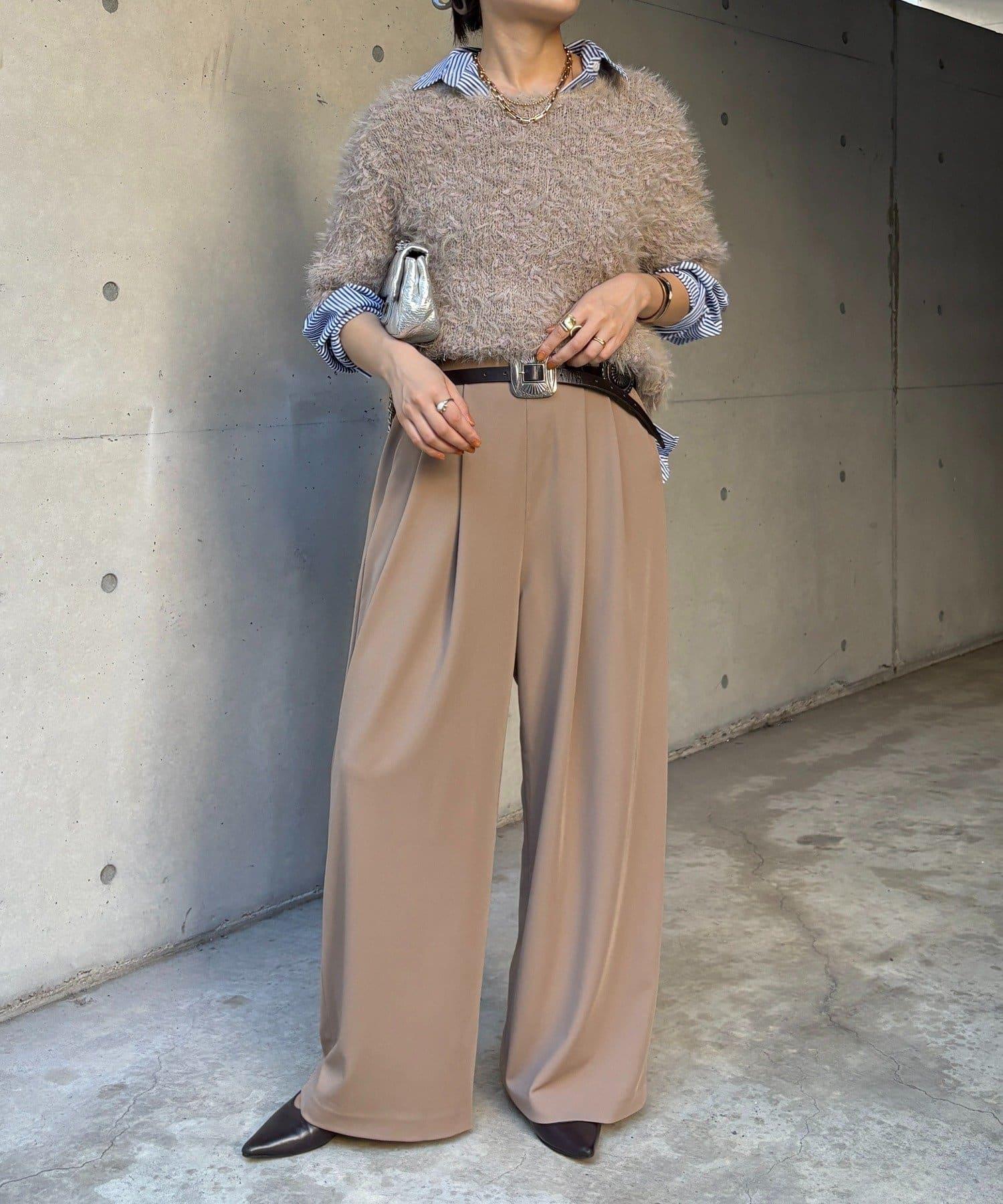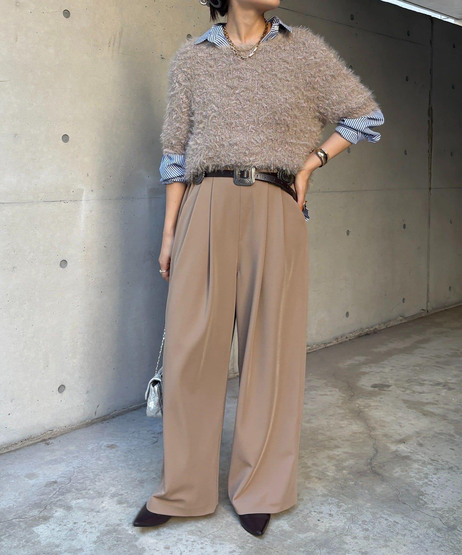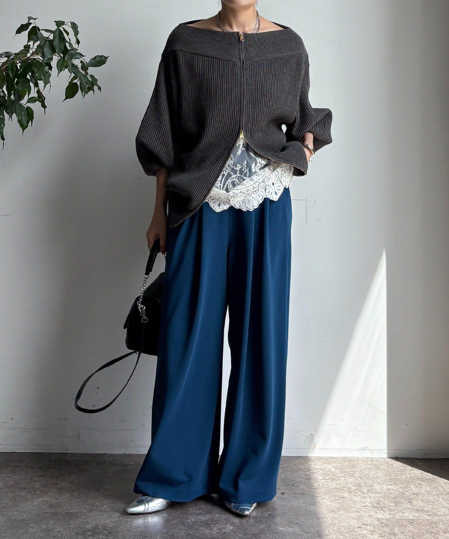 由於有一種下墜感,因此也是一種可以很好平衡穿著的點。