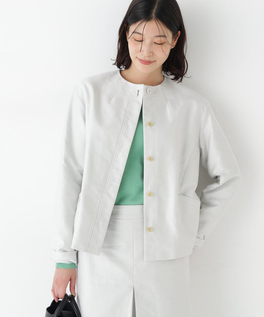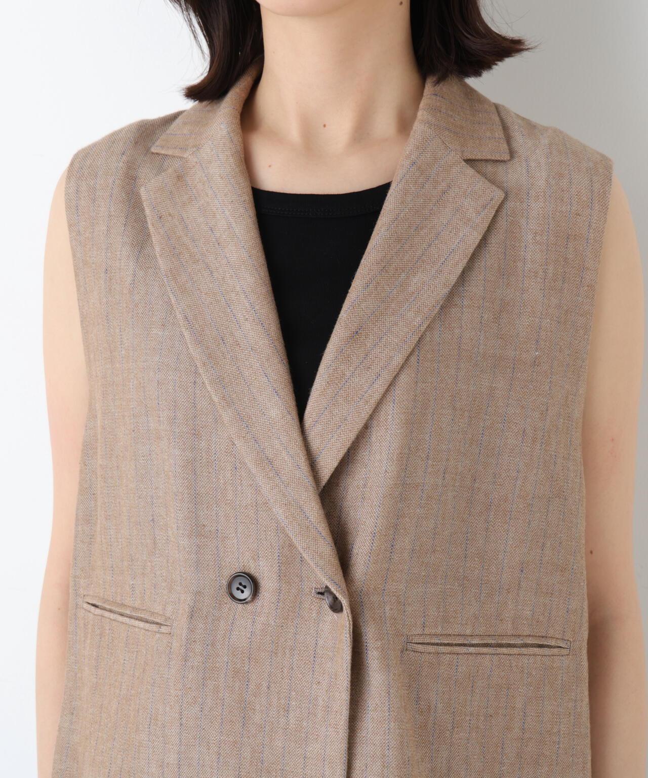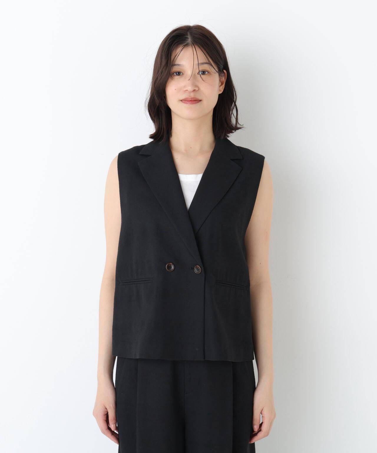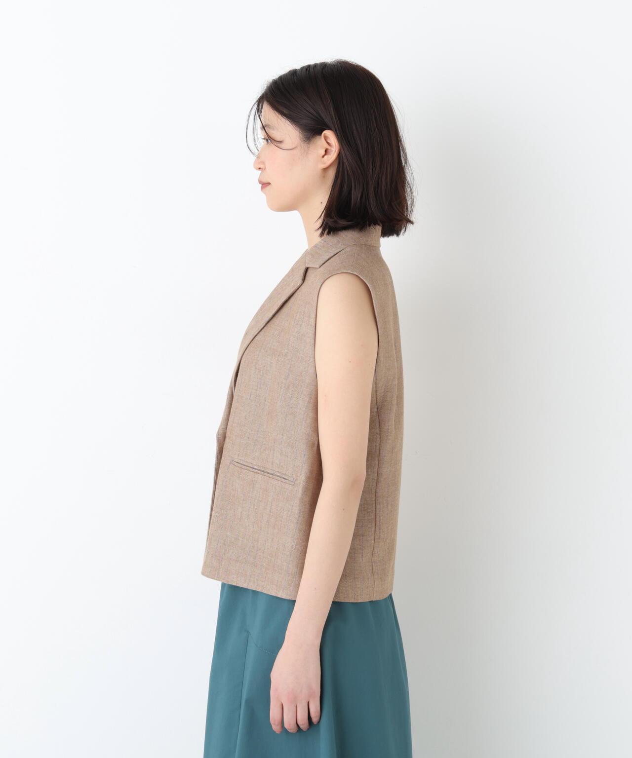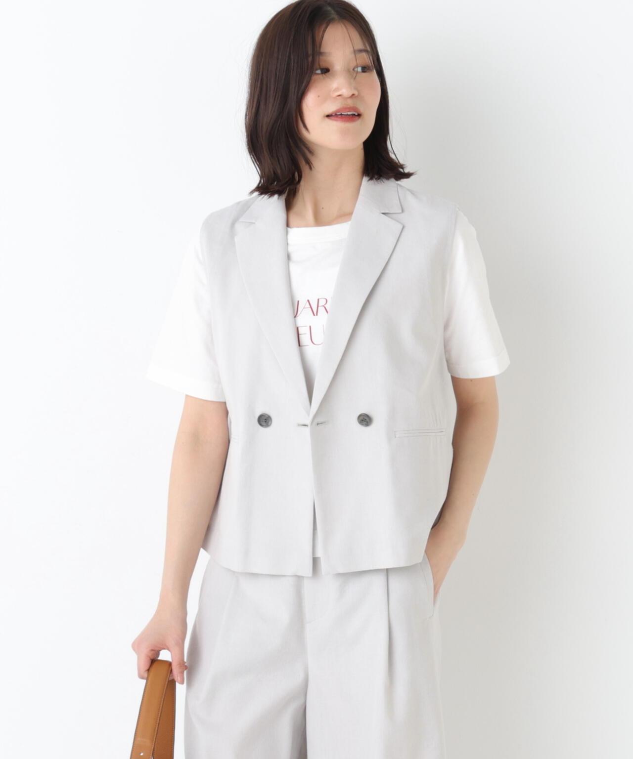 《定番素材 / 洗える》 乾爽觸感亞麻混 短款馬甲