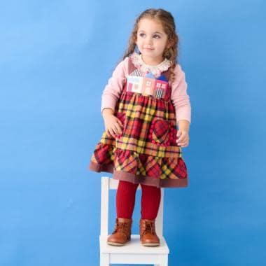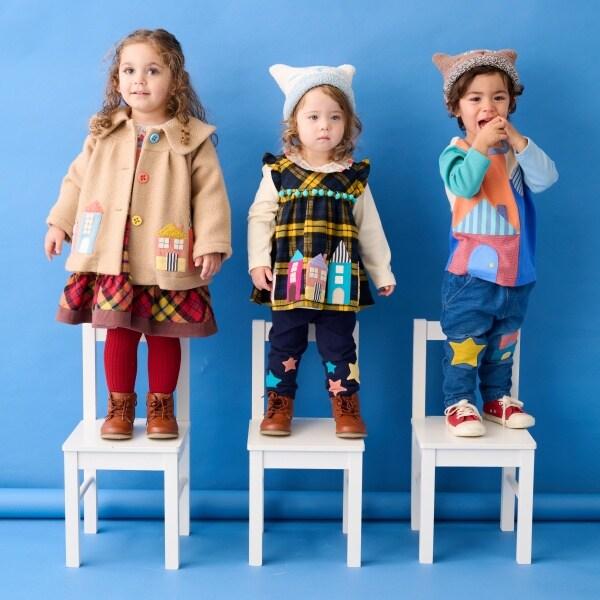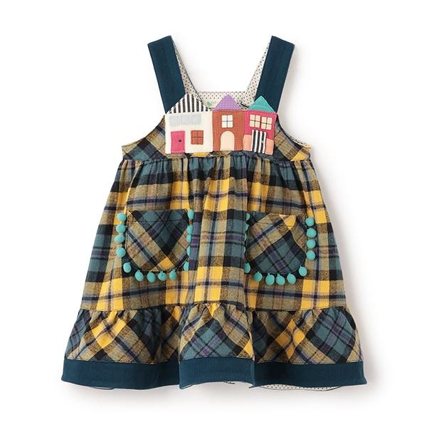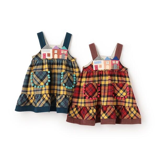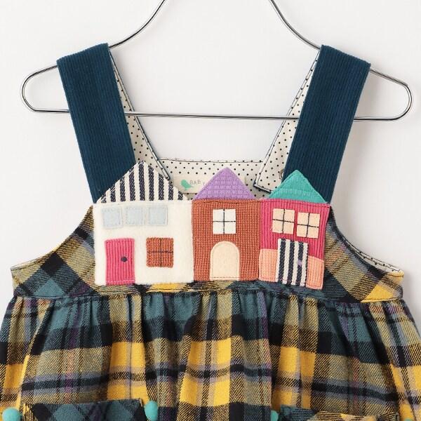 胸前一字排開的彩色房子設計獨特。