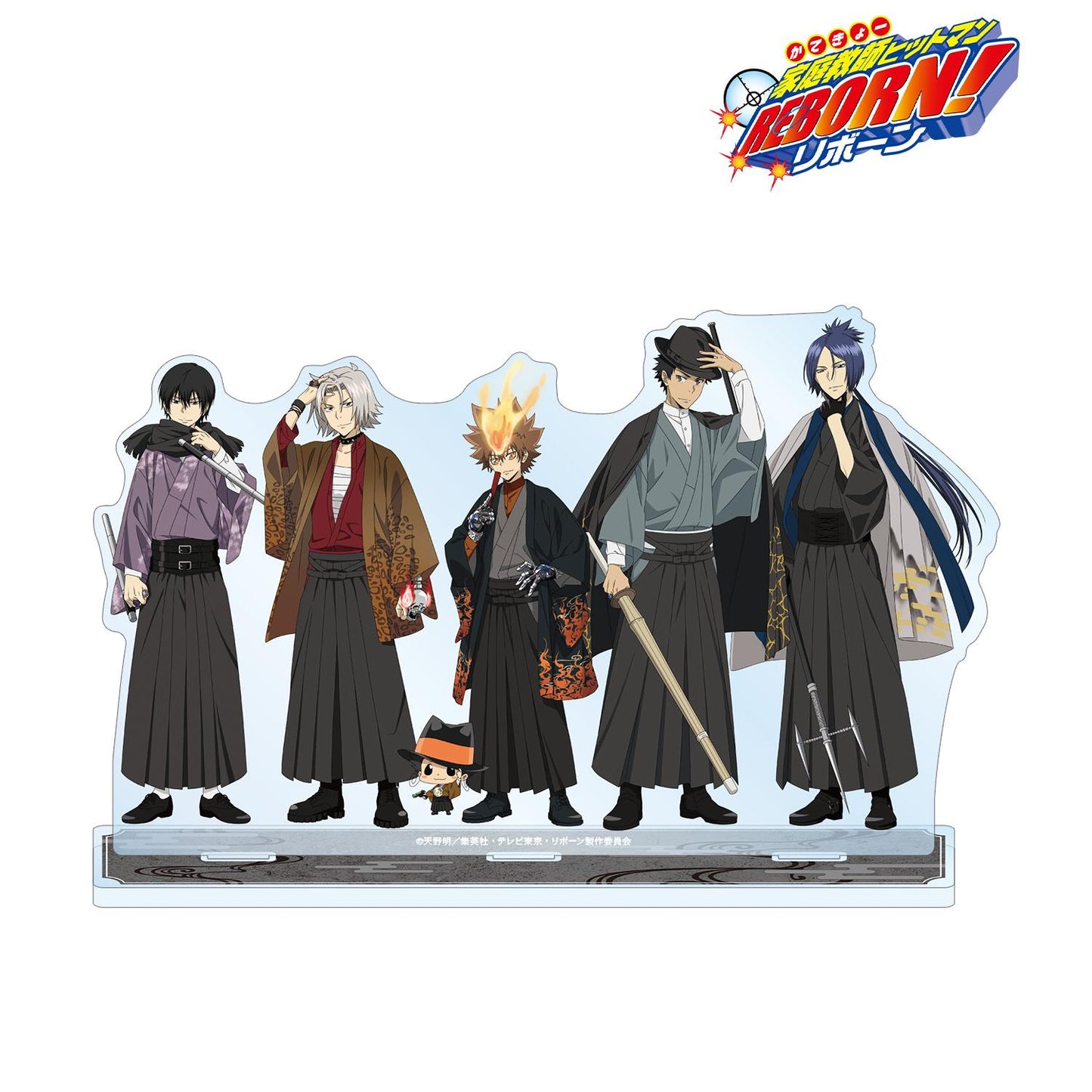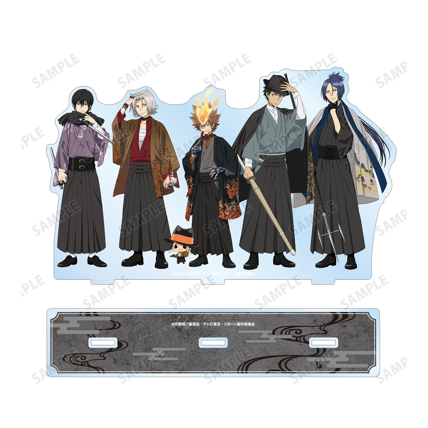澤田綱吉、Reborn、五寺隼人、山本武、日向京也和陸堂克卡(10 年後)的全新插圖人偶被製作成大型亞克力支架。