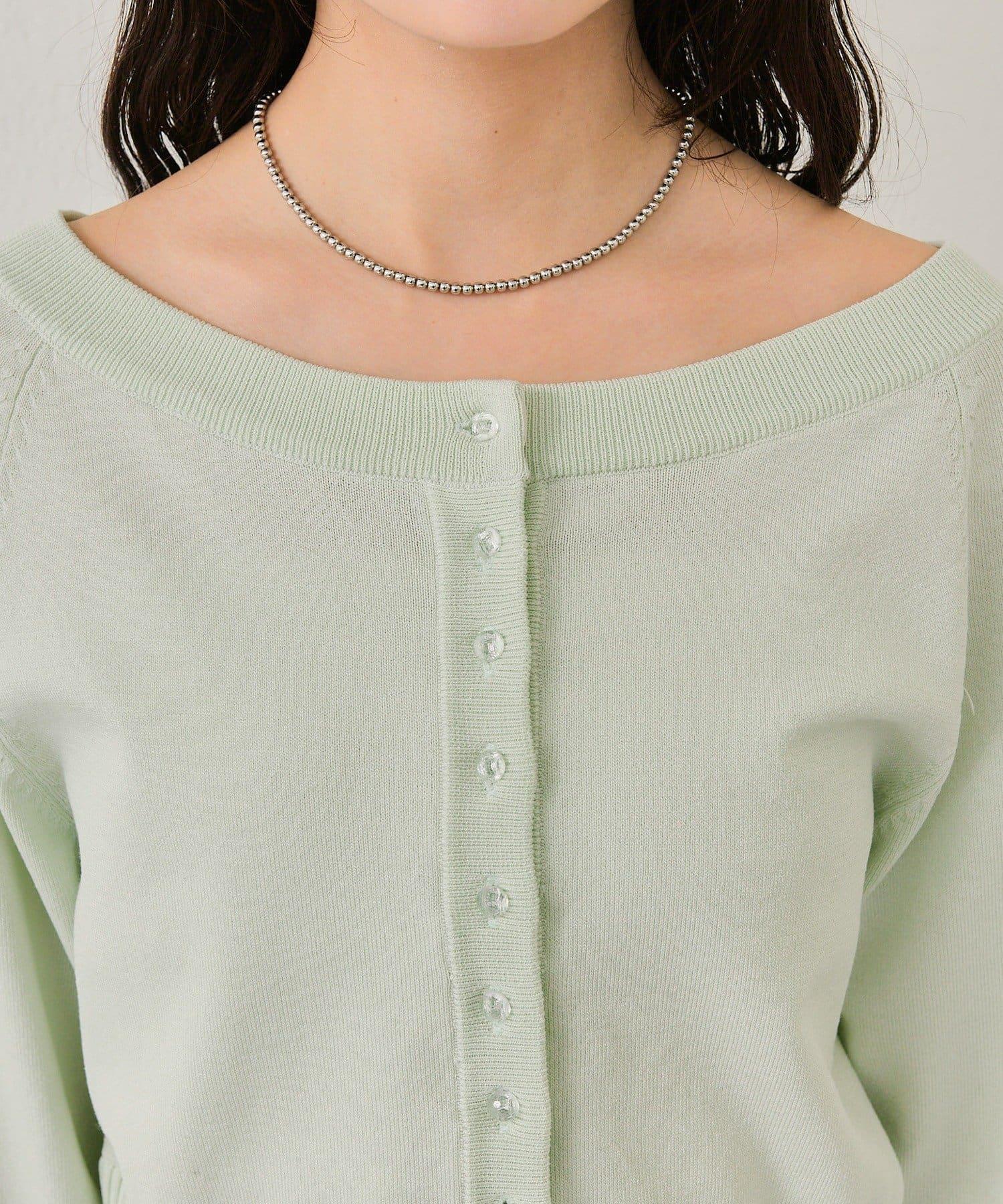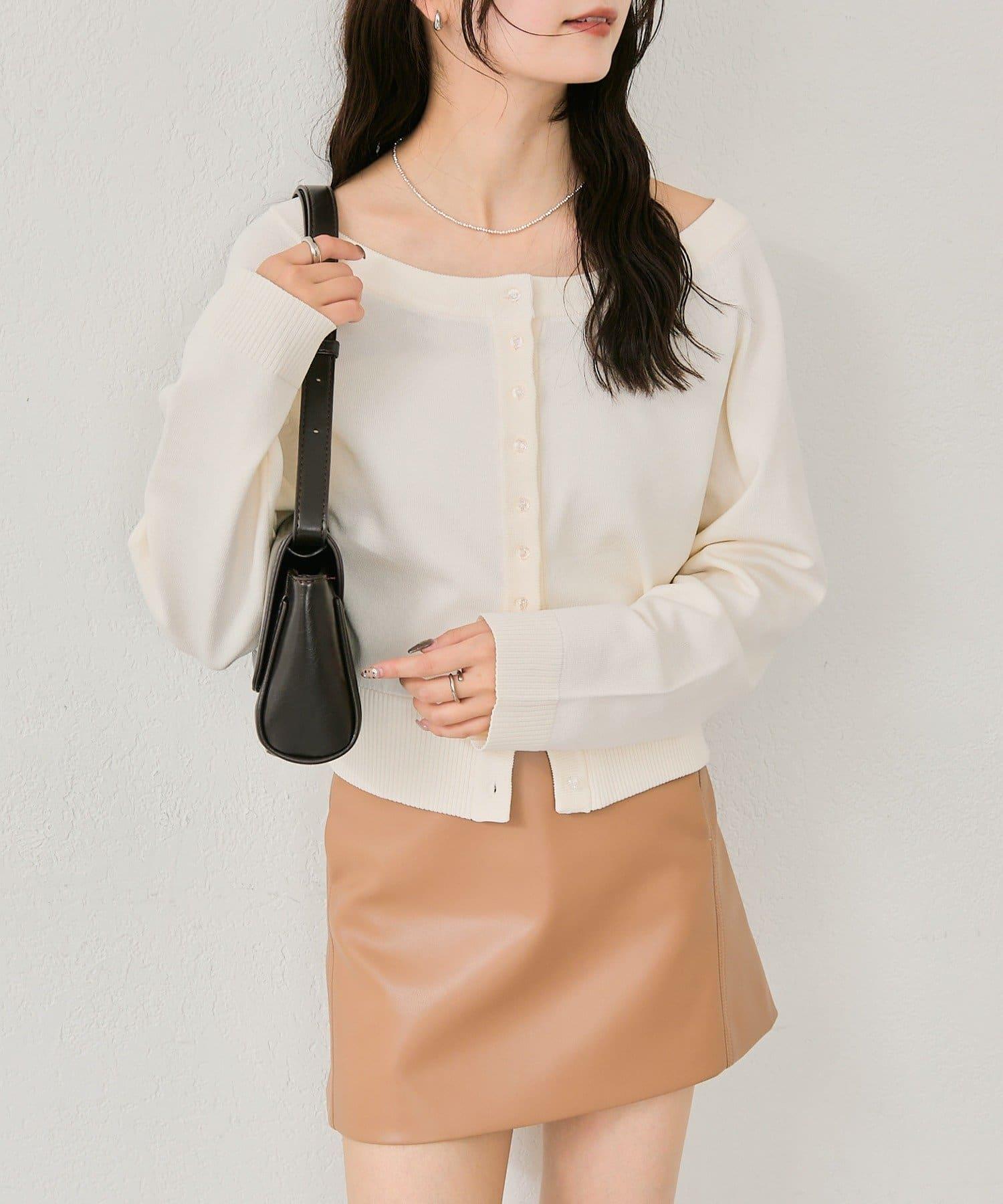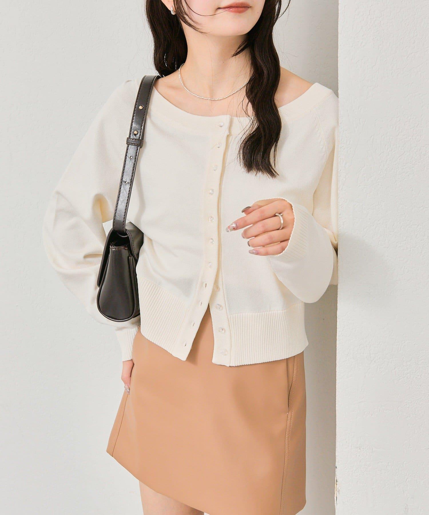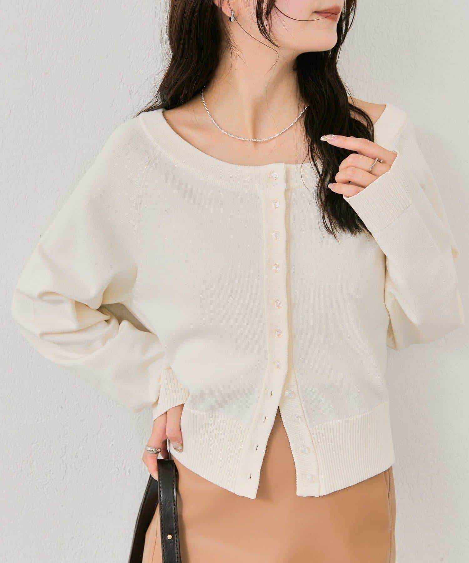 寬領設計的開襟羊毛衫,勾勒出優美的肩部線條。
