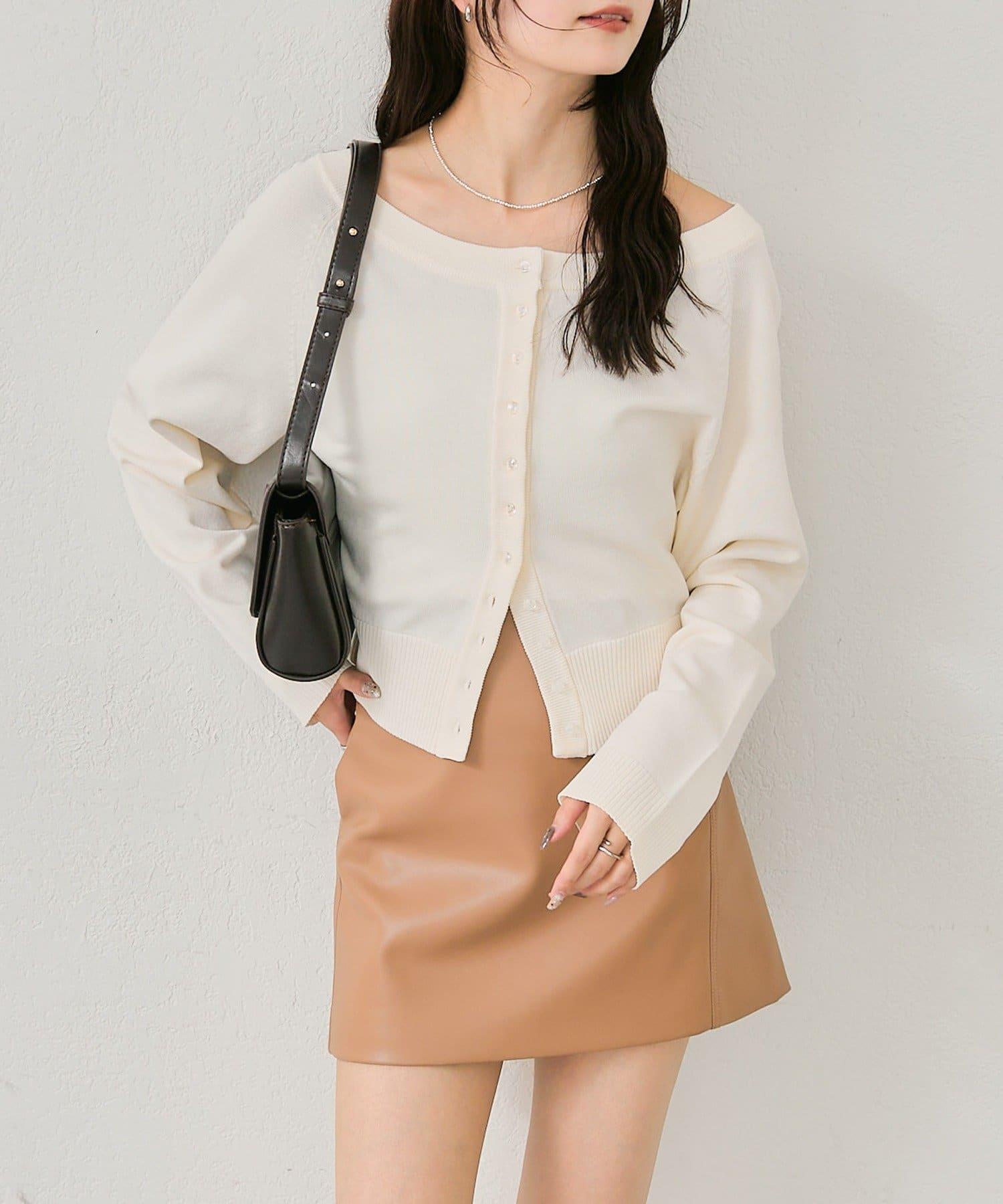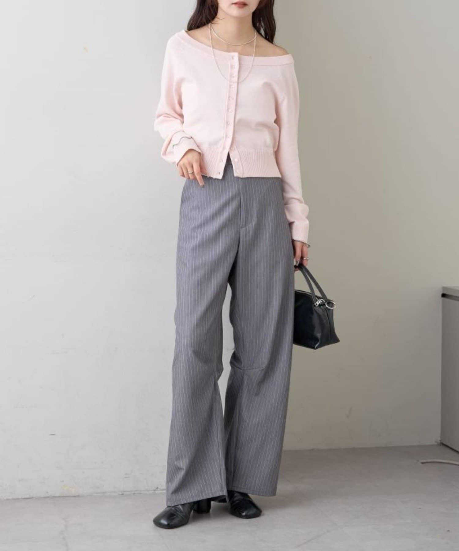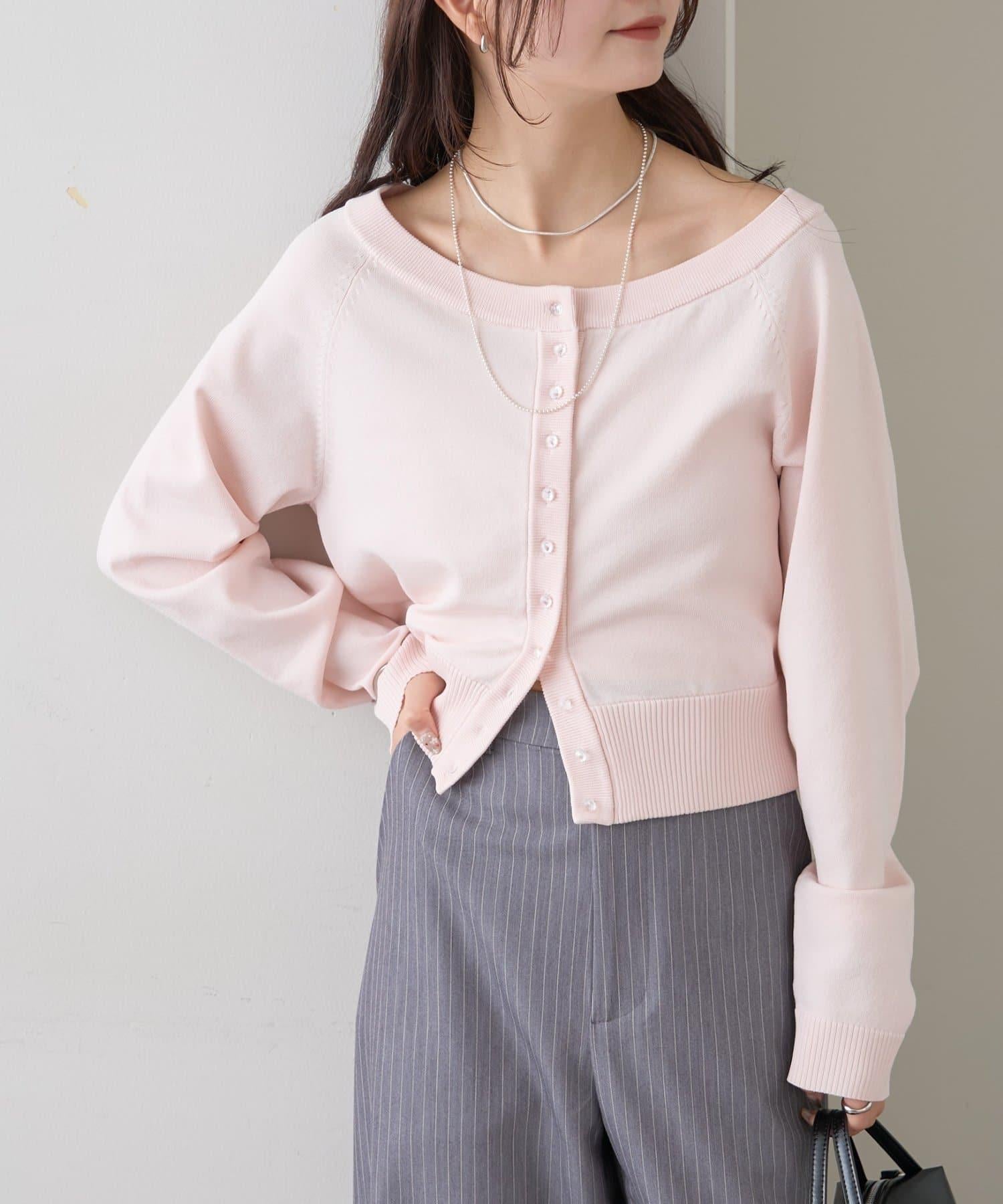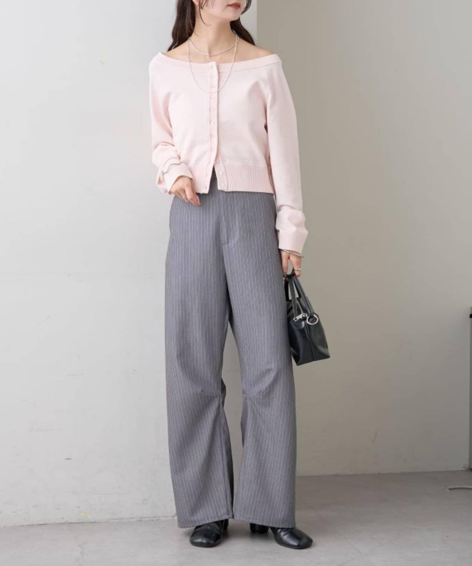 寬領設計的開襟羊毛衫,勾勒出優美的肩部線條。