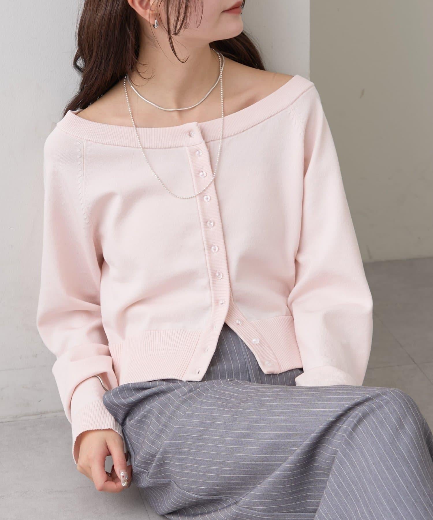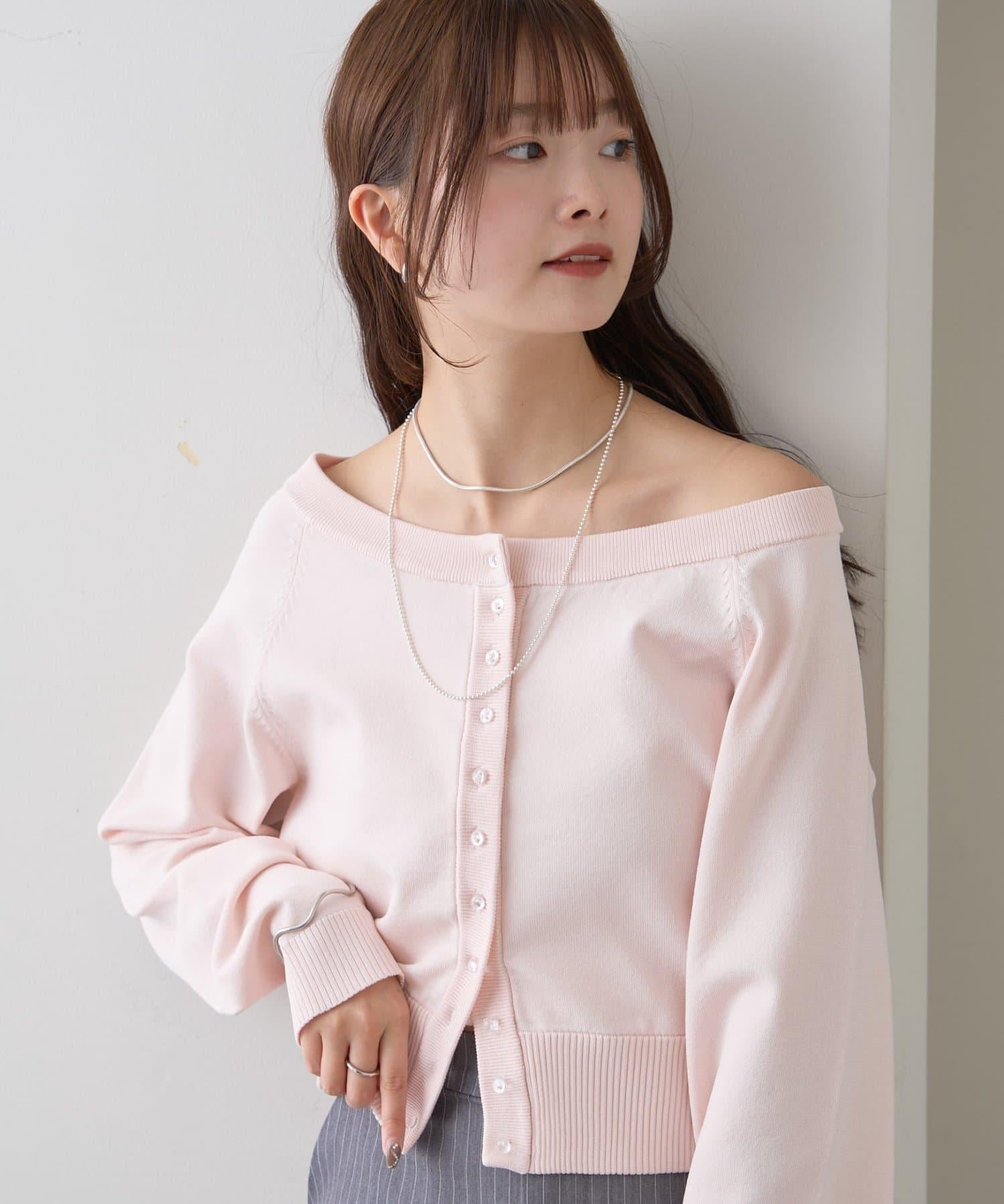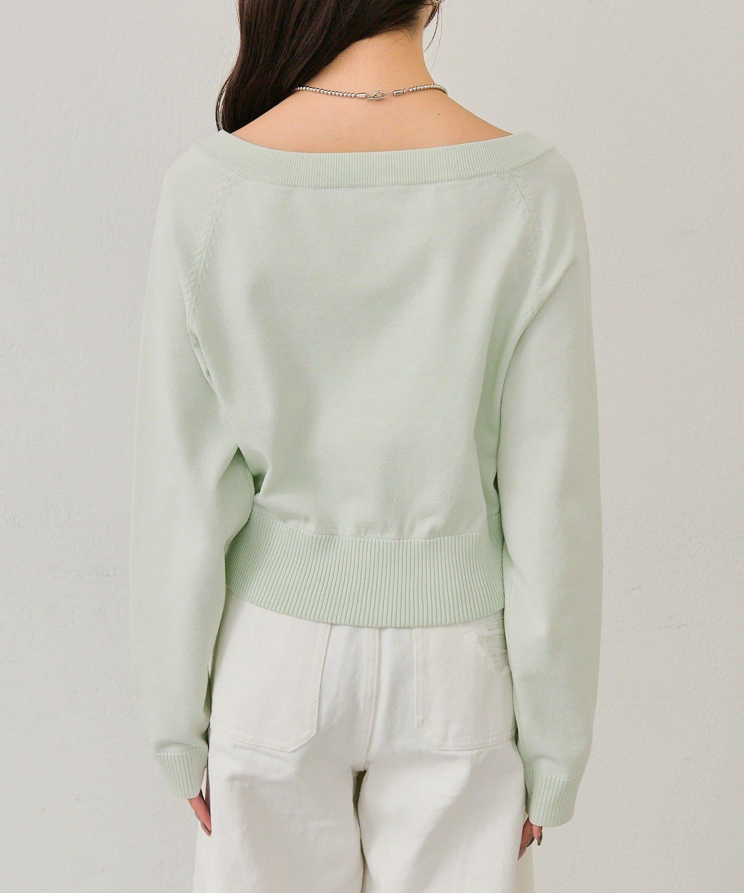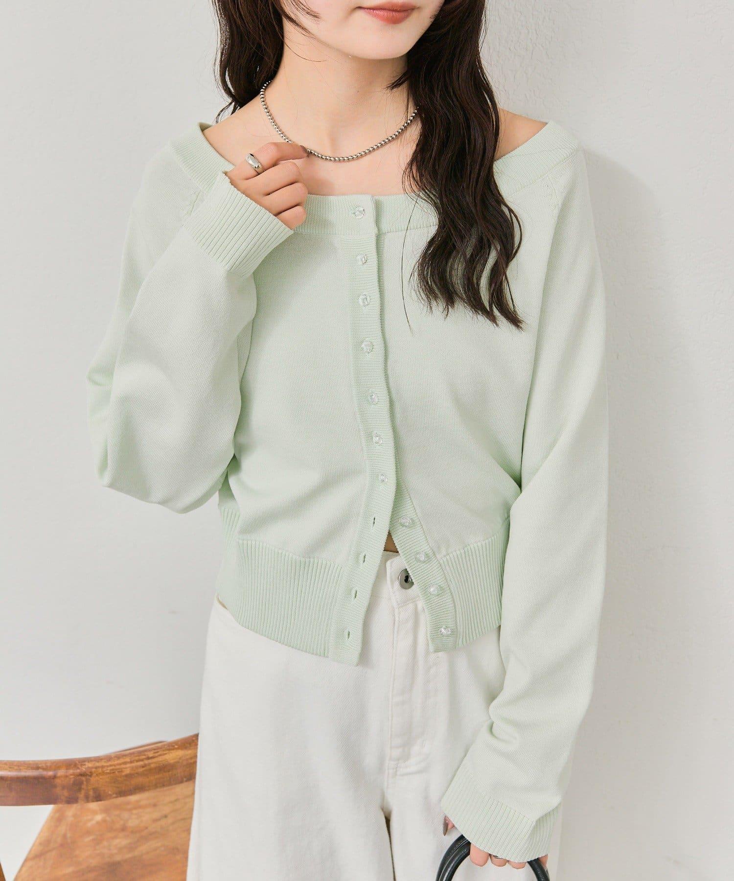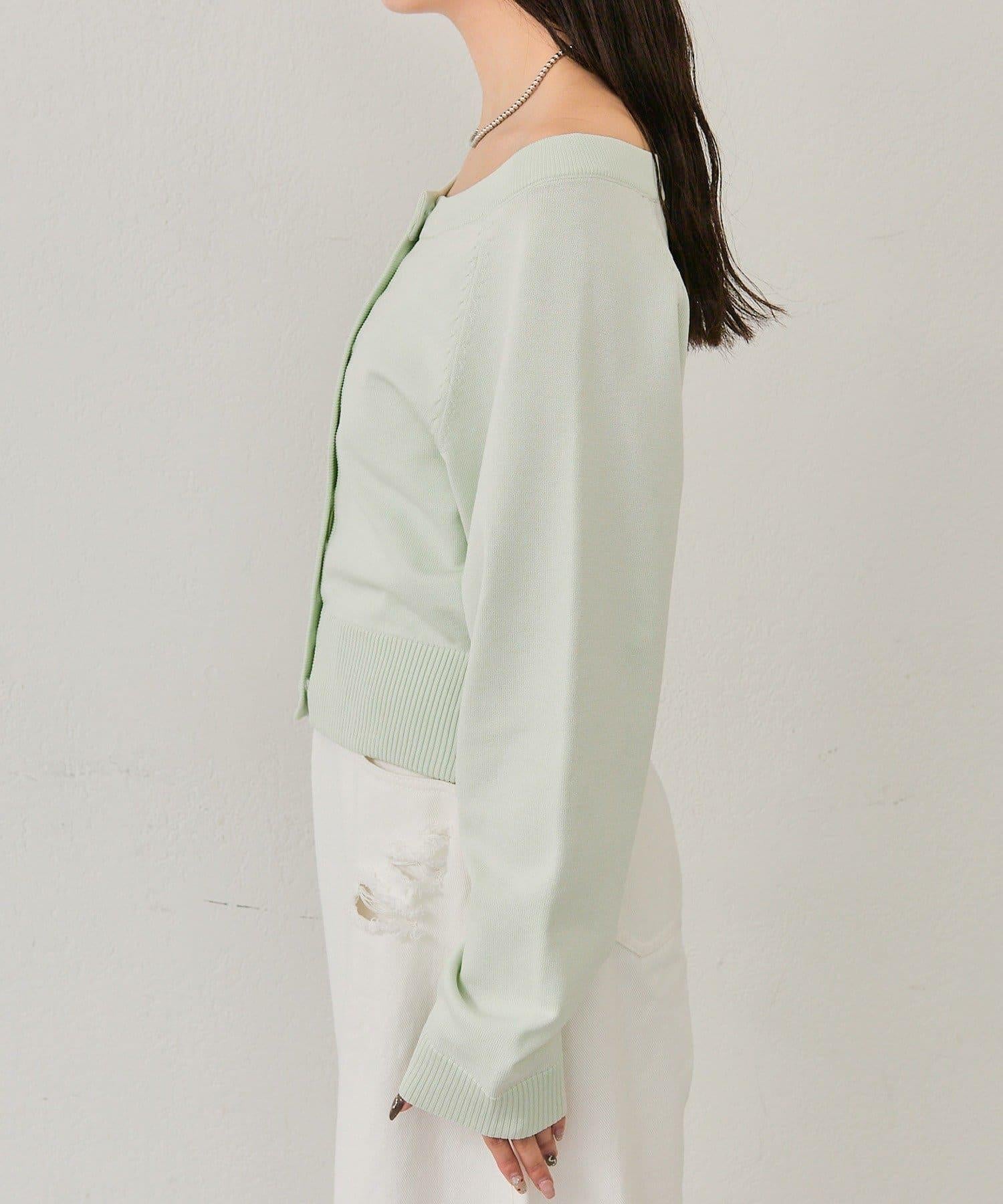 寬領設計的開襟羊毛衫,勾勒出優美的肩部線條。