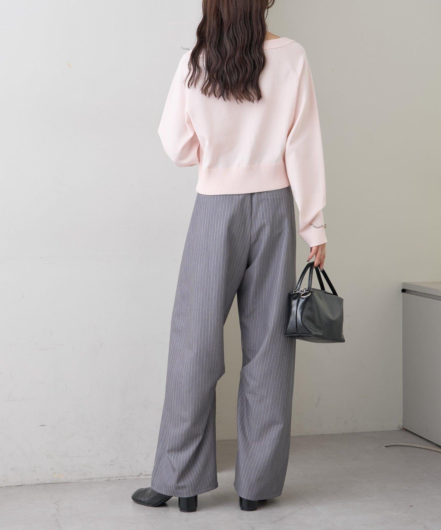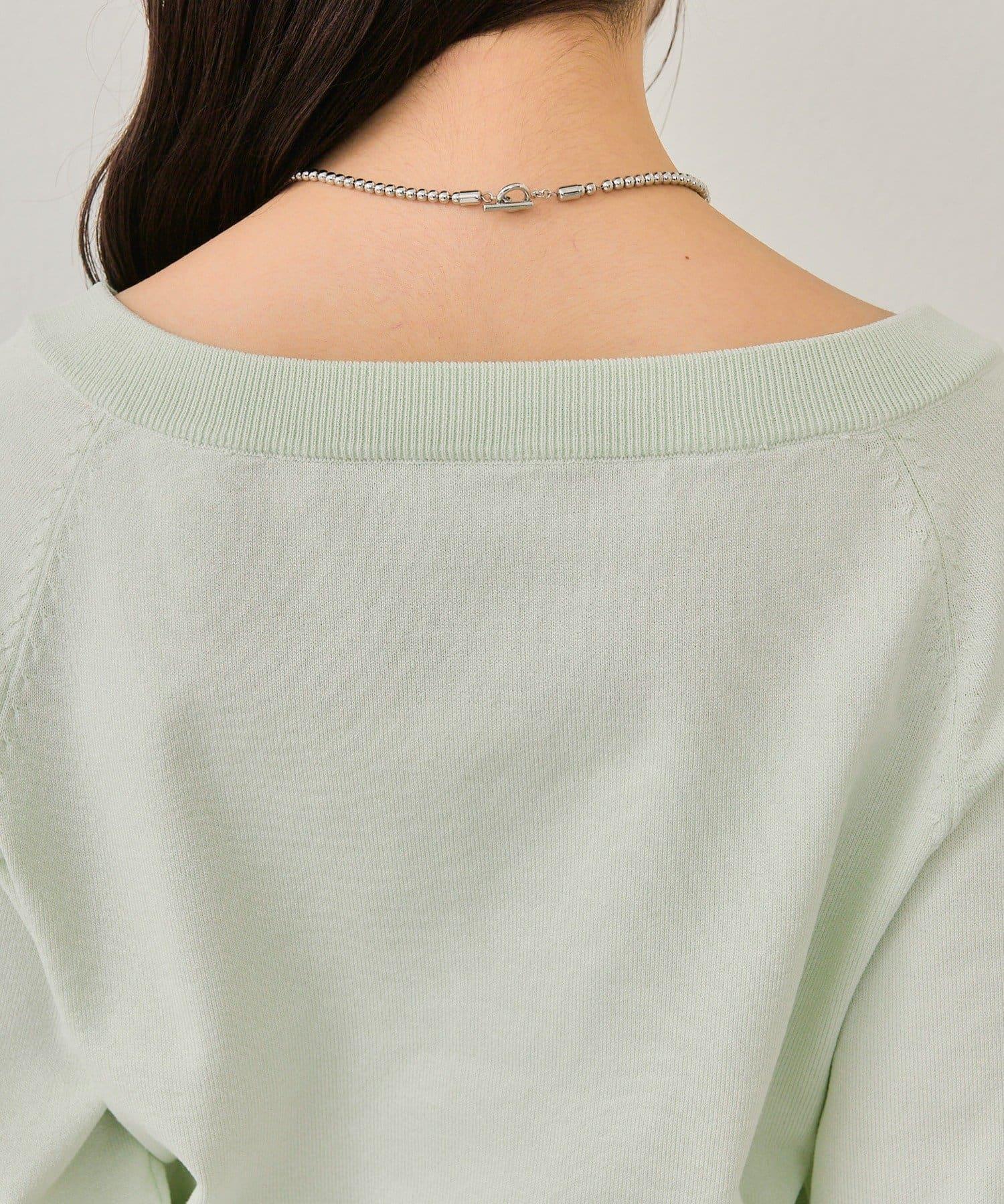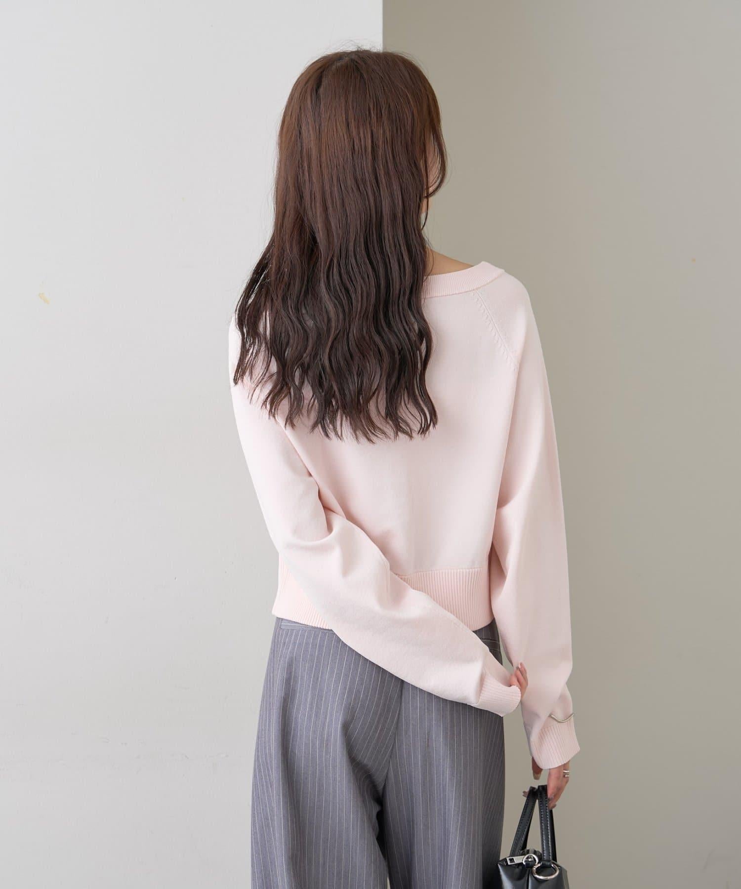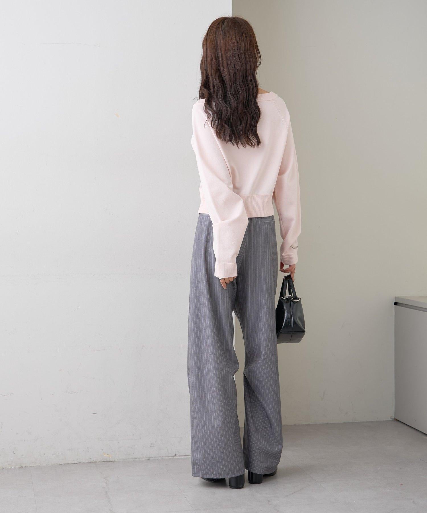 寬領設計的開襟羊毛衫,勾勒出優美的肩部線條。
