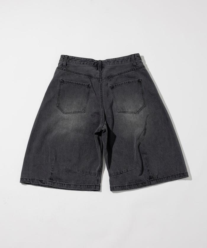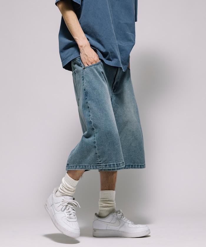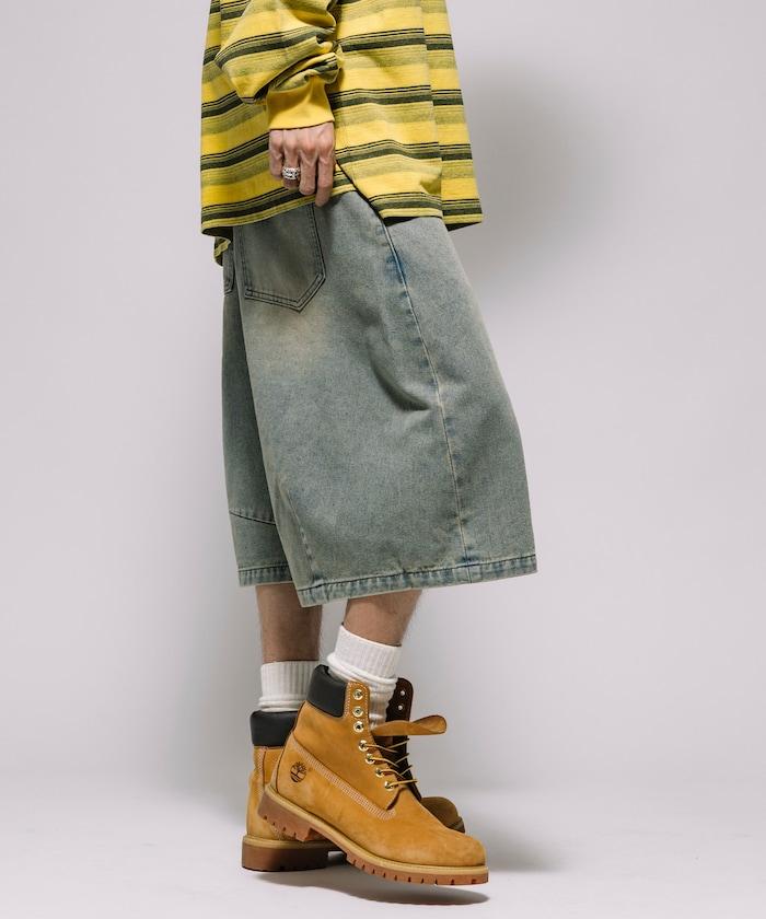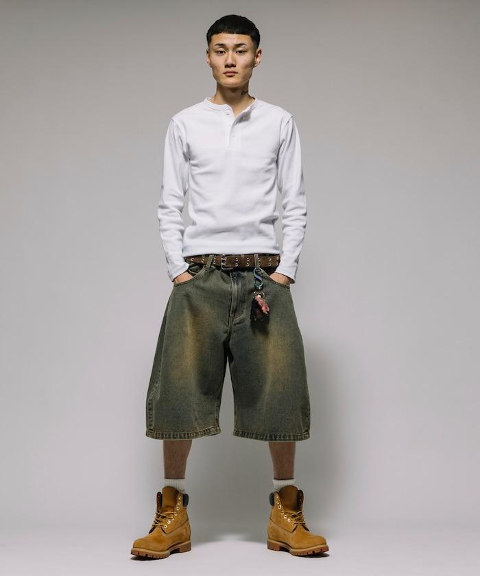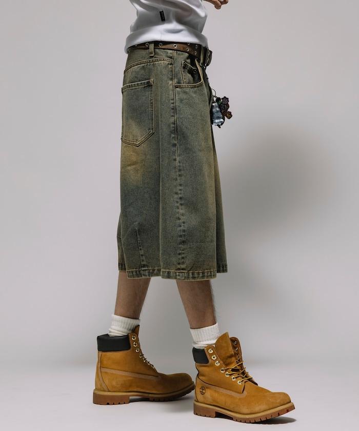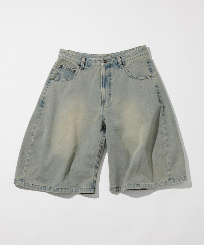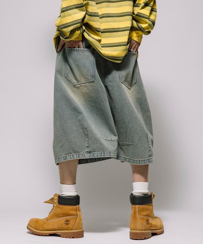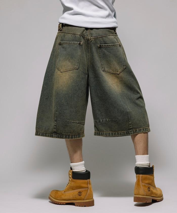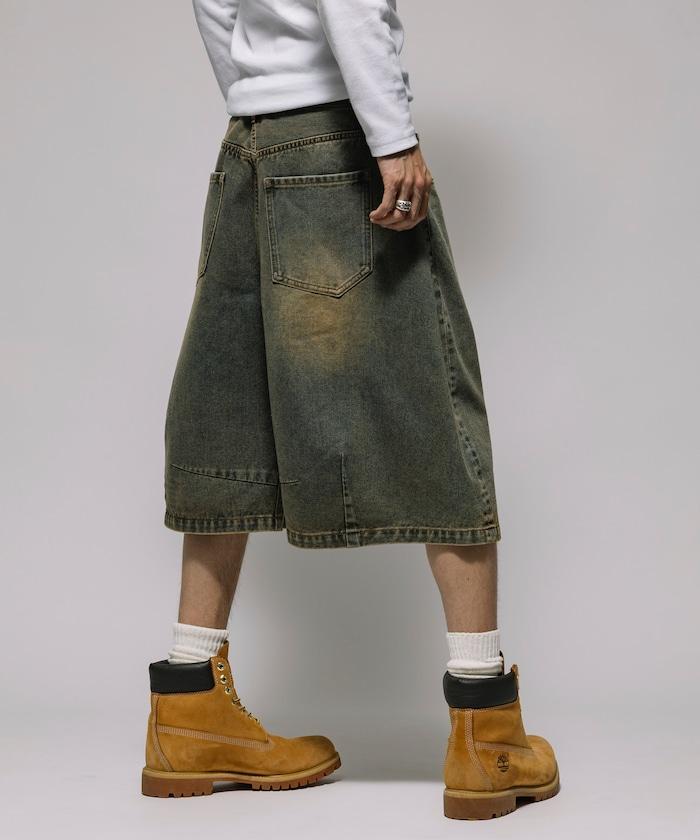 寬鬆剪裁 復古加工 曲線 牛仔褲 露腳 短褲