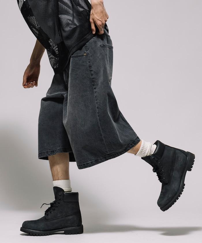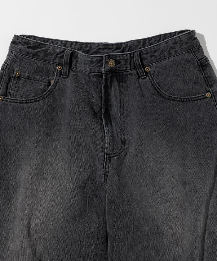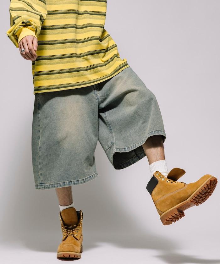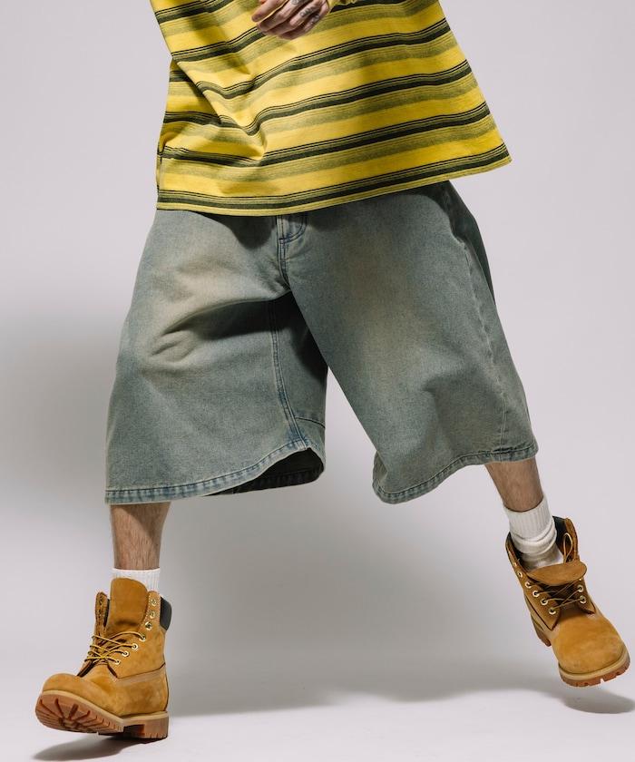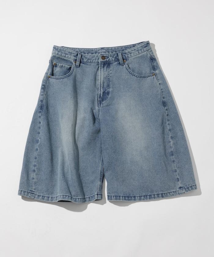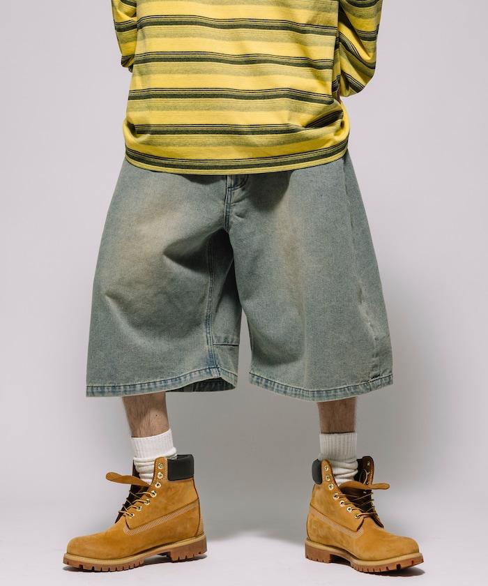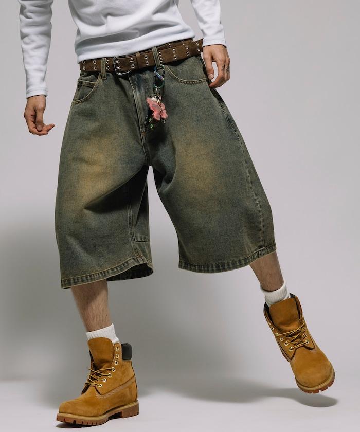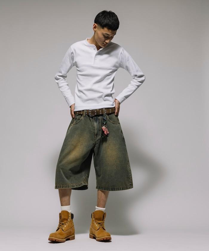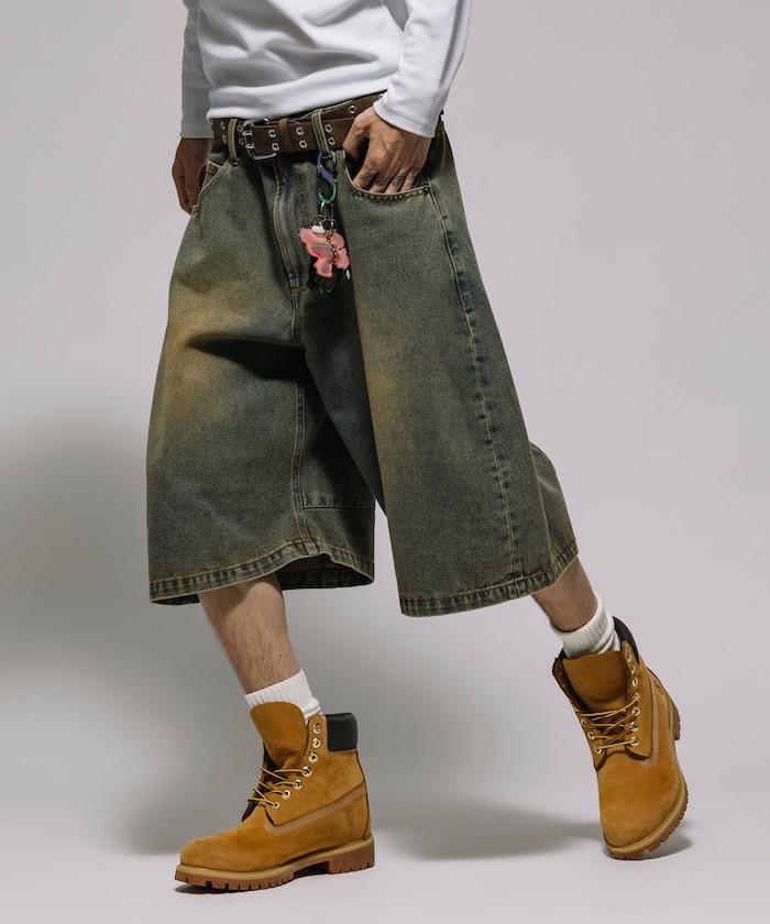 寬鬆剪裁 復古加工 曲線 牛仔褲 露腳 短褲