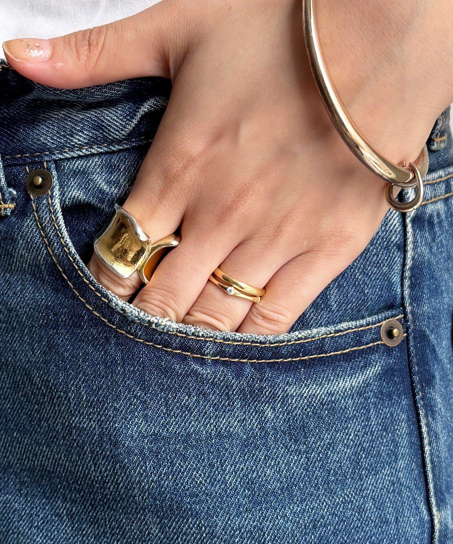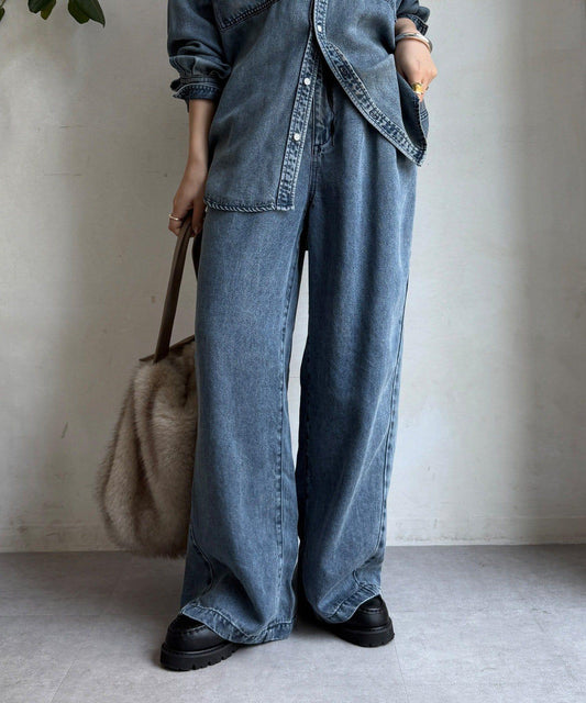 兩款色彩搭配不同的表面處理--帶有破損表面的粗獷藍色和看起來更漂亮一些的靛藍色硬質牛仔布--即使是相同的輪廓,也會給人完全不同的印象。