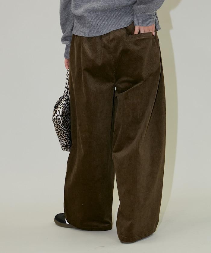 經典燈芯絨面料寬鬆長褲,穿著舒適。腰部採用鬆緊帶和抽繩設計,可調節鬆緊度,使穿著更加寬鬆。