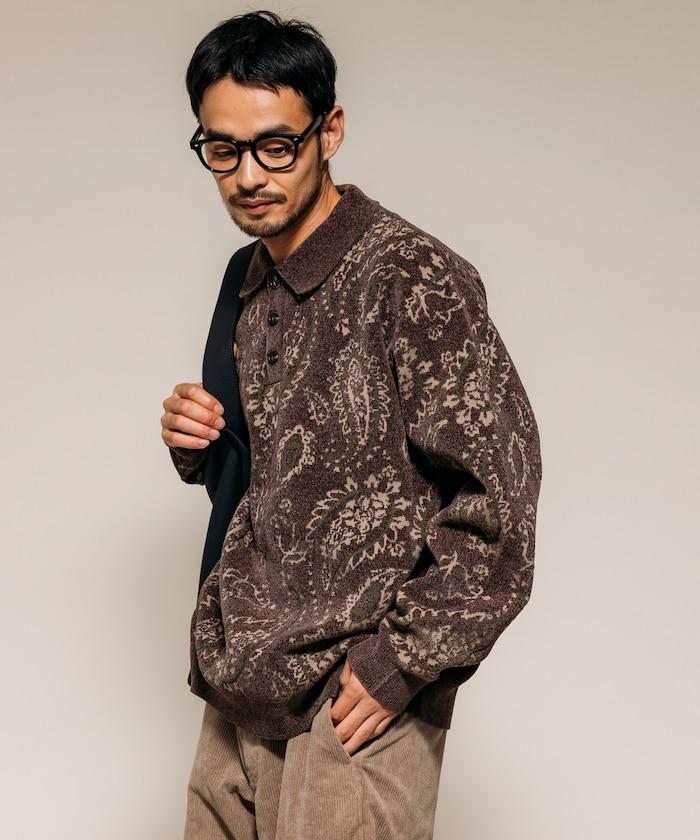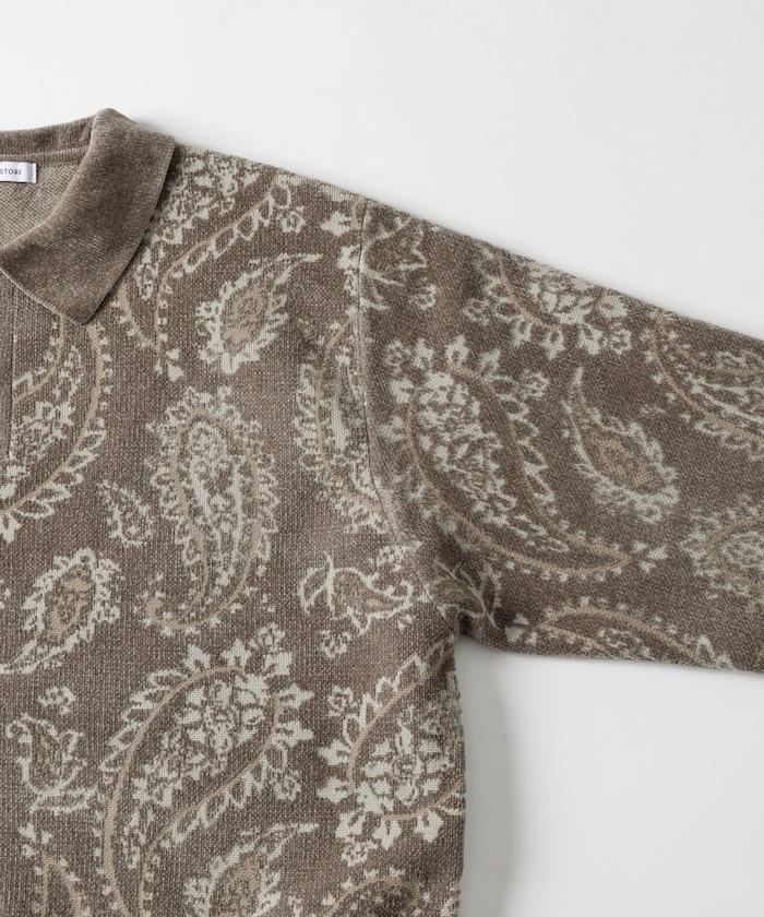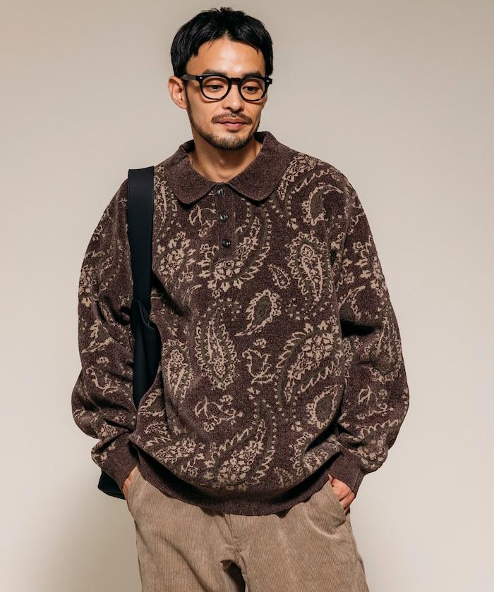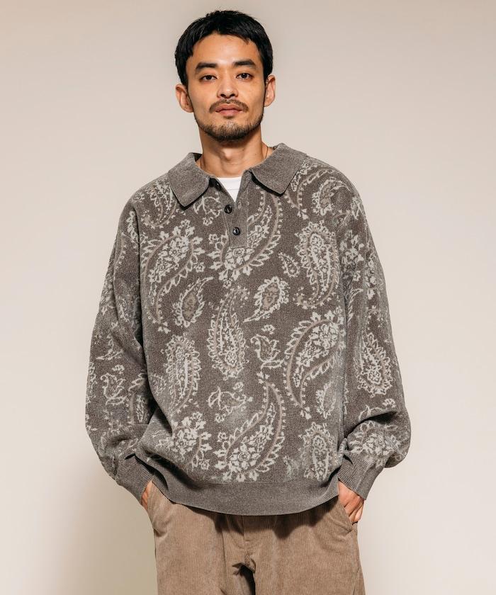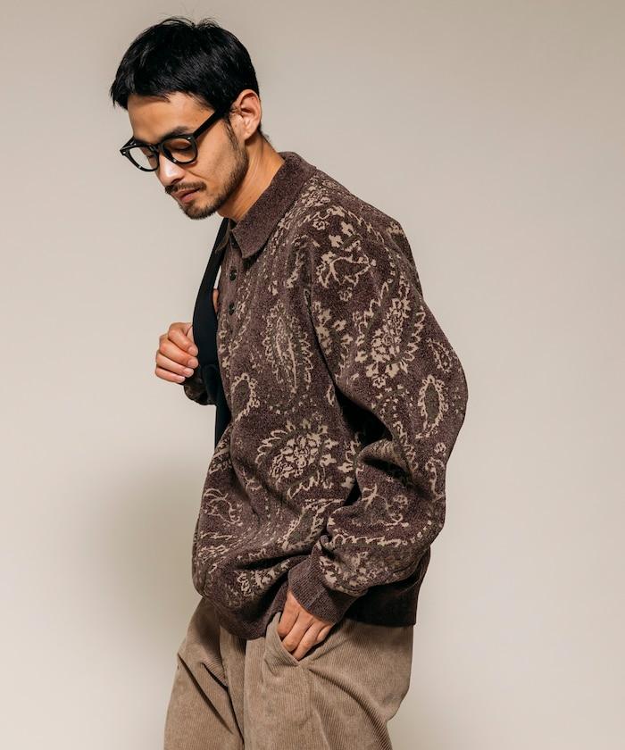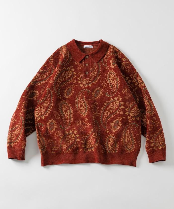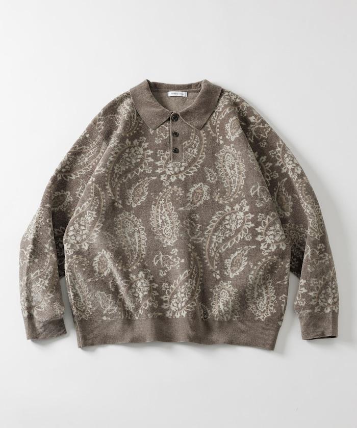 寬鬆版型佩斯利滿印毛圈紗針織POLO衫