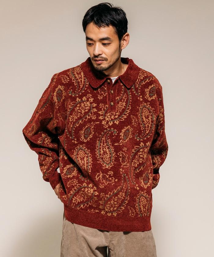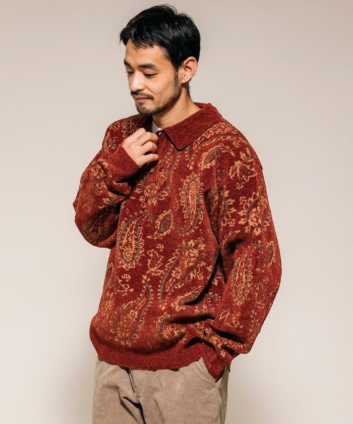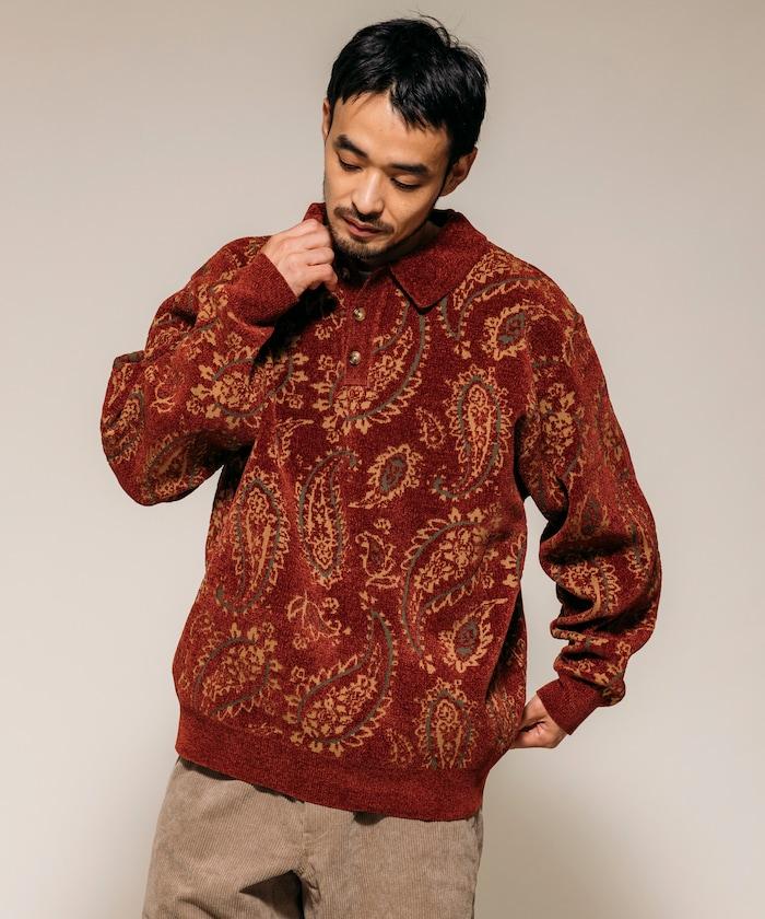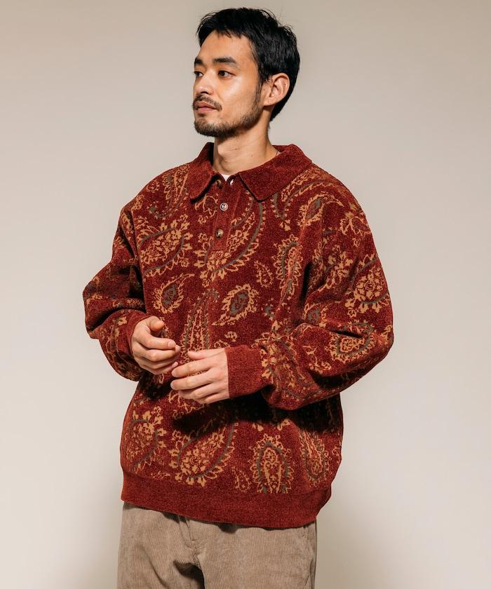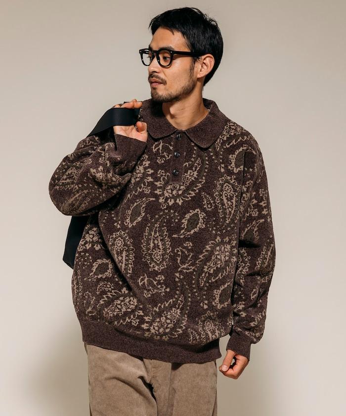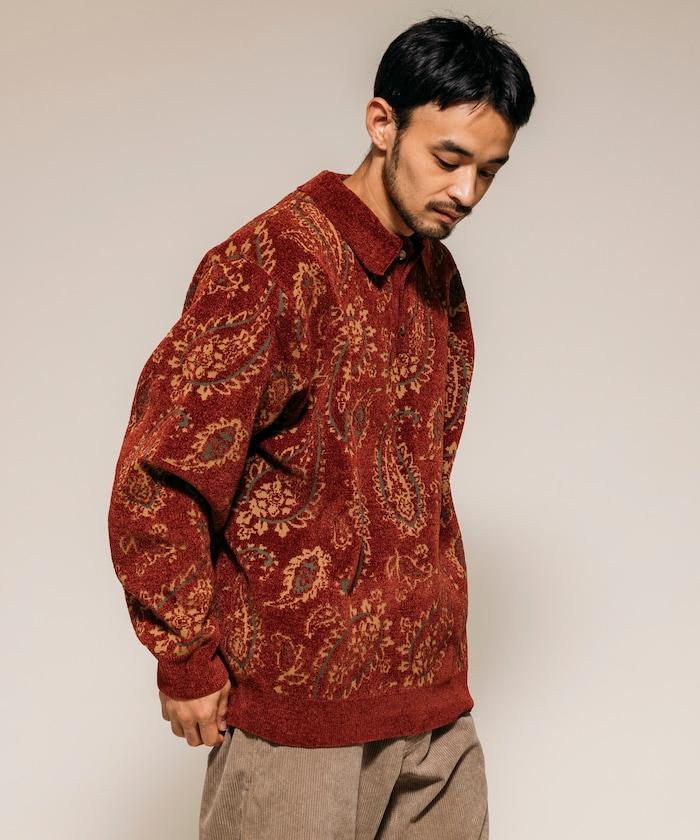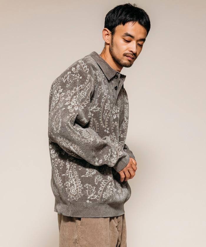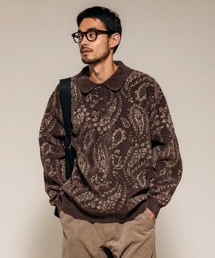 寬鬆版型佩斯利滿印毛圈紗針織POLO衫
