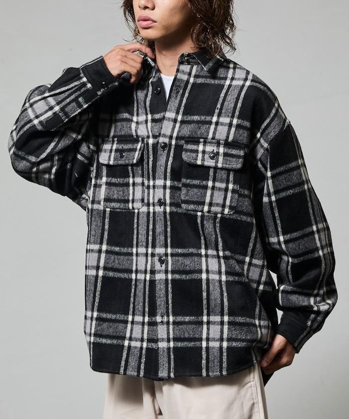 寬鬆版型厚重法蘭絨格紋襯衫