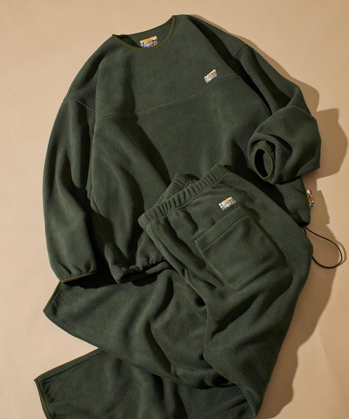 寬鬆版型單點標誌抽繩抓絨套裝圓領套頭衫長褲套裝