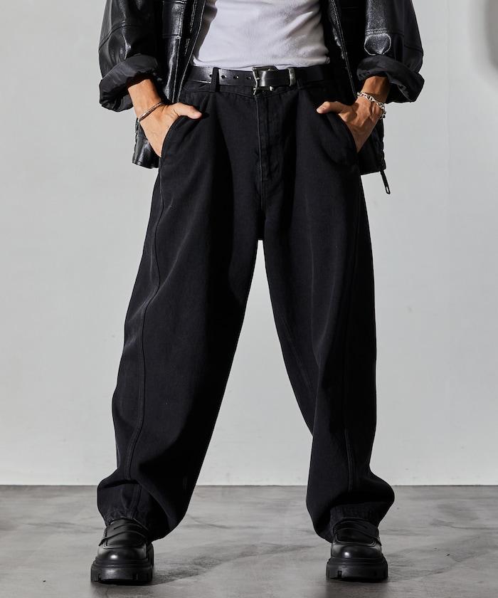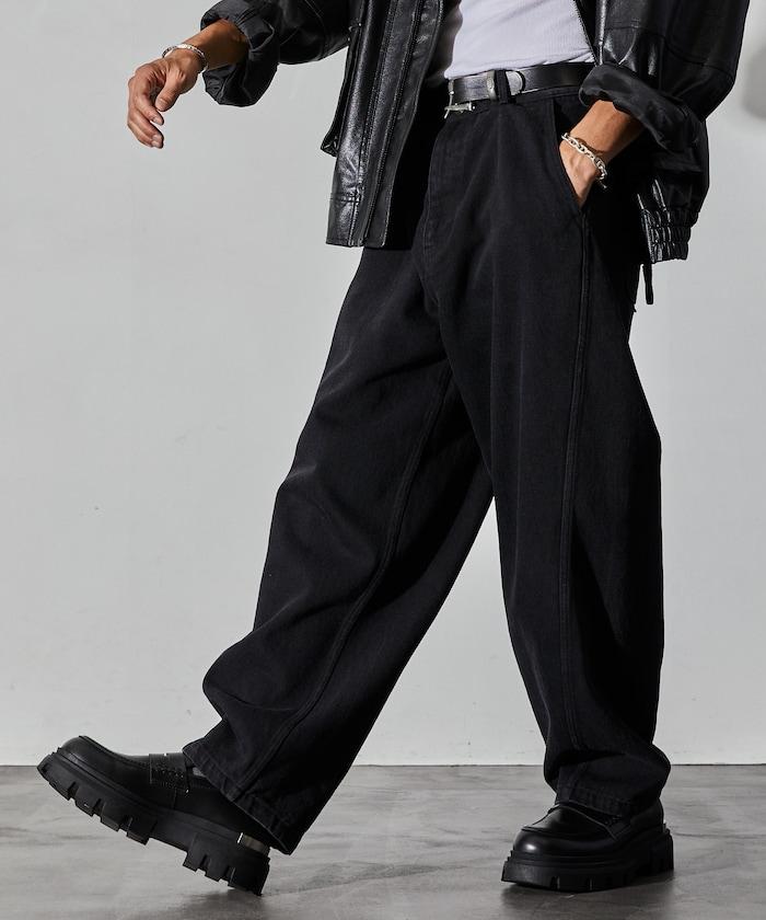 從側面到底部的捲曲縫線賦予了褲子立體的輪廓。