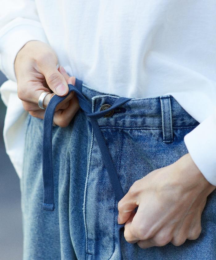 後口袋上有加工留下的名字印記,具有復古牛仔褲的外觀和觸感。