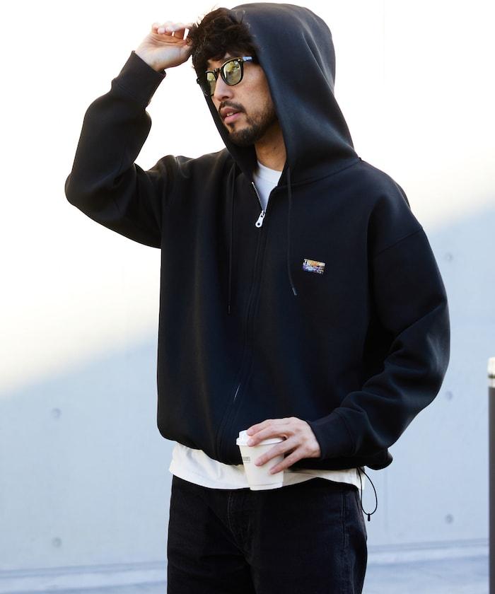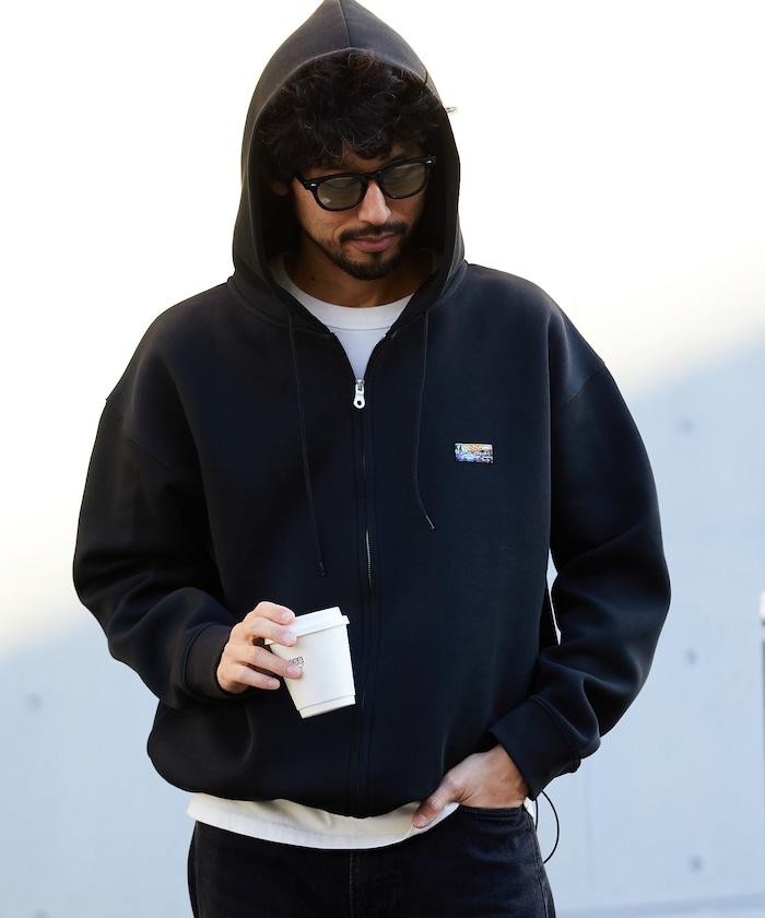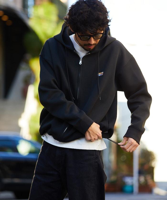 寬鬆版型抽繩針織面料單點logo拉鍊連帽衛衣
