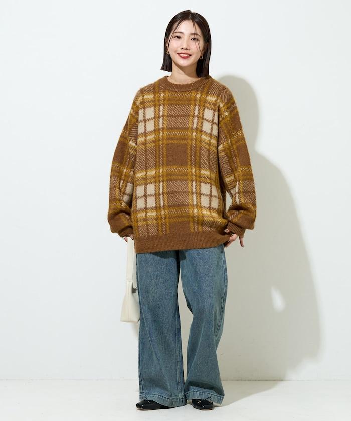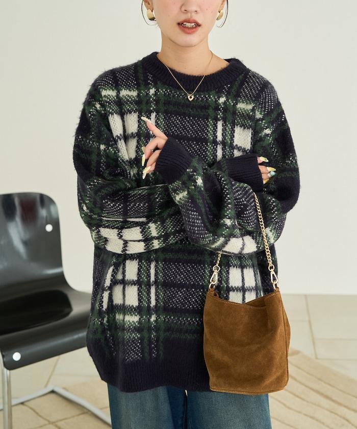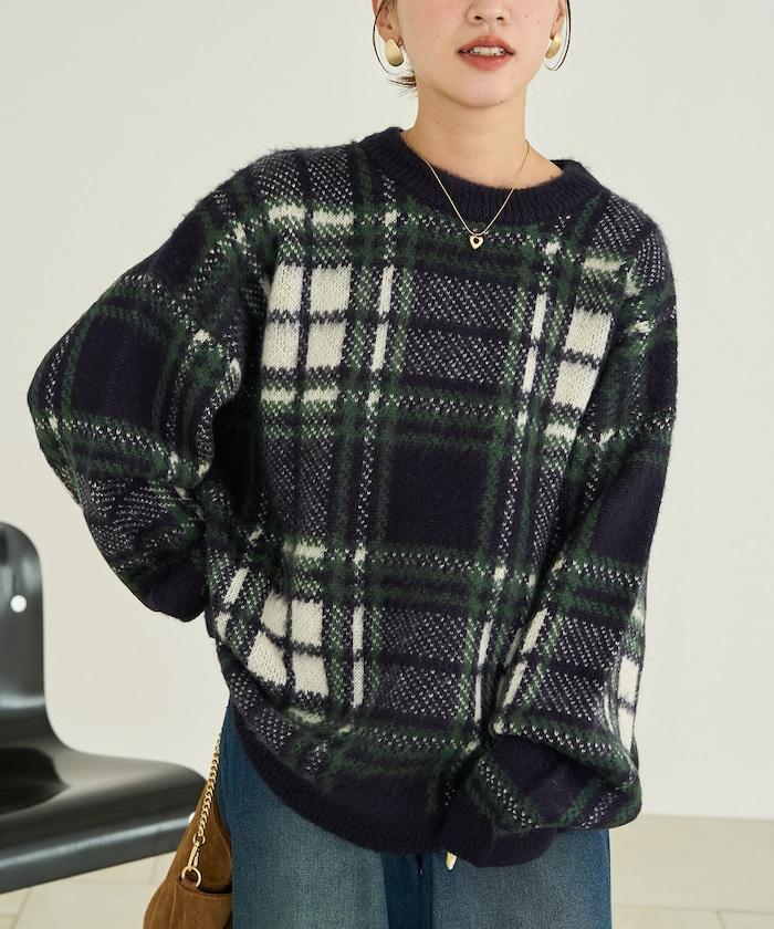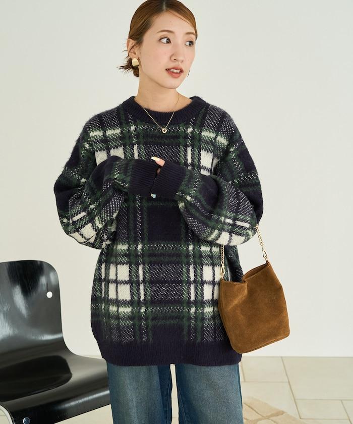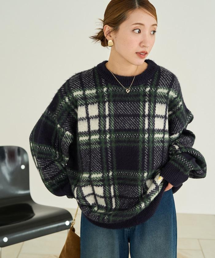 大格紋圖案的可愛針織衫將成為您的搭配明星。