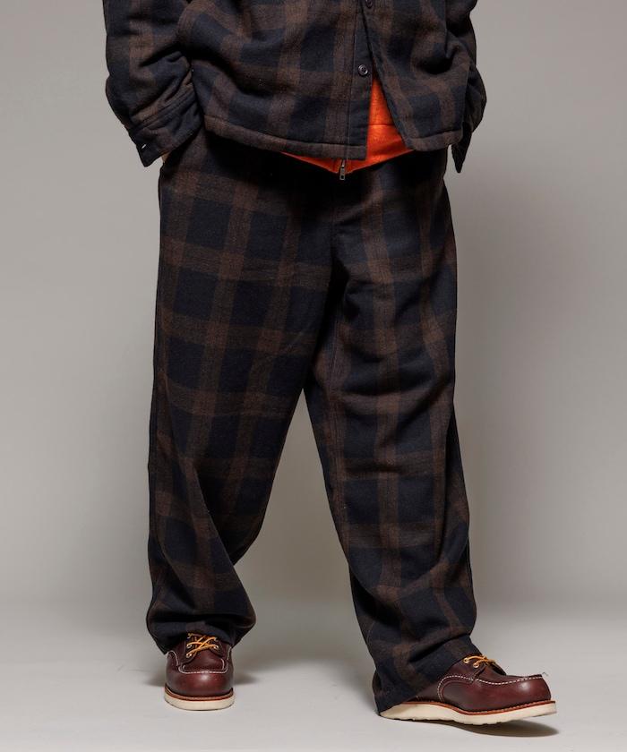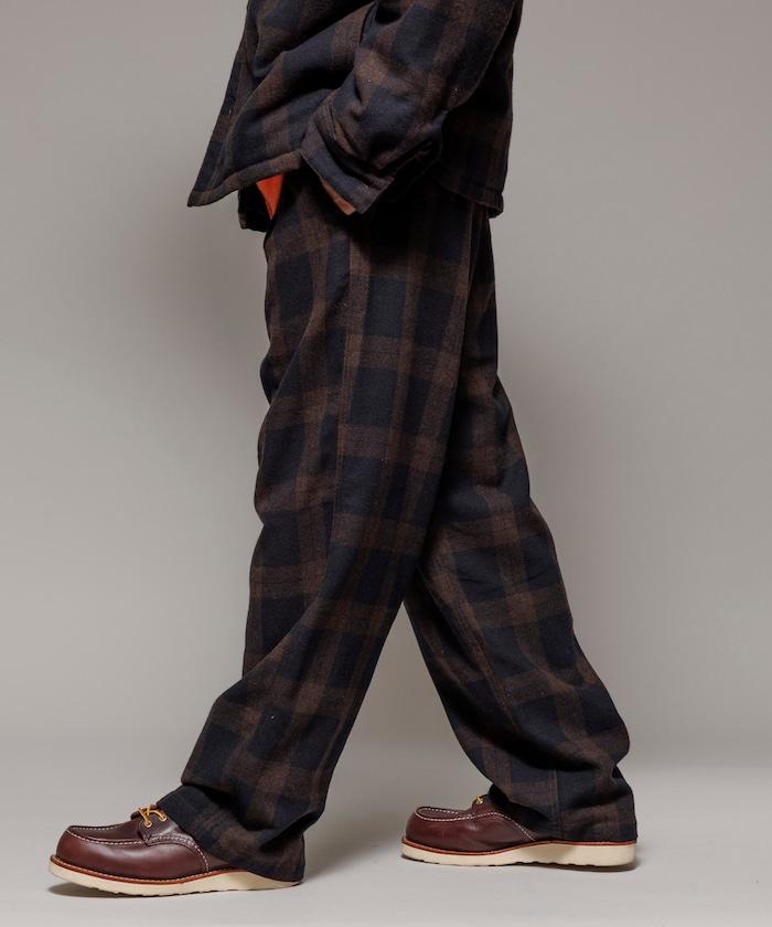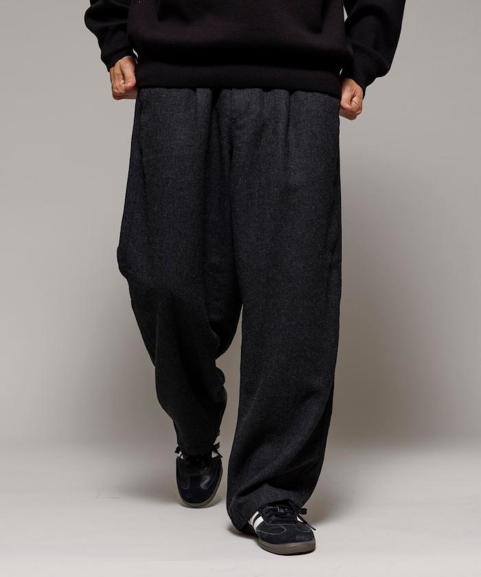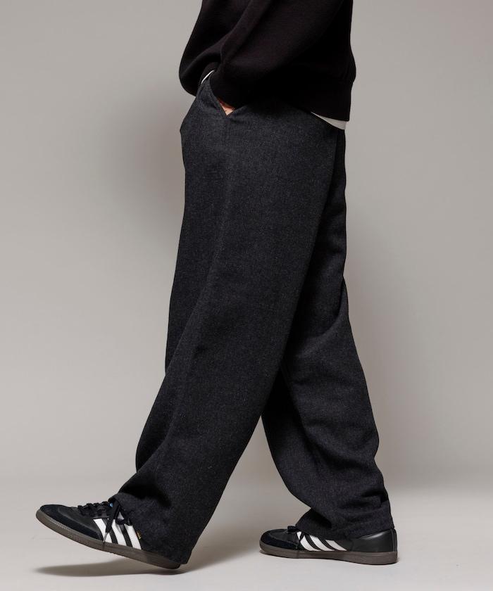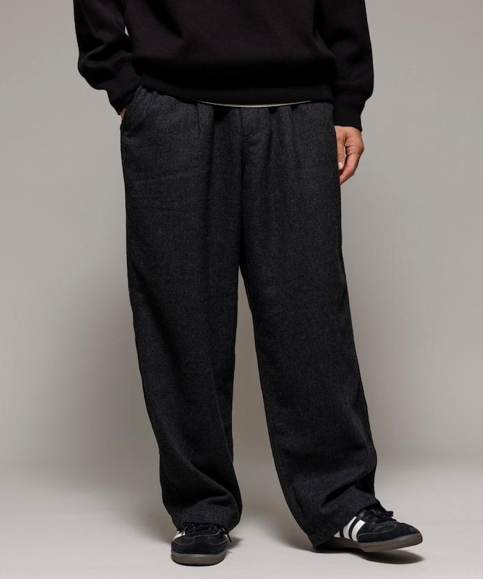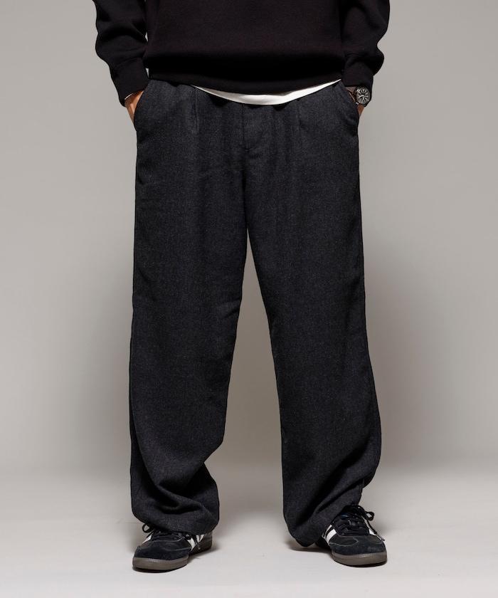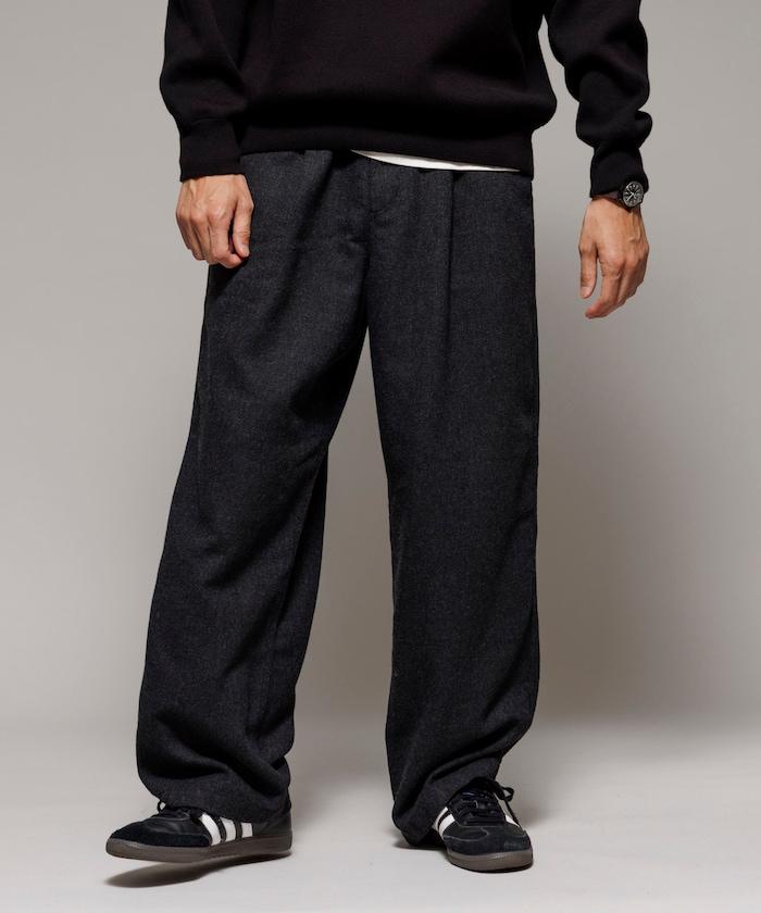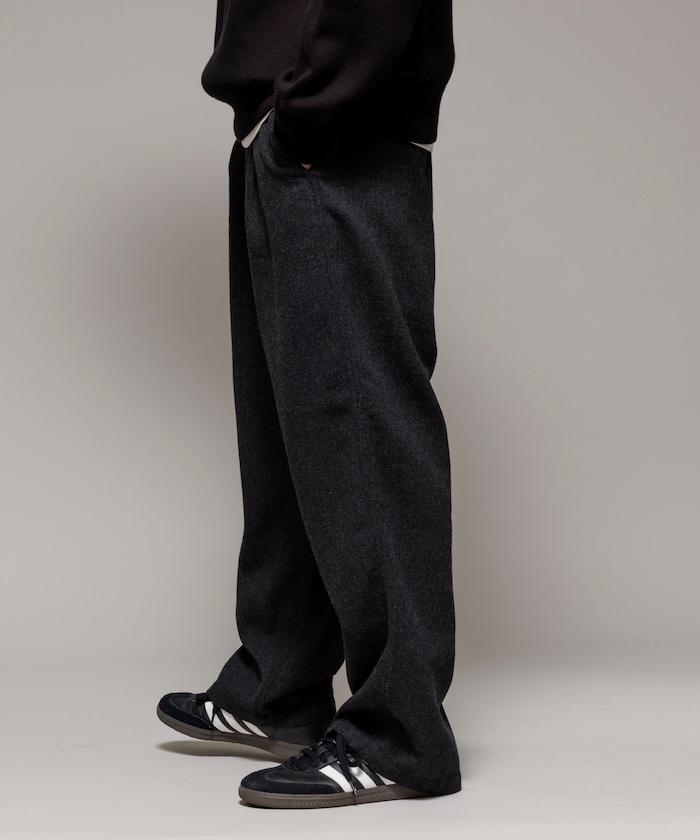 寬鬆版型水洗羊毛混紡法蘭絨長褲