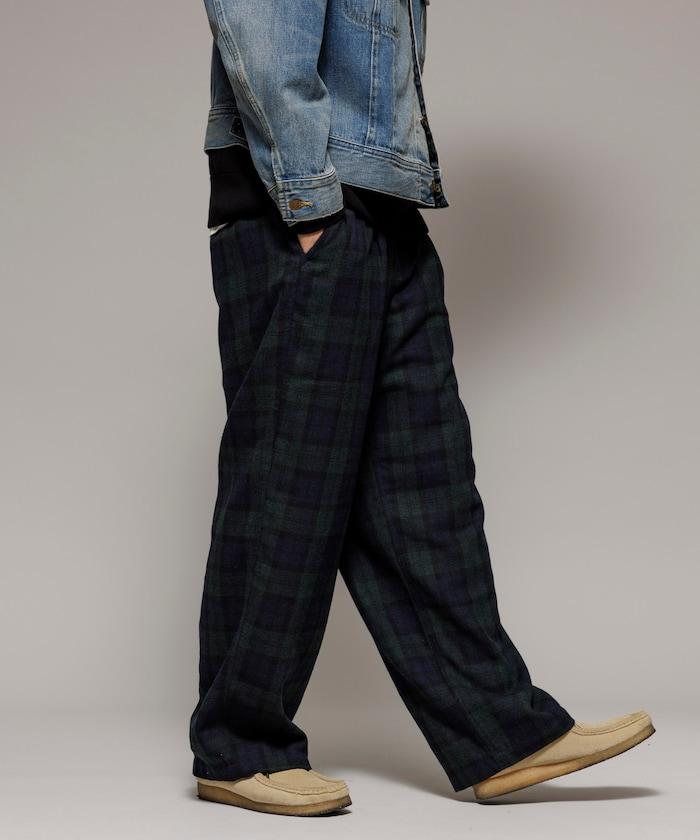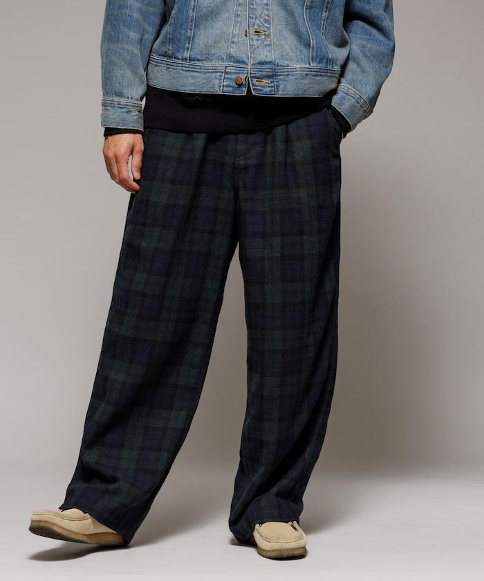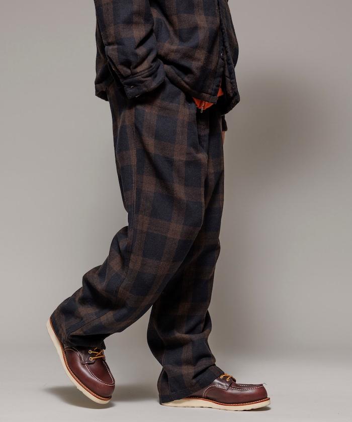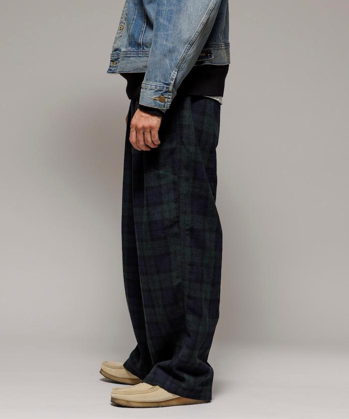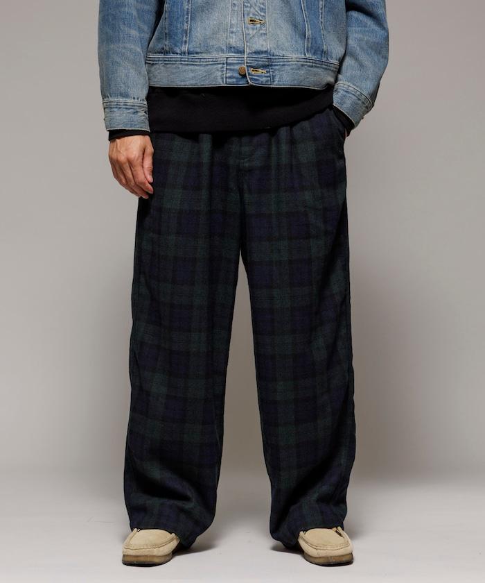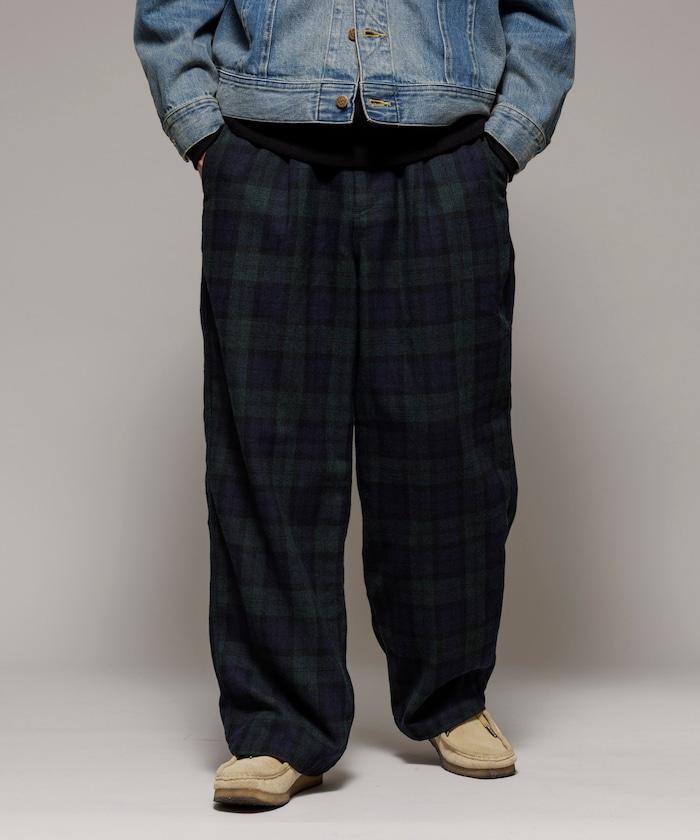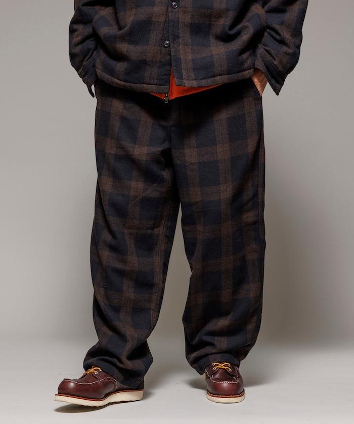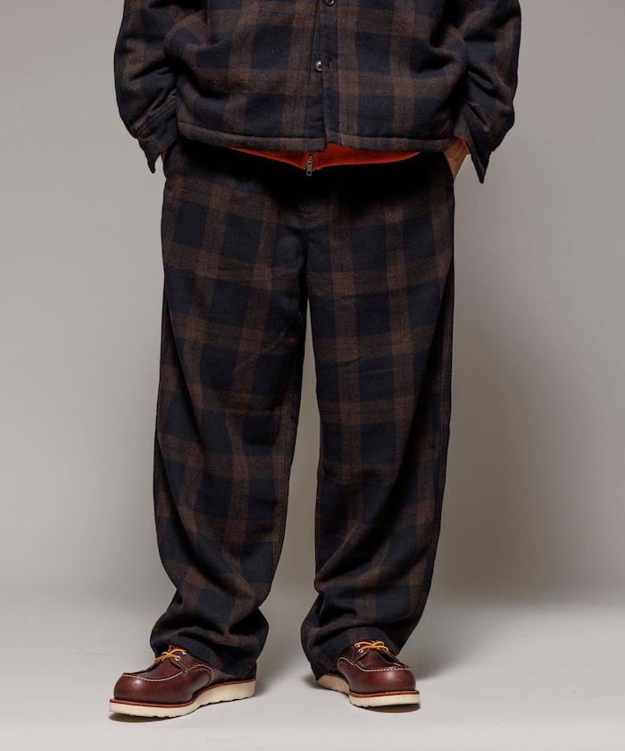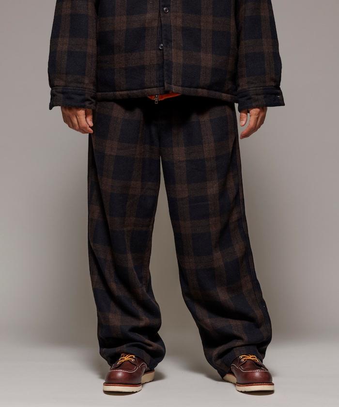 寬鬆版型水洗羊毛混紡法蘭絨長褲