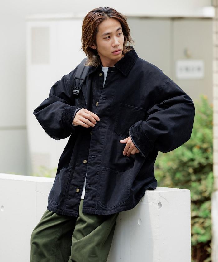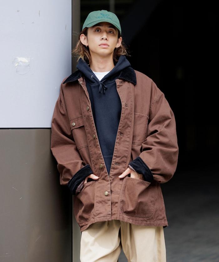 寬鬆版型燈芯絨拼接鴨布工裝夾克