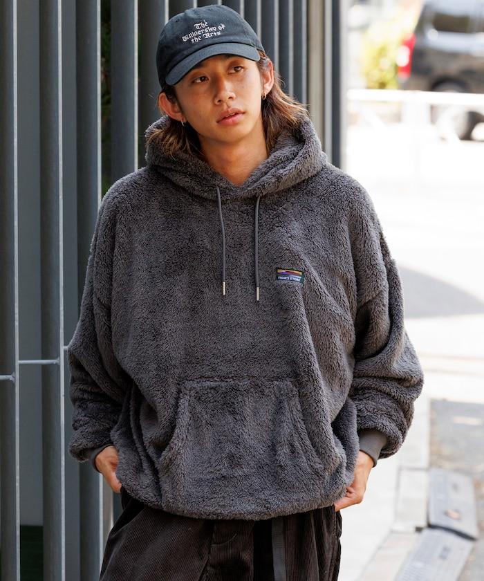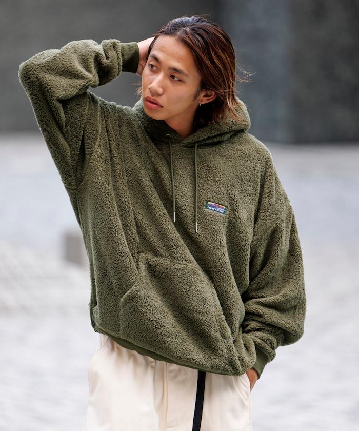 寬鬆版型長絨抓絨套頭連帽衛衣