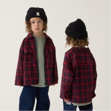寬鬆版型長袖格子襯衫(拉鍊款)