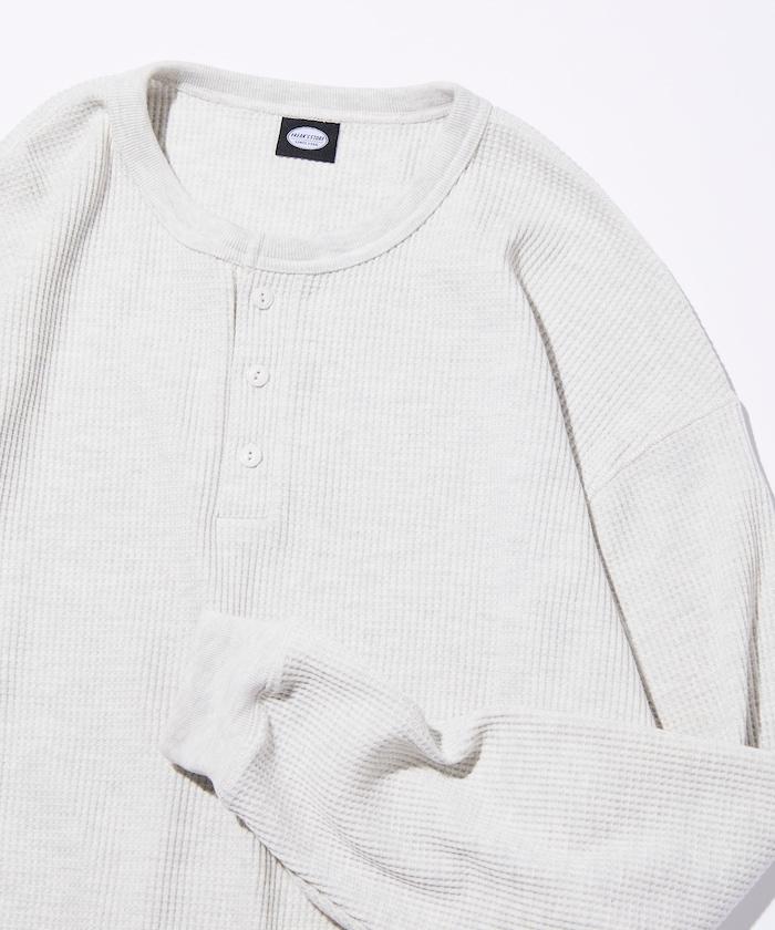 寬鬆版型長袖華夫格保暖亨利領長袖T恤