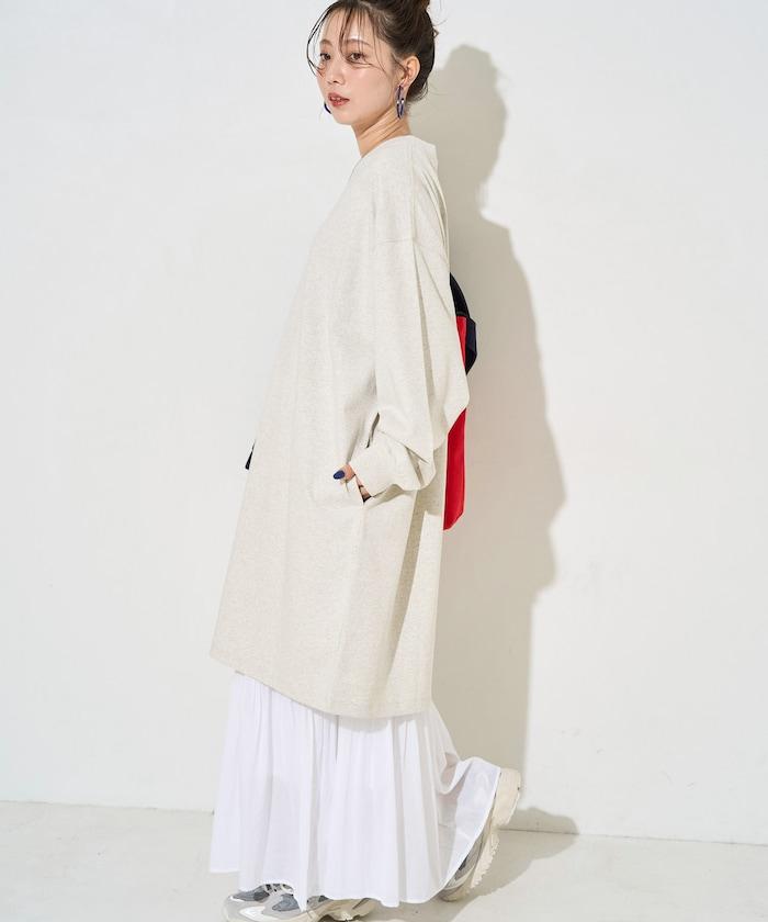 與簡單的褲子或牛仔褲疊穿,會有一種長衫的感覺。