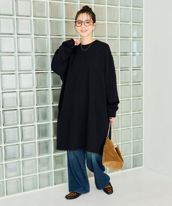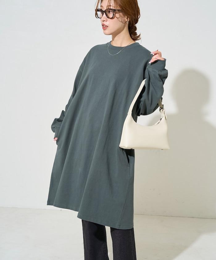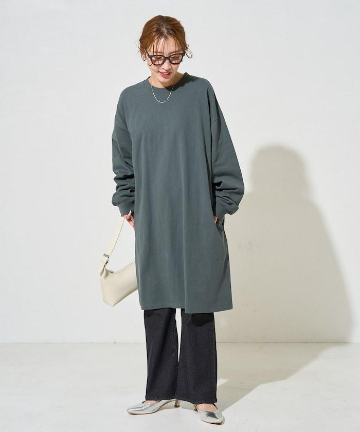 寬鬆版型長袖T恤迷你連衣裙