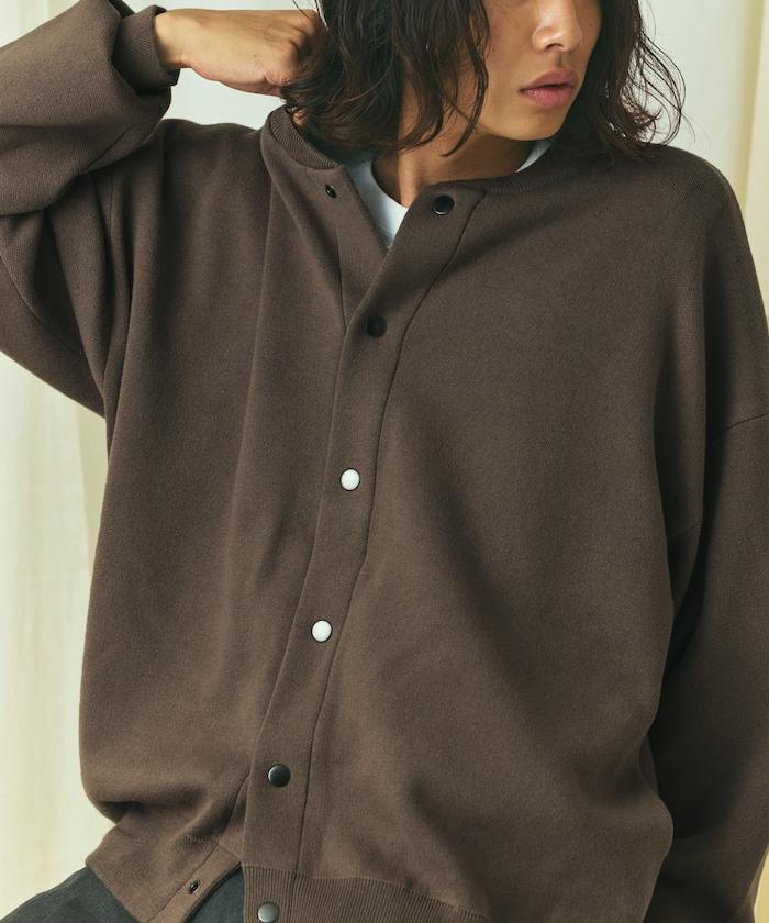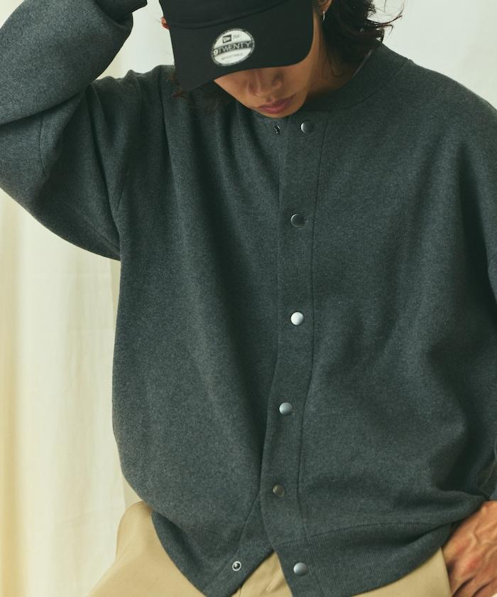 寬鬆版型 休閒風針織衛衣風圓領按扣開衫