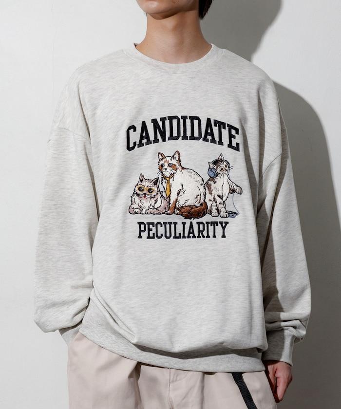 寬鬆版型 刺繡圖案 圓領衛衣 / CAT