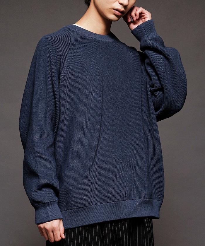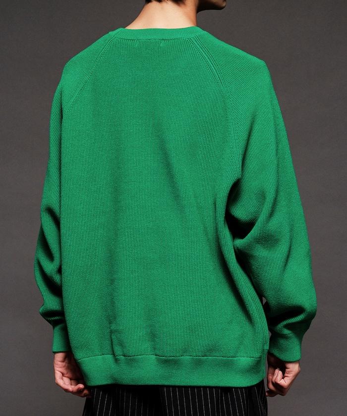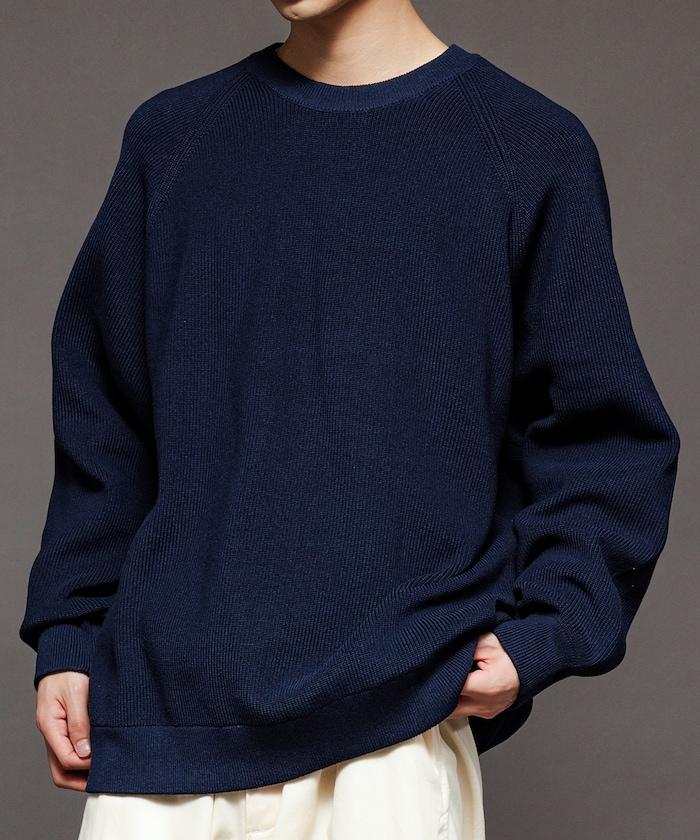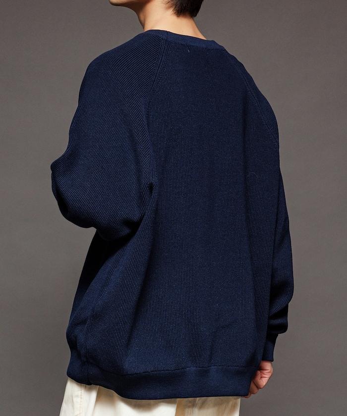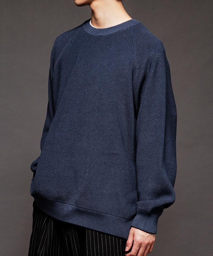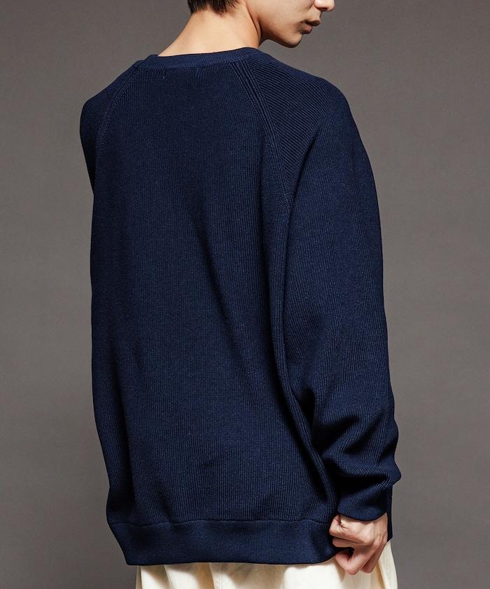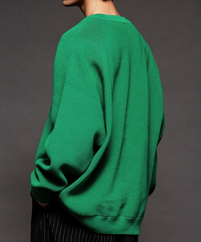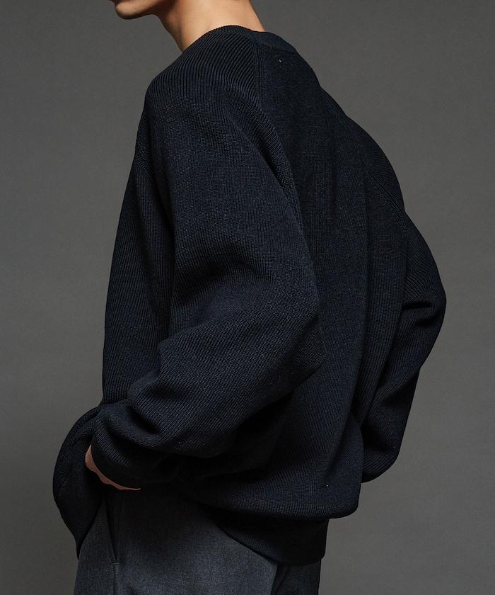 寬鬆版型圓領針織衫,採用單針床針織技術