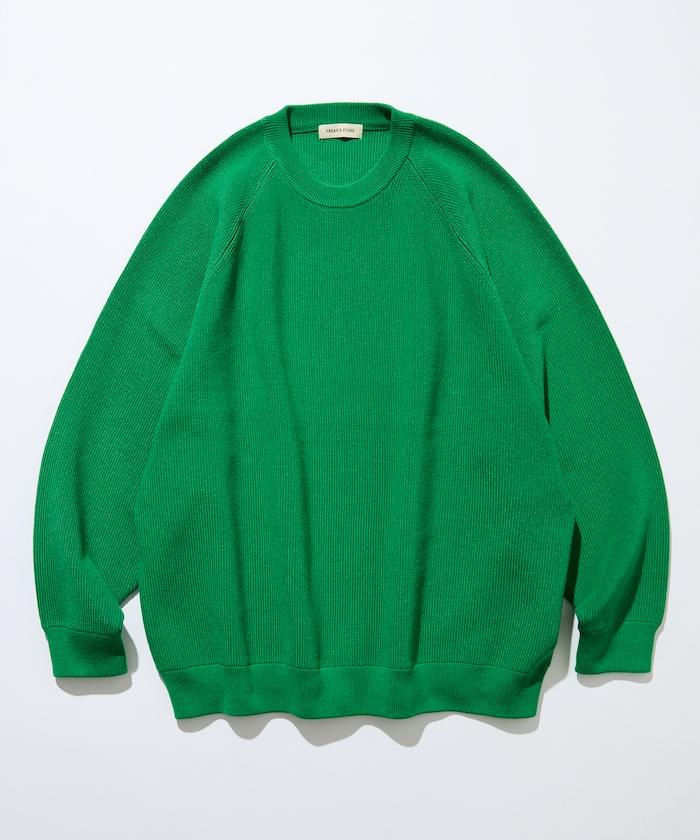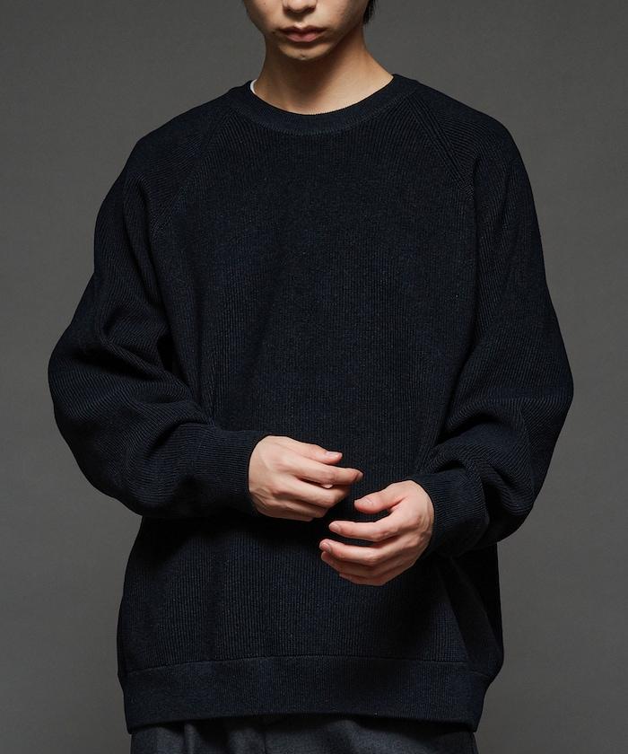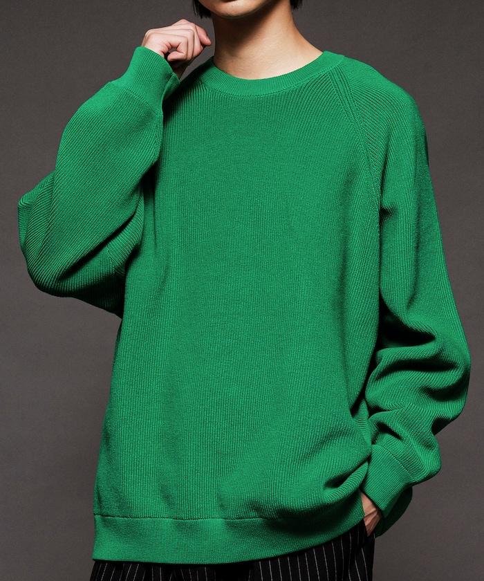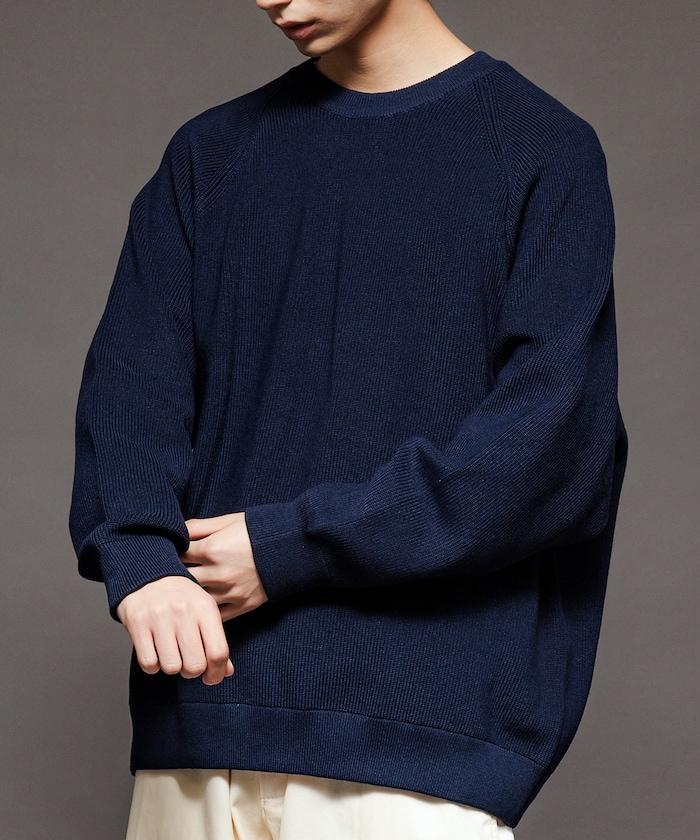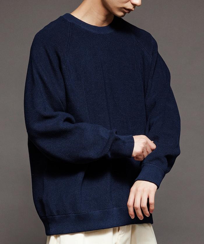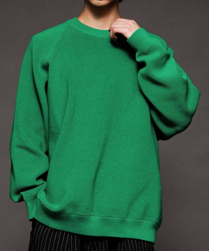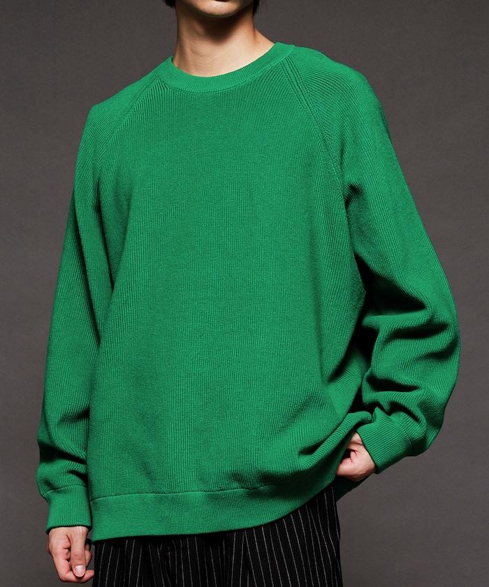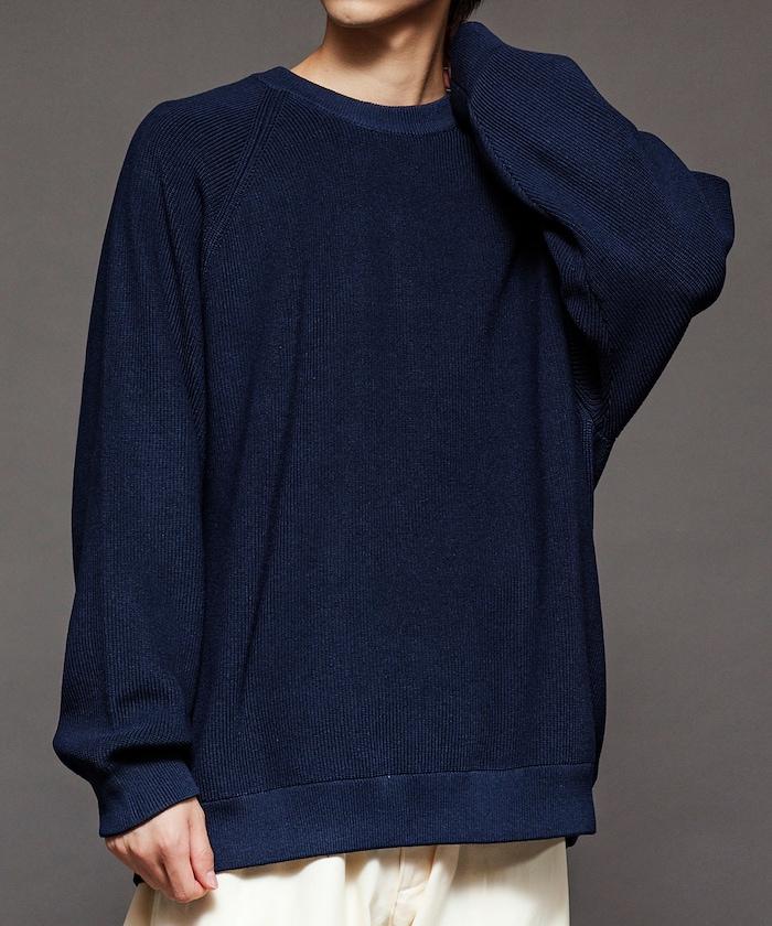 寬鬆版型圓領針織衫,採用單針床針織技術